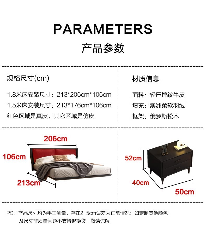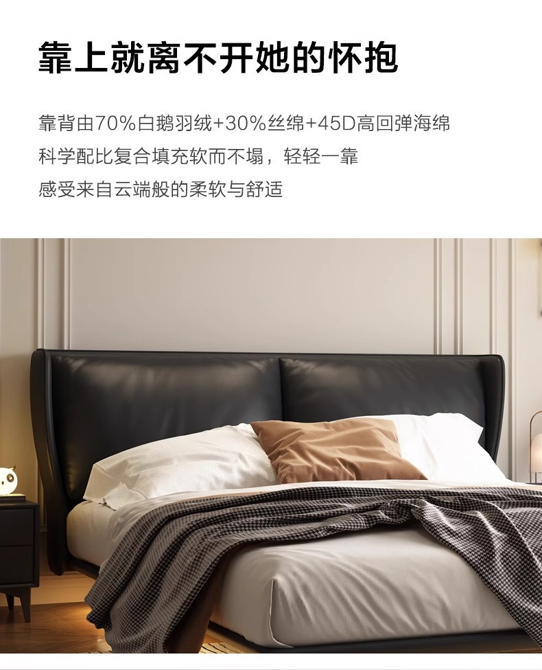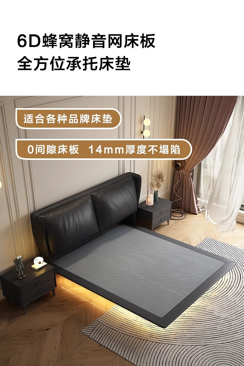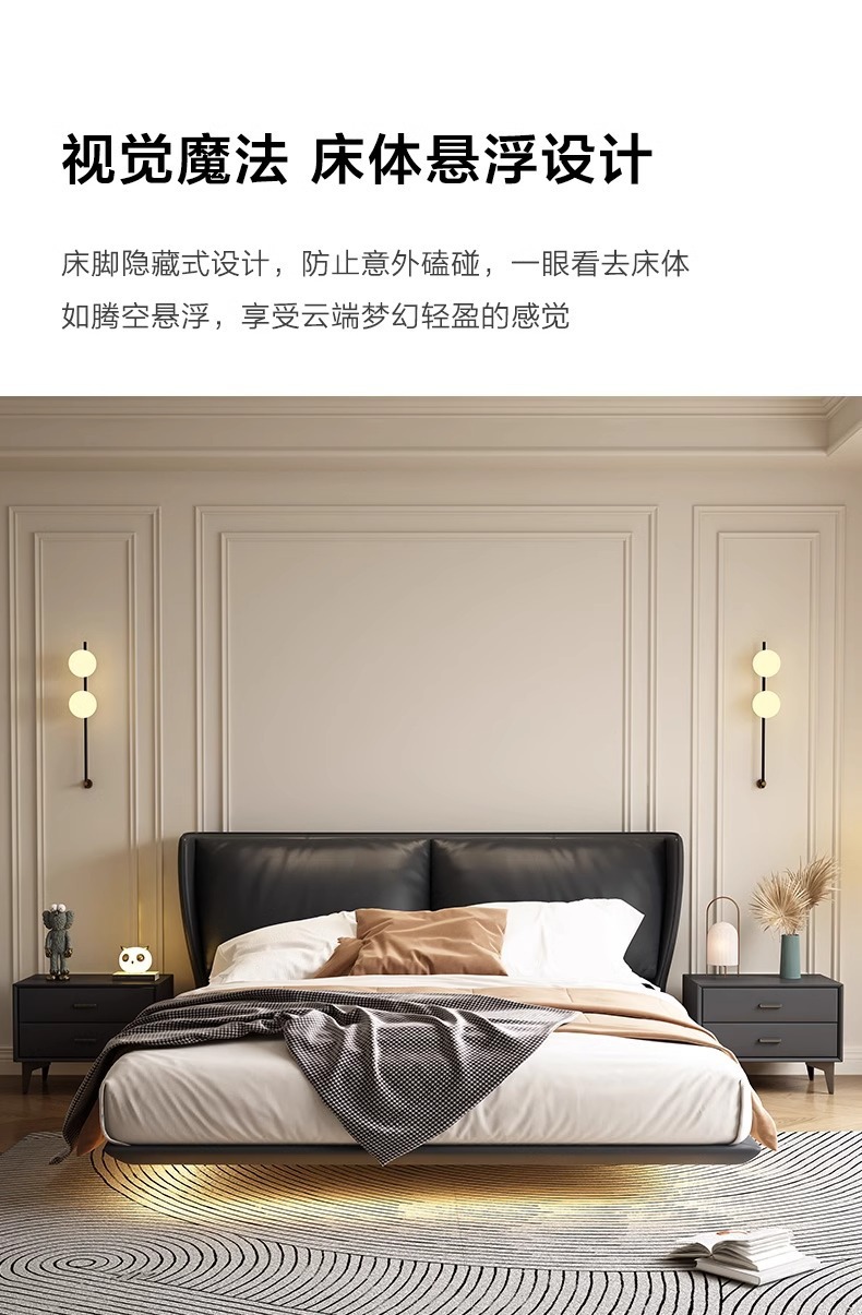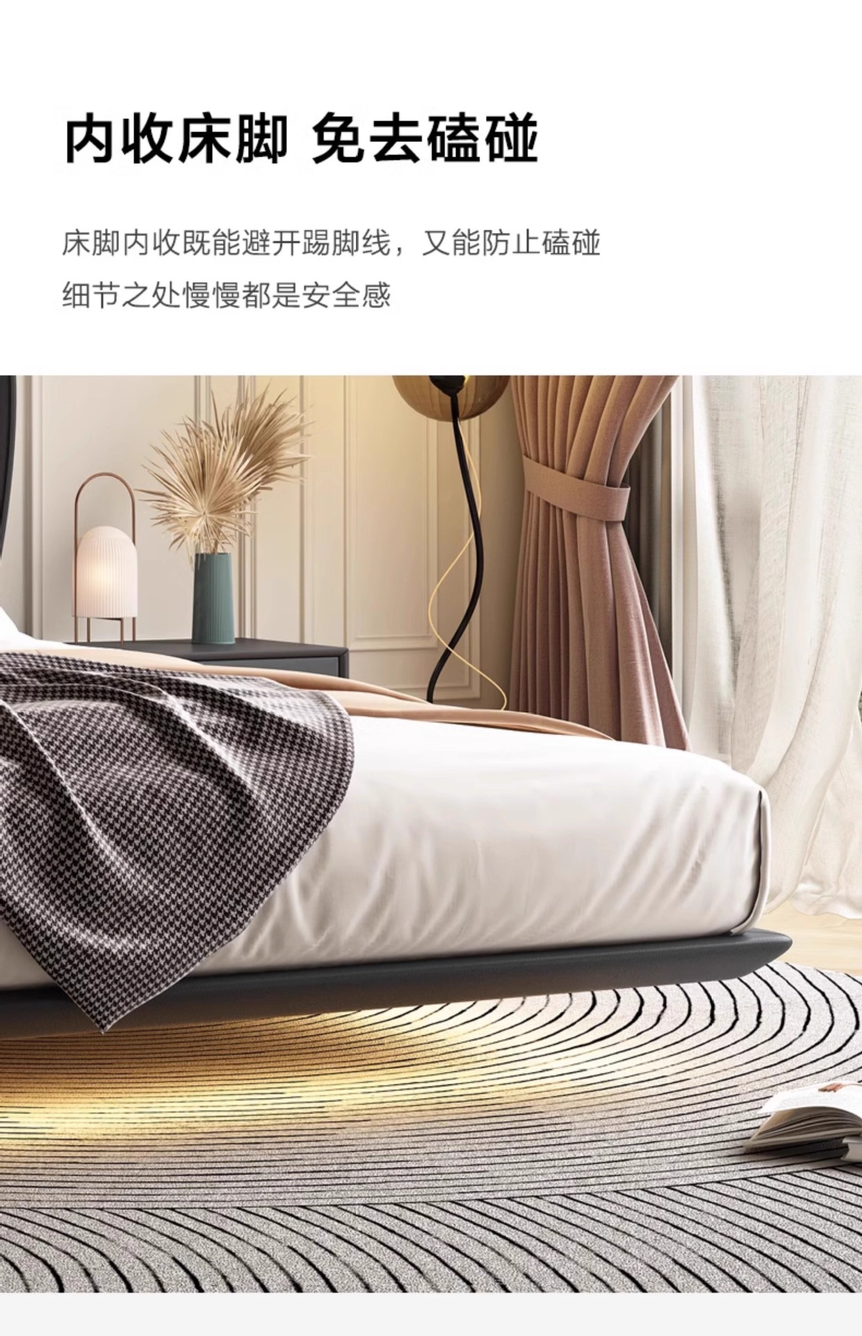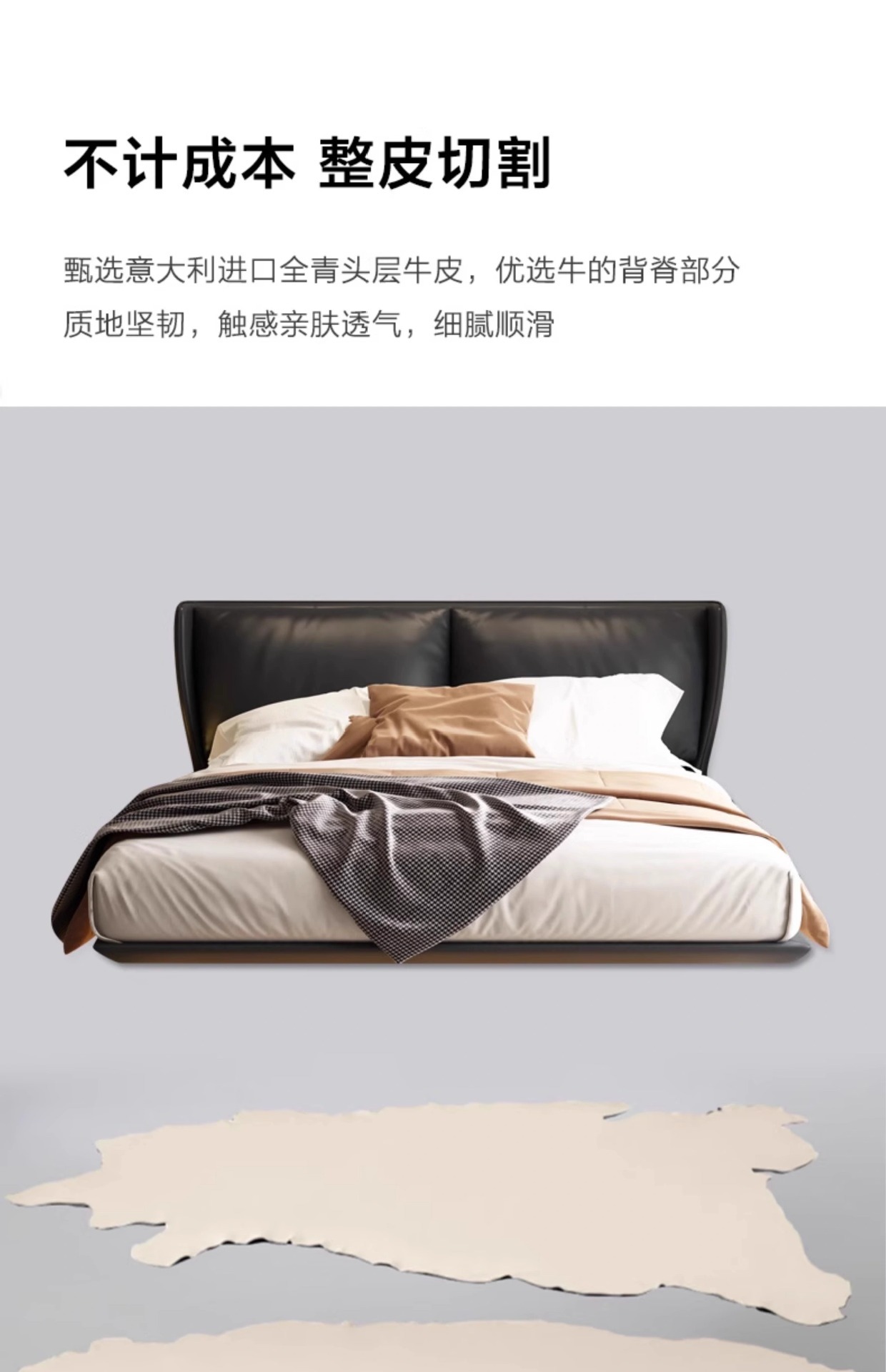 미니멀리스트 서스펜션 가죽 침대, 가벼운 럭셔리, 모던하고 심플한 2025년 신형 더블 침대, 대형 침대, 마스터 침실, 고급스럽고 분위기 있는스토어 가기