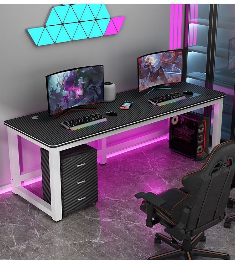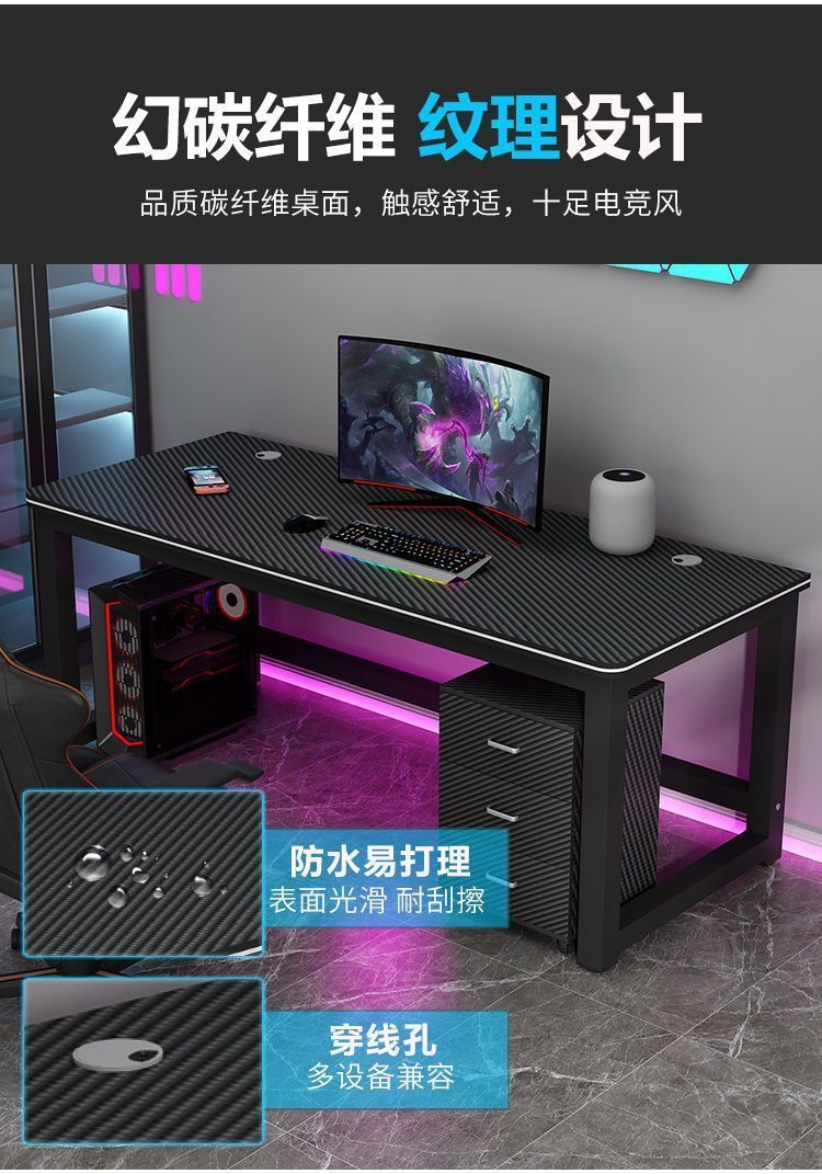 스레딩 구멍이 있는 팬텀 블랙 워리어 게임 테이블, 심플하고 모던한 컴퓨터 테이블, 홈 렌탈룸, 침실 사무실 테이블