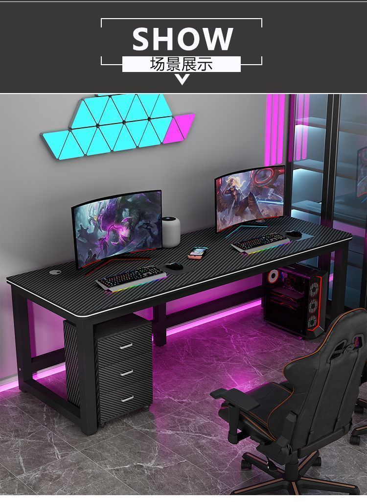 스레딩 구멍이 있는 팬텀 블랙 워리어 게임 테이블, 심플하고 모던한 컴퓨터 테이블, 홈 렌탈룸, 침실 사무실 테이블스토어 가기