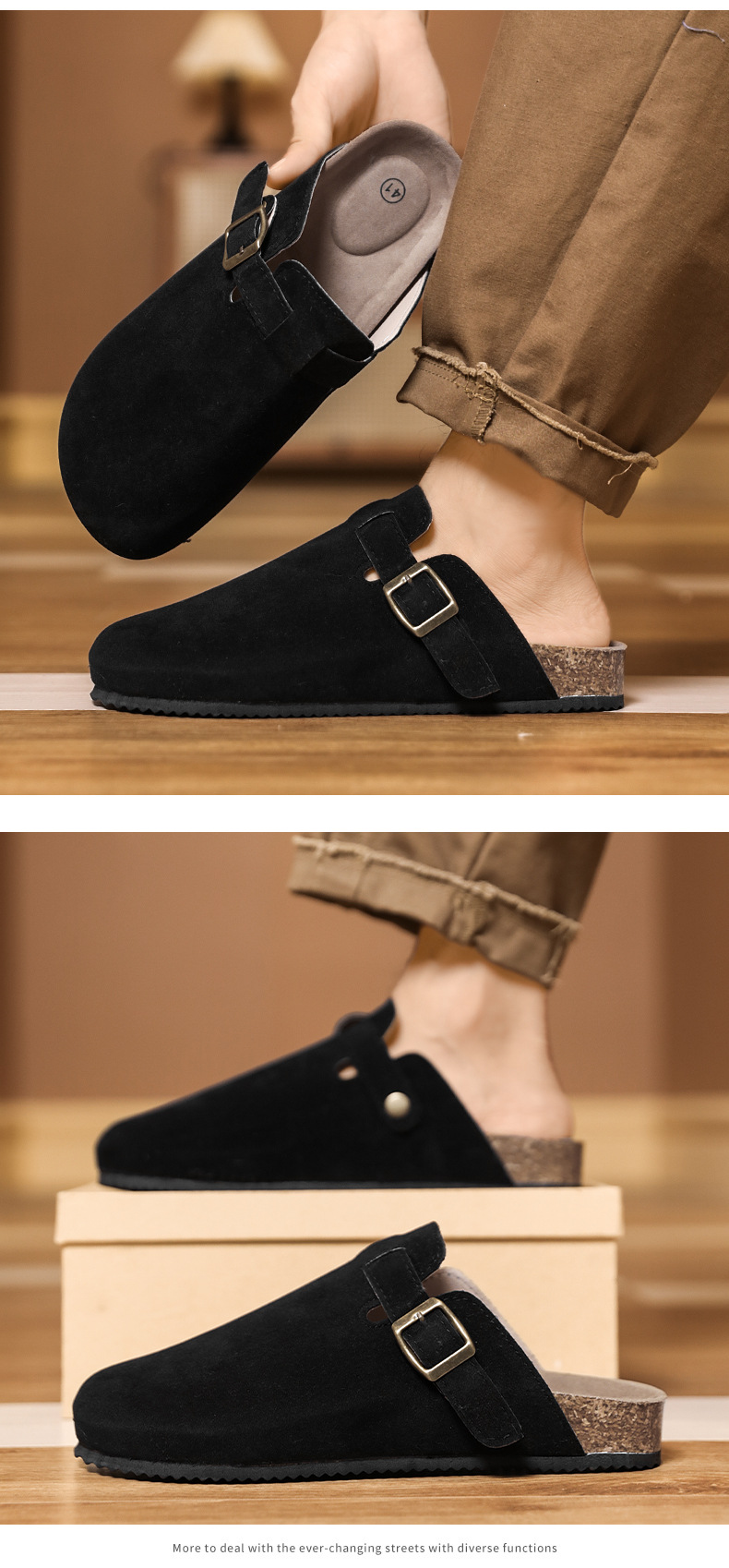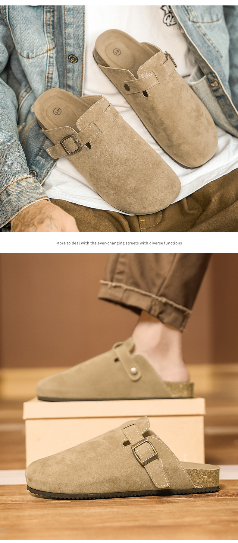 보켄 슈즈, 게으른 남녀공용 반슬리퍼, 코르크 샌들, 슬립온 캐주얼 레트로 슬리퍼스토어 가기
