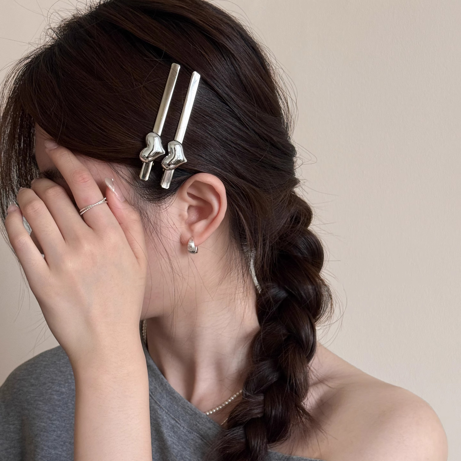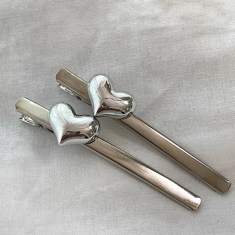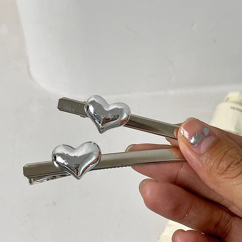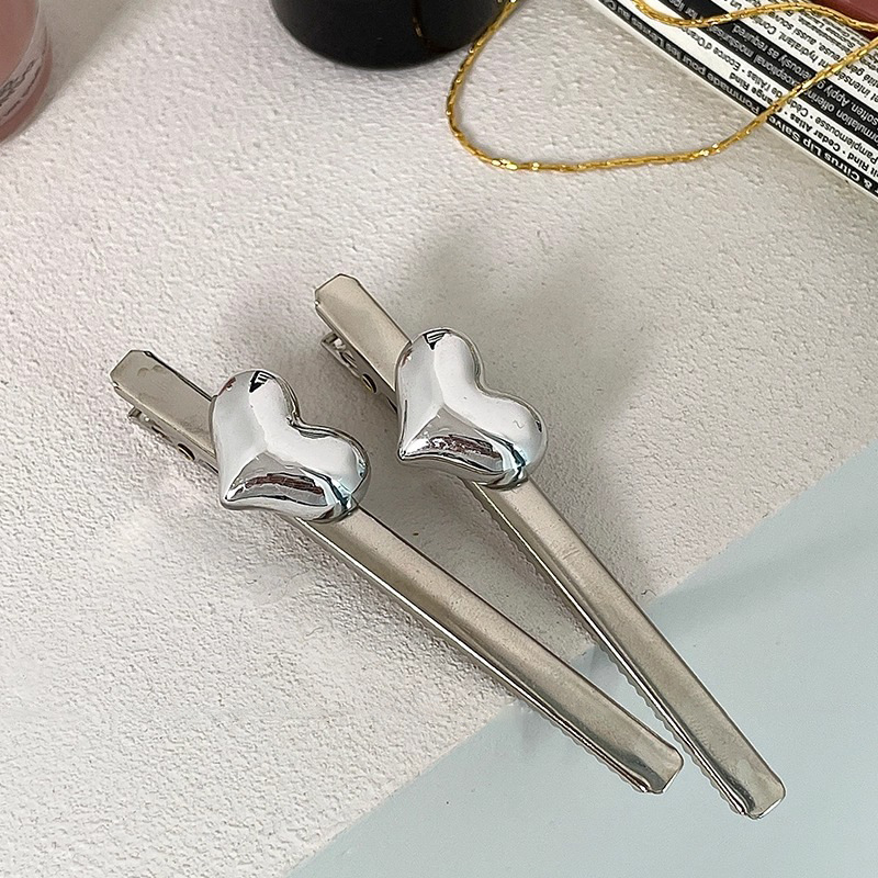 달콤하고 시원한 스타일의 실버 러브 헤어핀, 한국식 심플 클립, 이마머리 클립, 사이드 클립, 우아한 헤어 액세서리스토어 가기