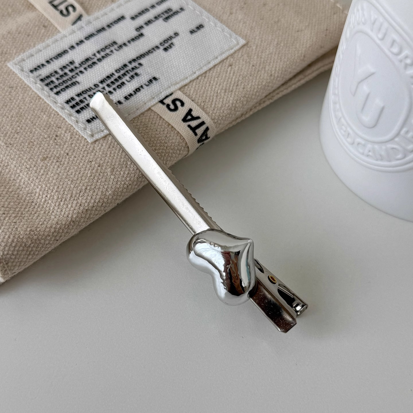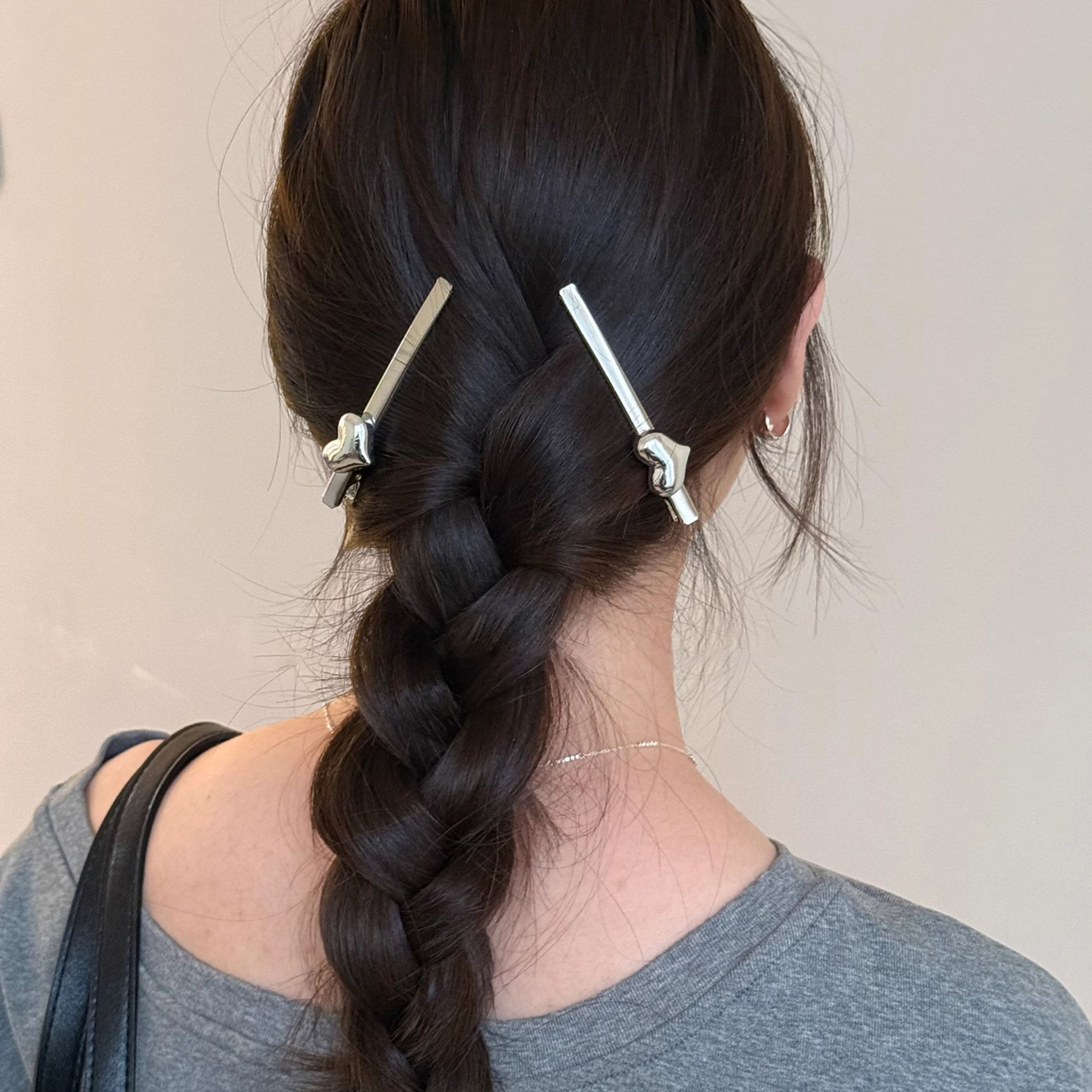 달콤하고 시원한 스타일의 실버 러브 헤어핀, 한국식 심플 클립, 이마머리 클립, 사이드 클립, 우아한 헤어 액세서리