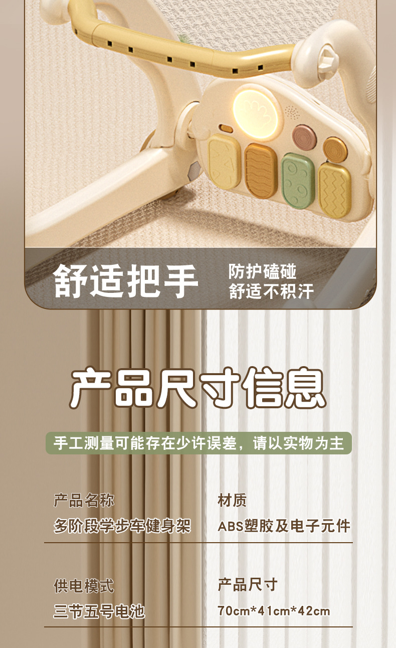 • 배터리형 [걸음마 보조기 + 베이지색 발판 피아노 (단판) + 운동기구 + 배송 박스] 대형 사이즈, 두께 강화