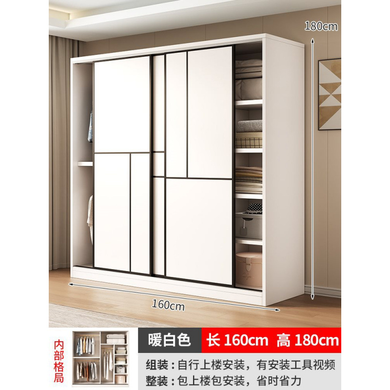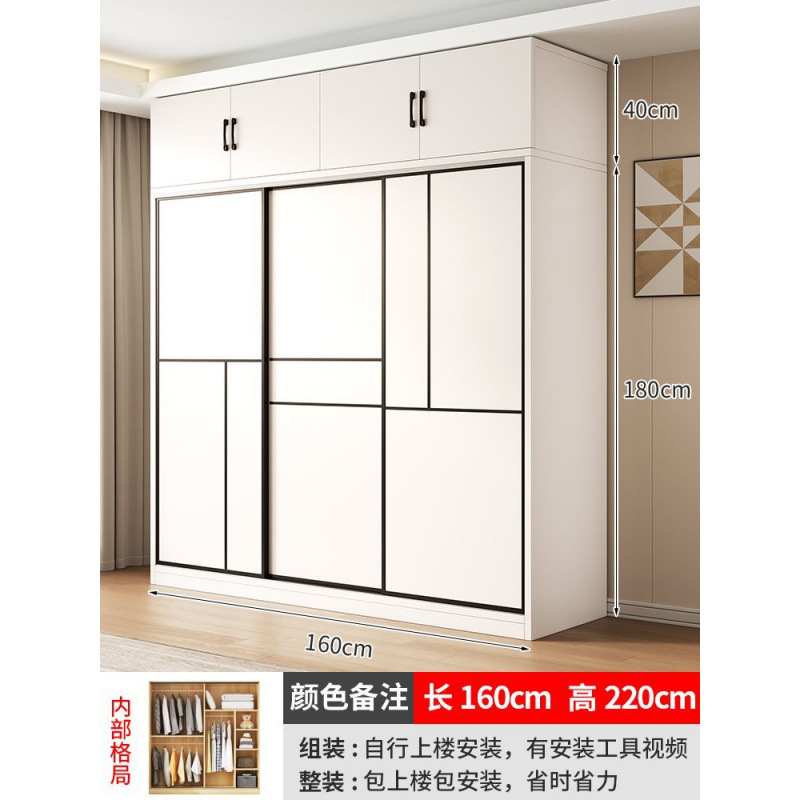 옷장 침실 가정용 소형 아파트 2024 인기 슬라이딩 도어 캐비닛 간단한 조립 임대 집 인터넷 연예인 옷장스토어 가기