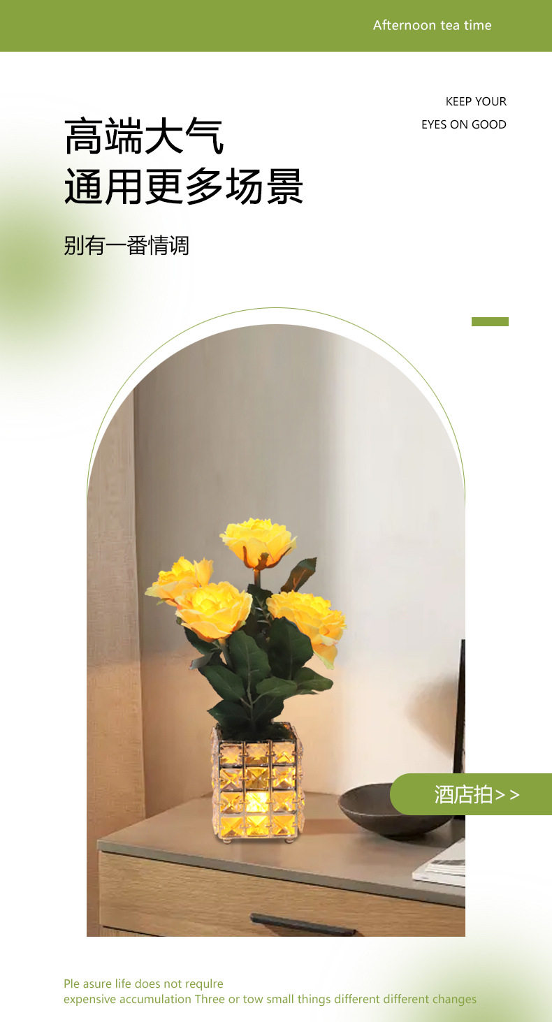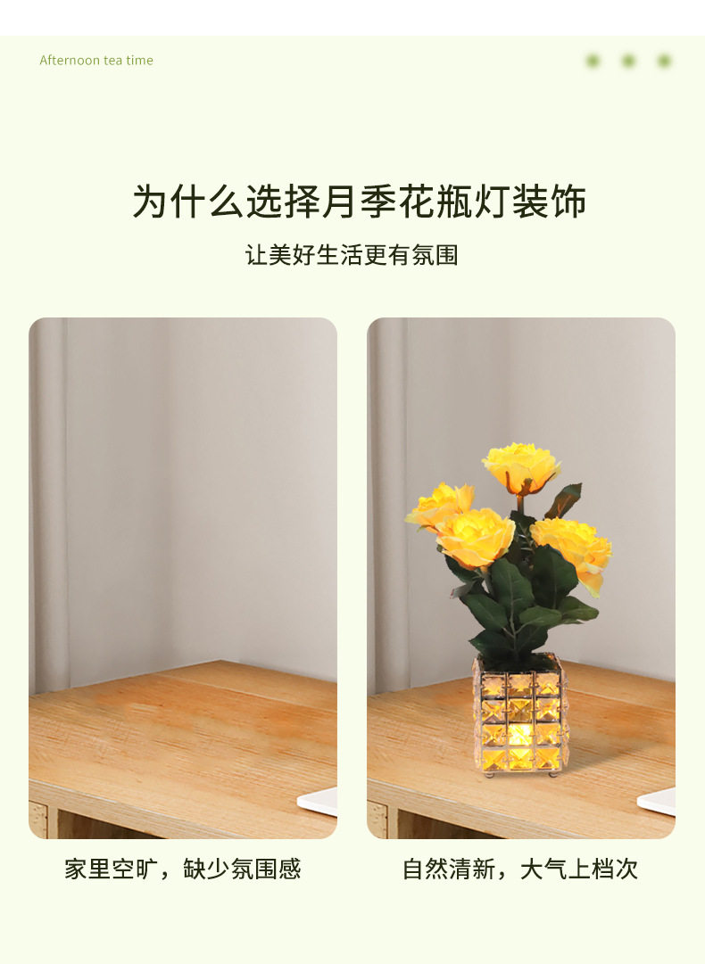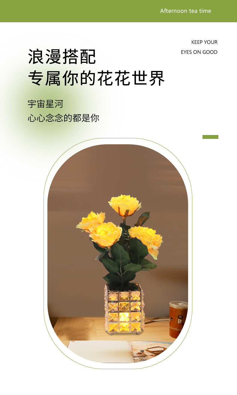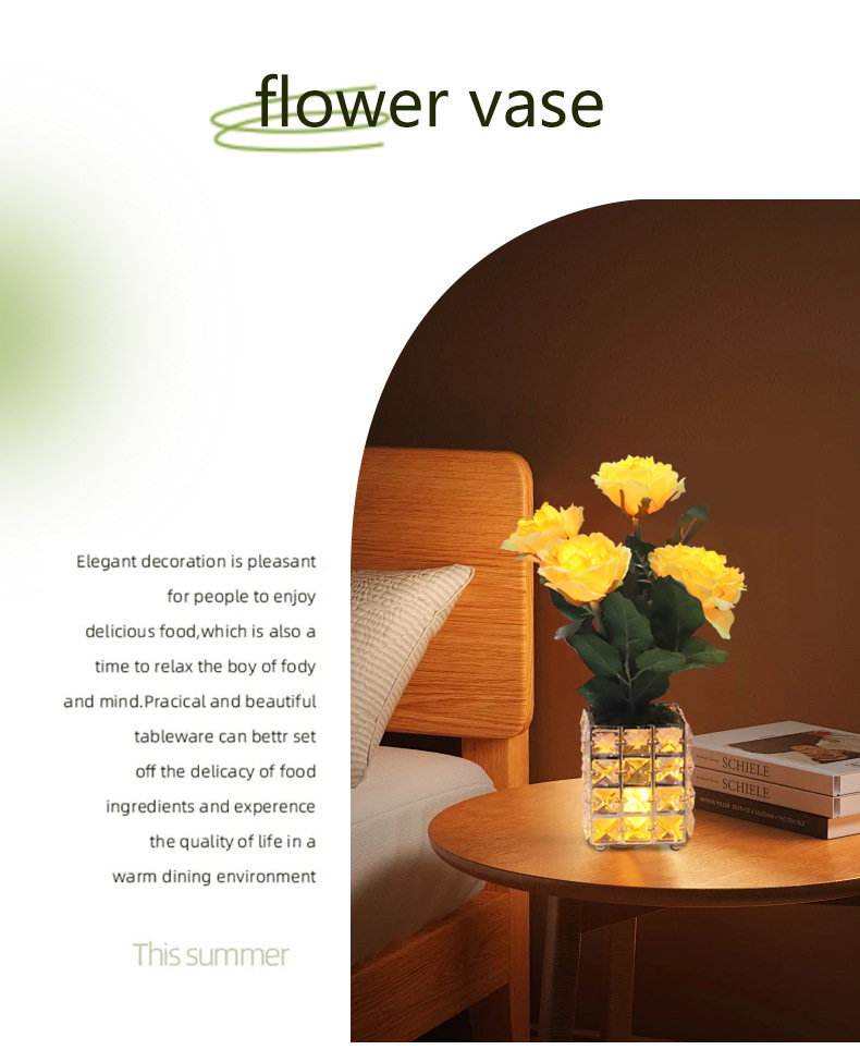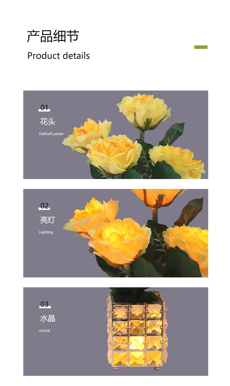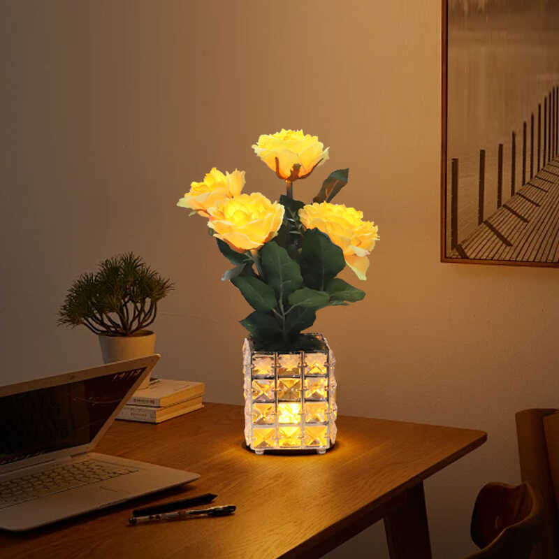 가벼운 고급 고급 가짜 꽃 테이블 램프, 인공 꽃 장식, 거실 커피 테이블 램프, LED 호텔 모델 룸 장식, 식탁
