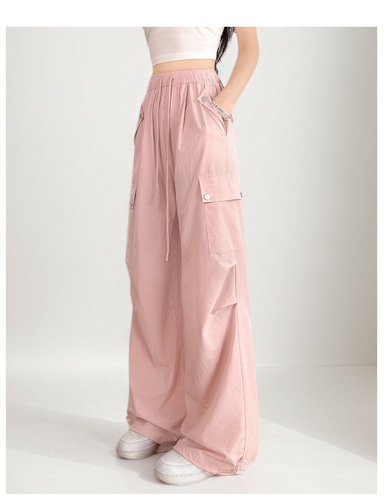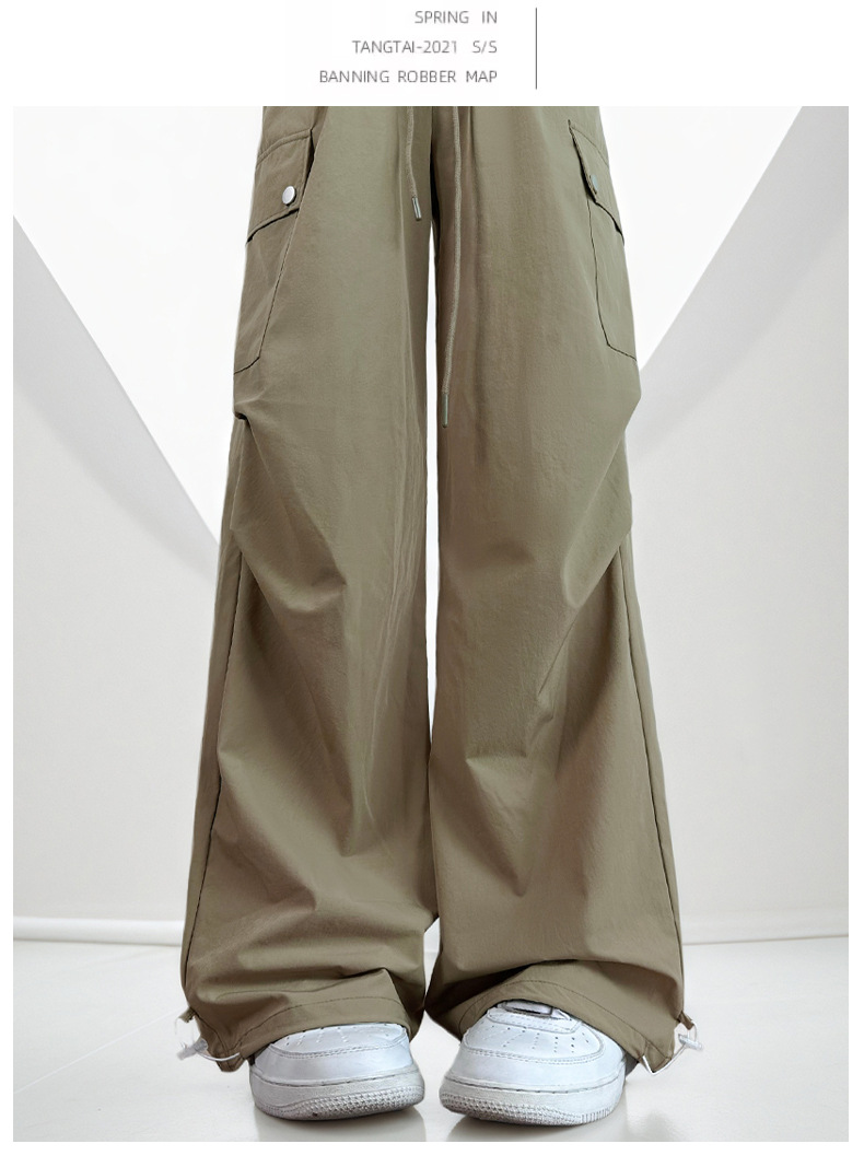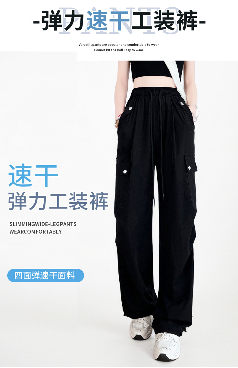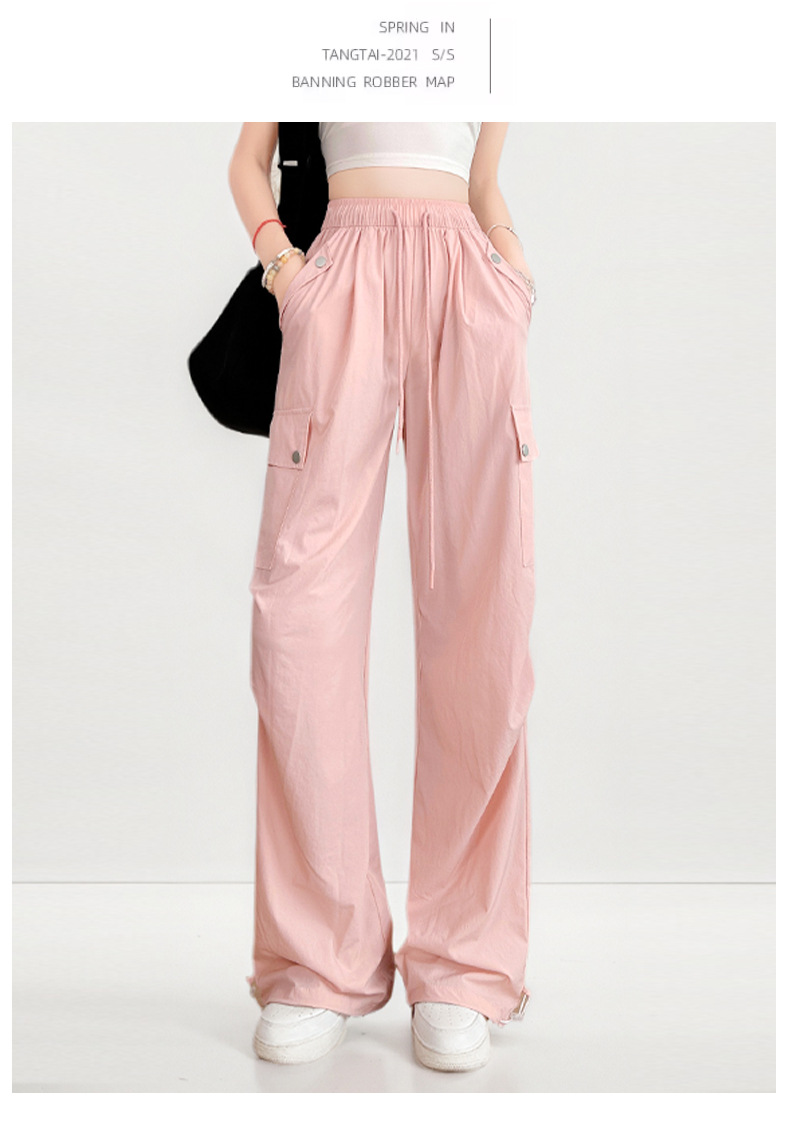 여름용 여성용 미국식 속건 작업복 얇은 레깅스 드로스트링 투웨어 낙하산 등산 캐주얼 스포츠 충전 바지