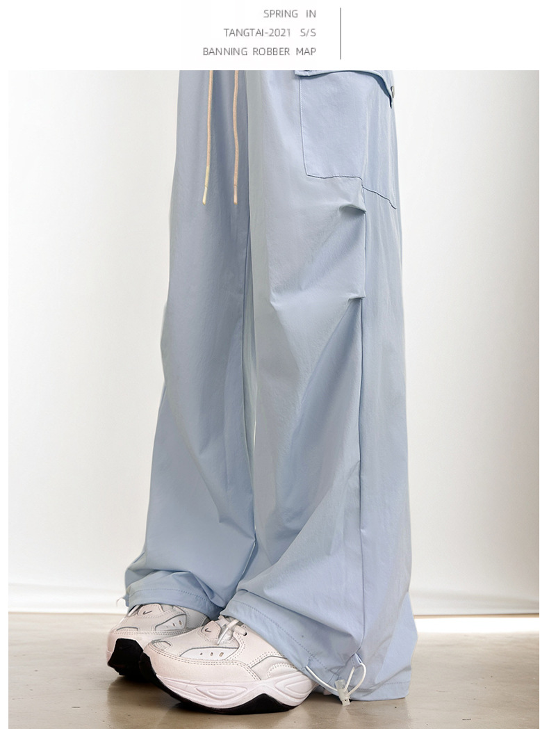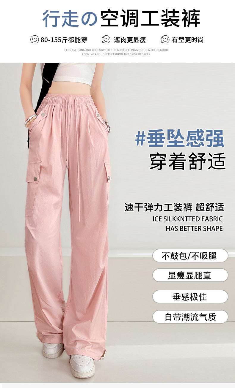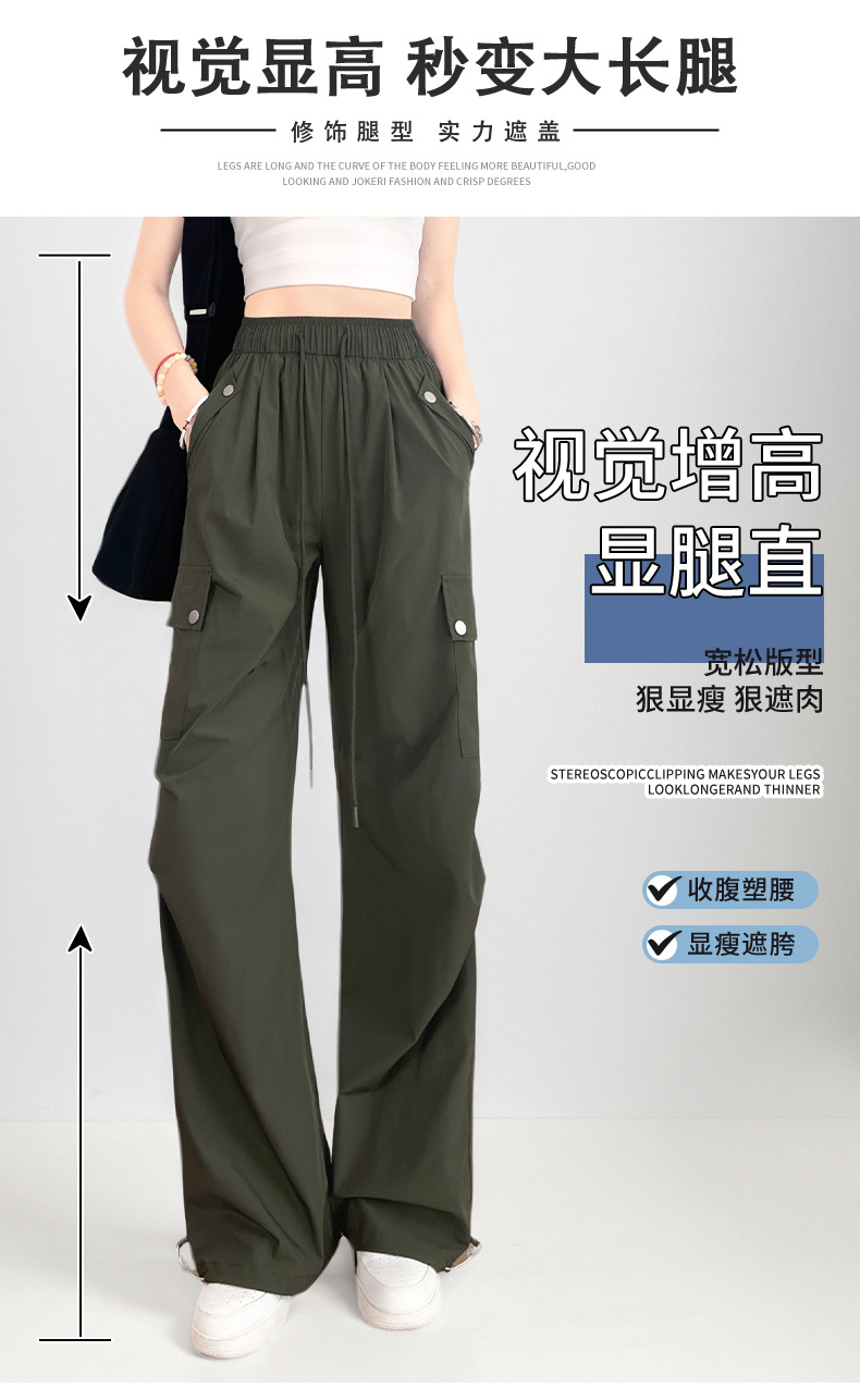 여름용 여성용 미국식 속건 작업복 얇은 레깅스 드로스트링 투웨어 낙하산 등산 캐주얼 스포츠 충전 바지