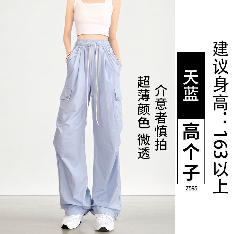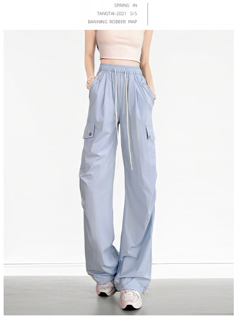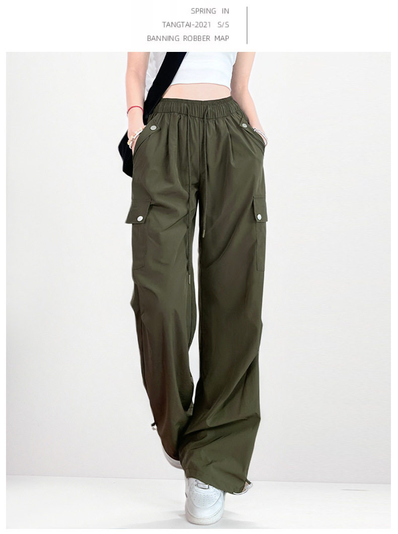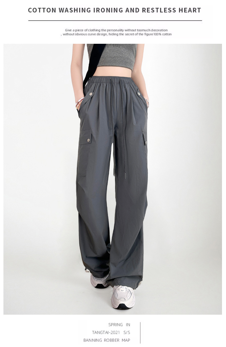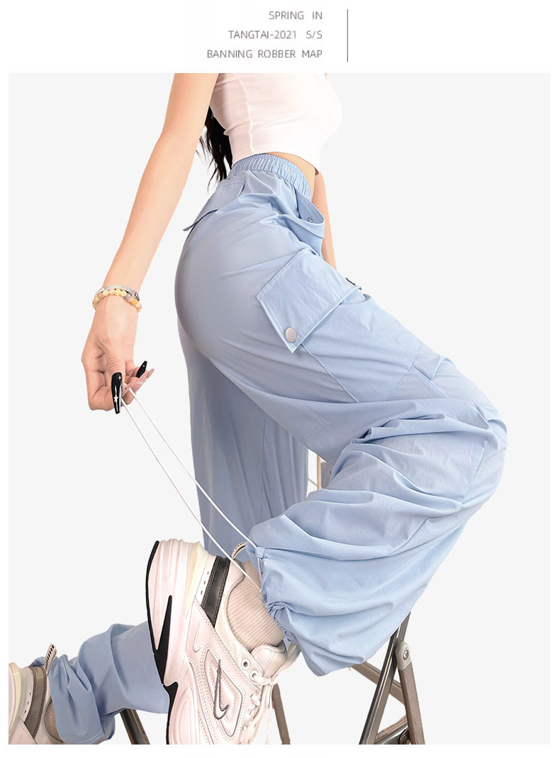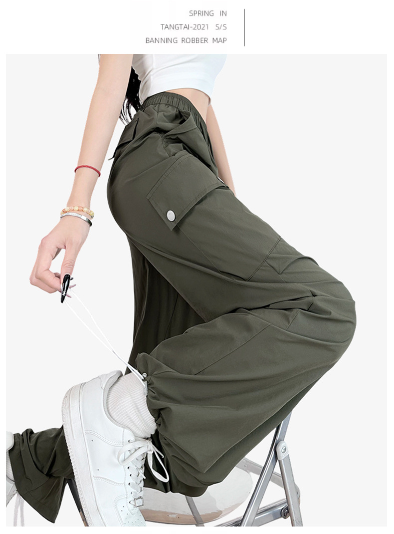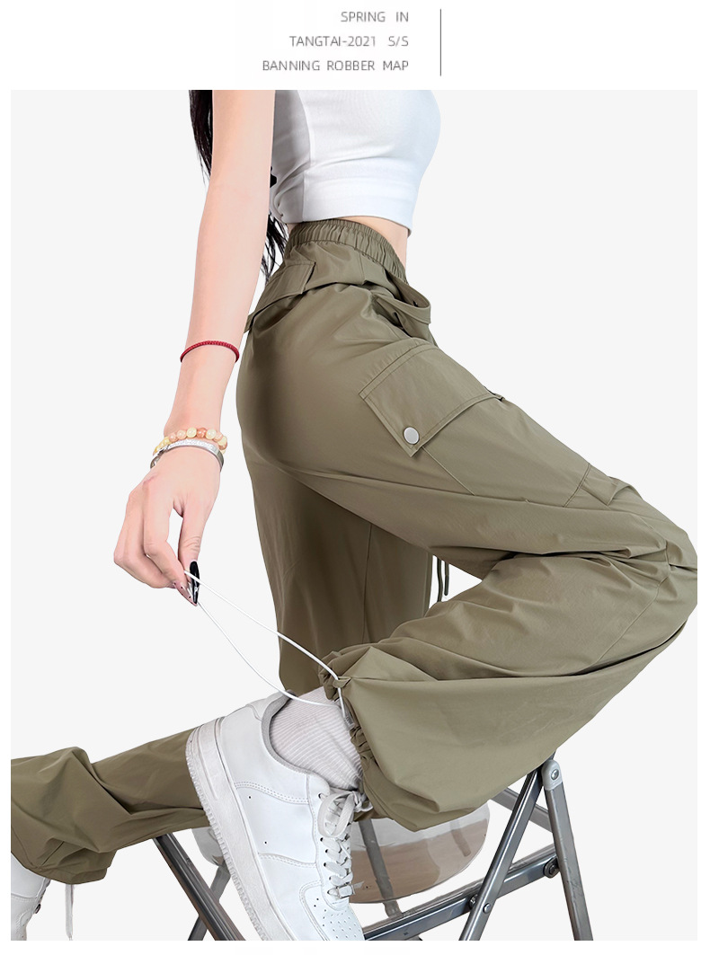 여름용 여성용 미국식 속건 작업복 얇은 레깅스 드로스트링 투웨어 낙하산 등산 캐주얼 스포츠 충전 바지스토어 가기