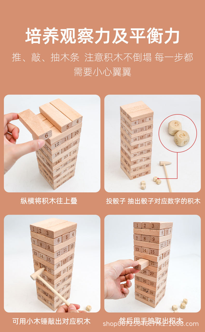 Jenga 빌딩 블록 균형 추출 게임 부모-자식 대화 형 보드 게임 Jenga 높은 나무 어린이 교육 장난감