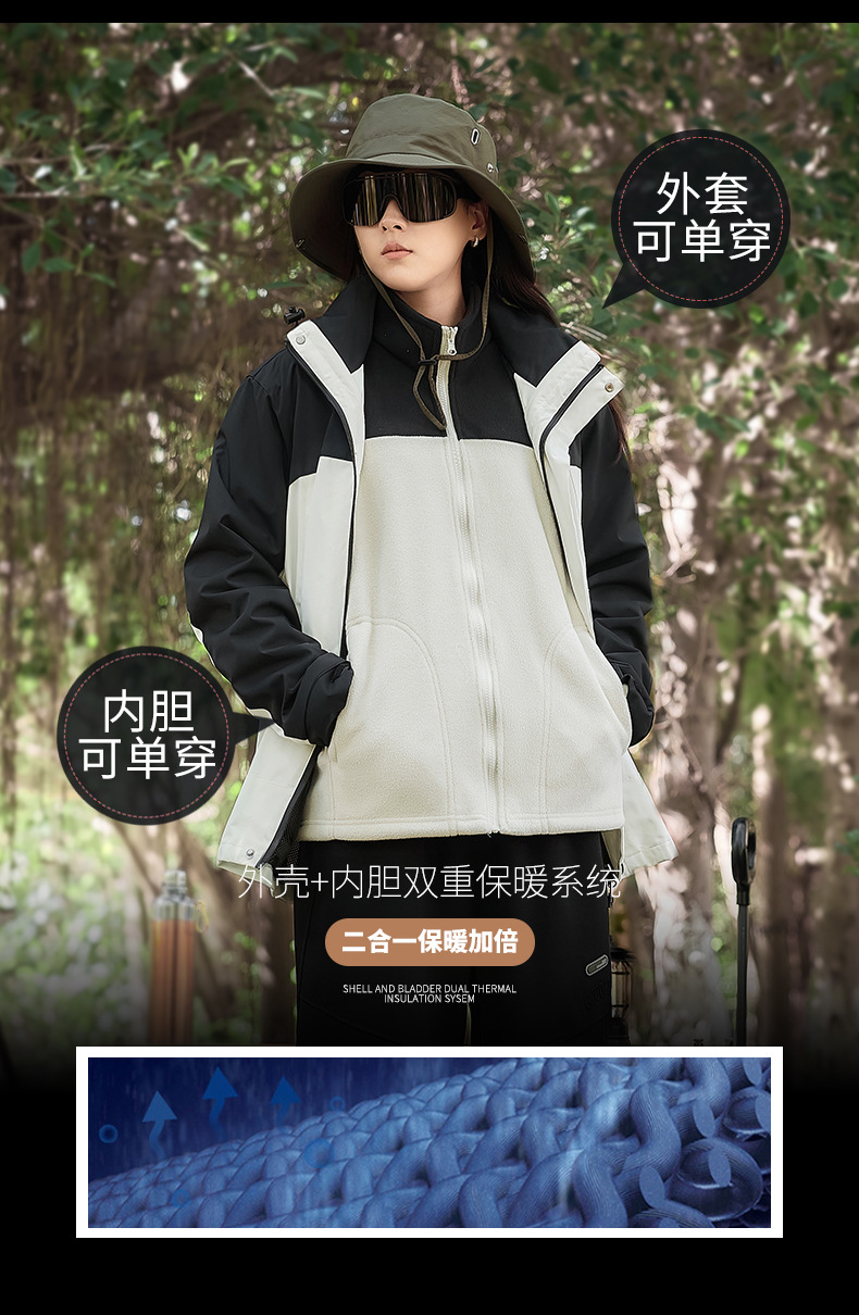 산악 야외 3-in-one 재킷 남성 가을, 겨울 방풍 및 방수 투피스 세트 여성 등산 하이킹 재킷 작업복스토어 가기
