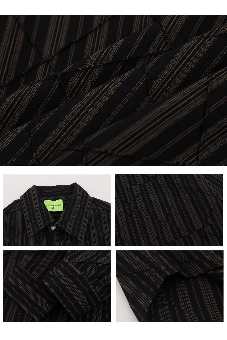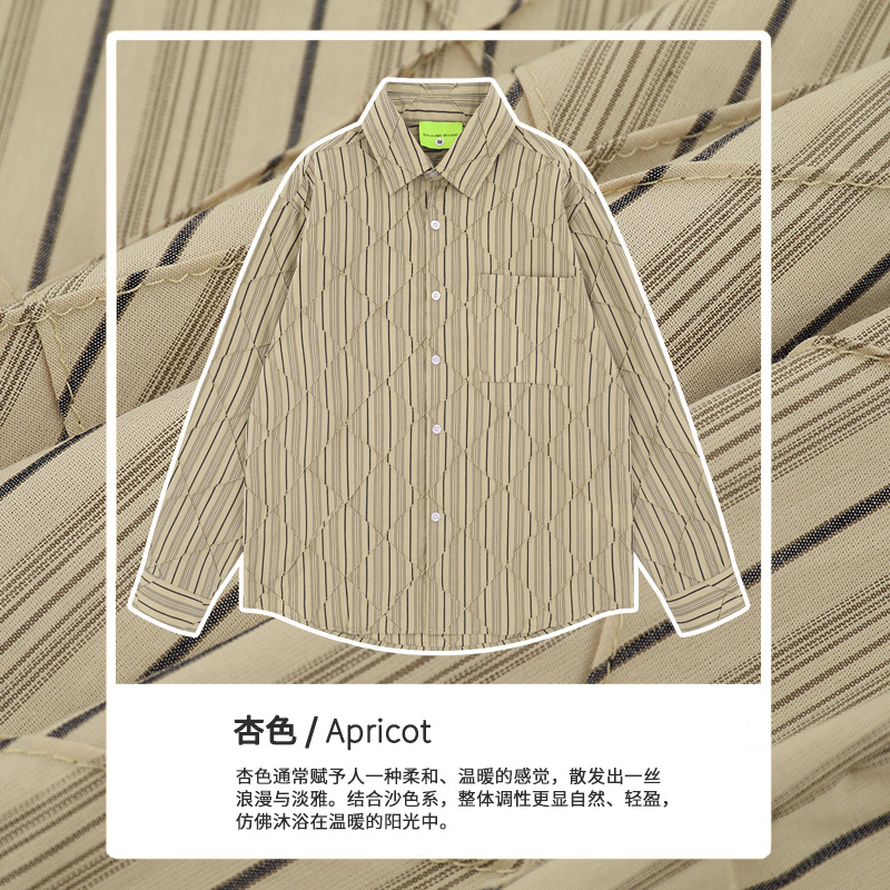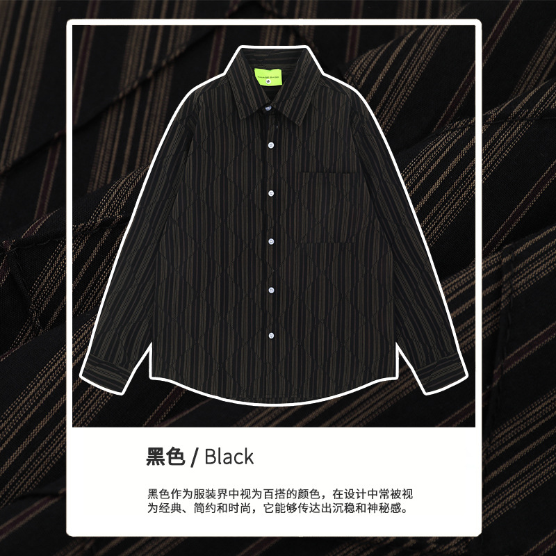 2025 초가을 새로운 미국 복고풍 마름모 자카드 순수 코튼 스트라이프 셔츠 남성용 캐주얼 하이 엔드 긴팔 셔츠스토어 가기