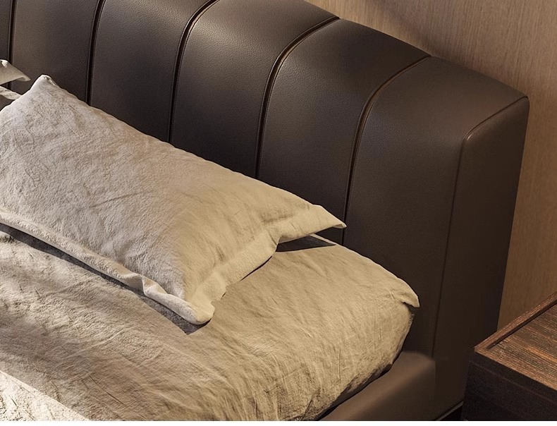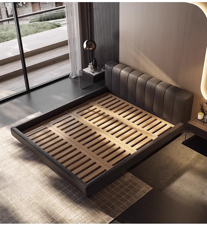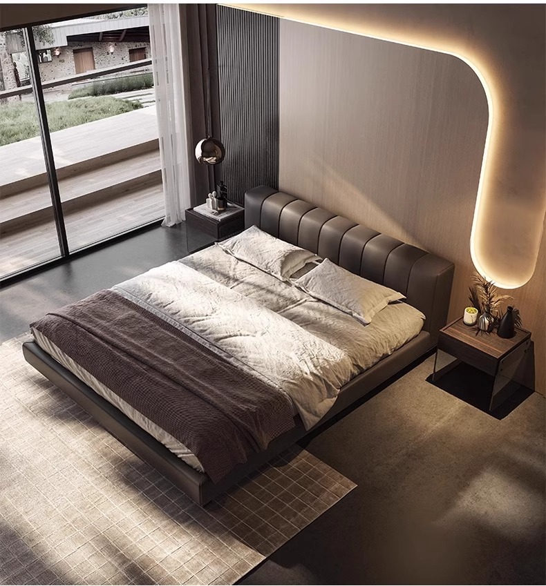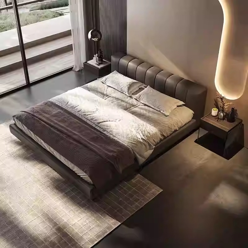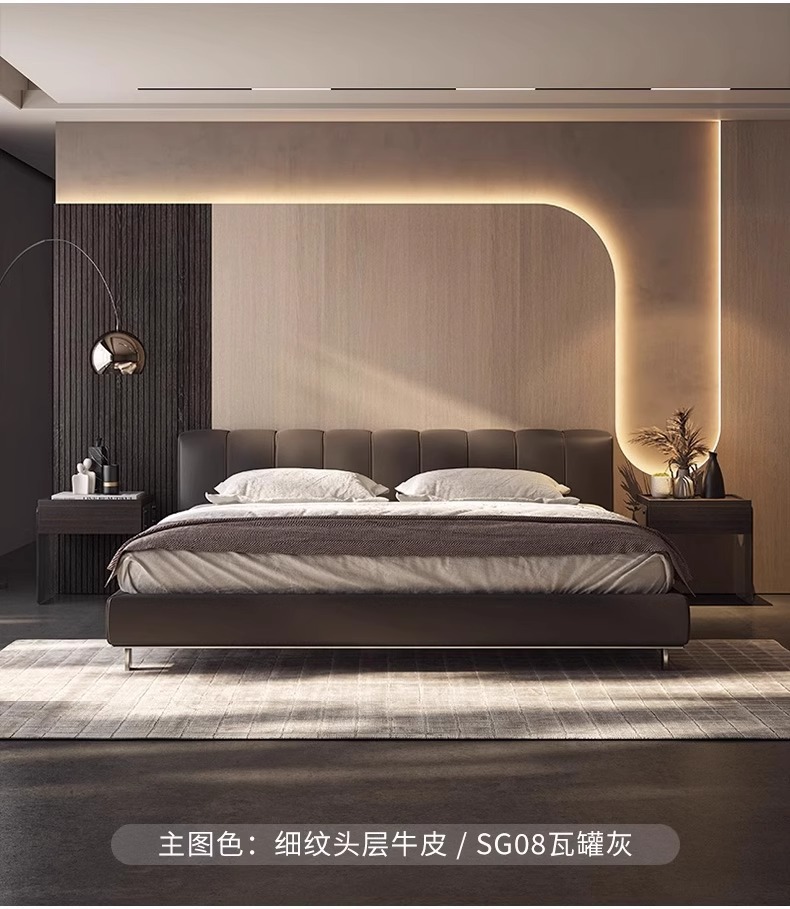 이탈리아 미니멀리스트 피아노 키 레이어 소가죽 침대 하이 엔드 침실 마스터 침대 더블 소프트 백 디자이너 빅 침대
