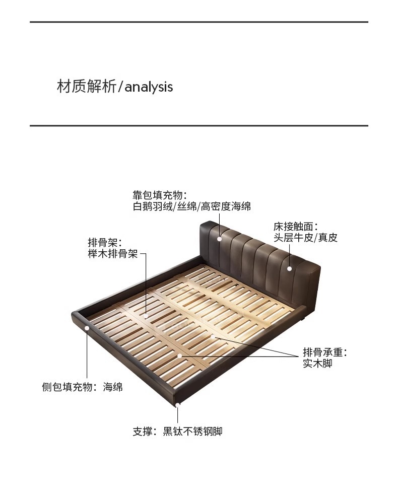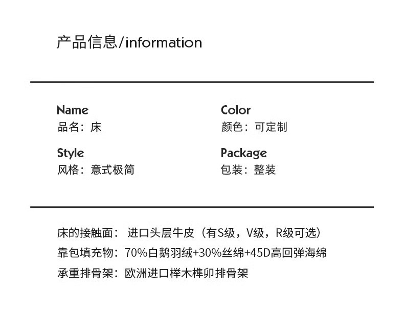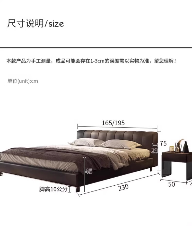 이탈리아 미니멀리스트 피아노 키 레이어 소가죽 침대 하이 엔드 침실 마스터 침대 더블 소프트 백 디자이너 빅 침대스토어 가기