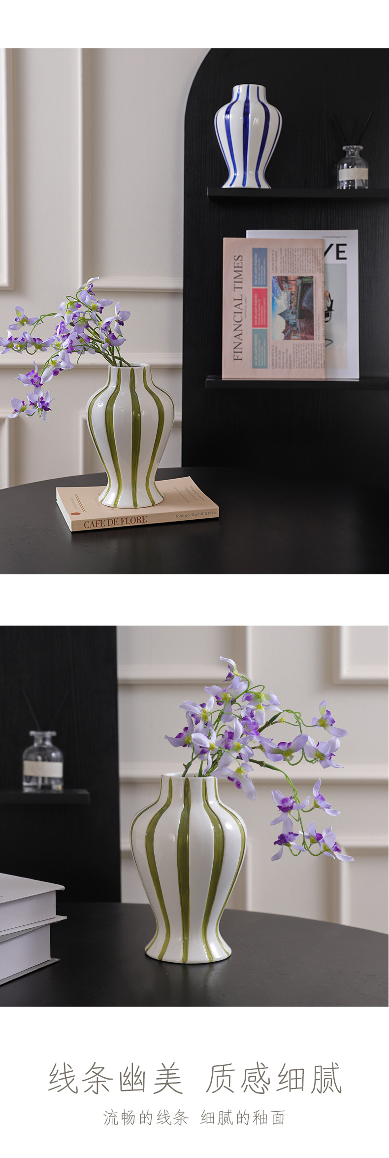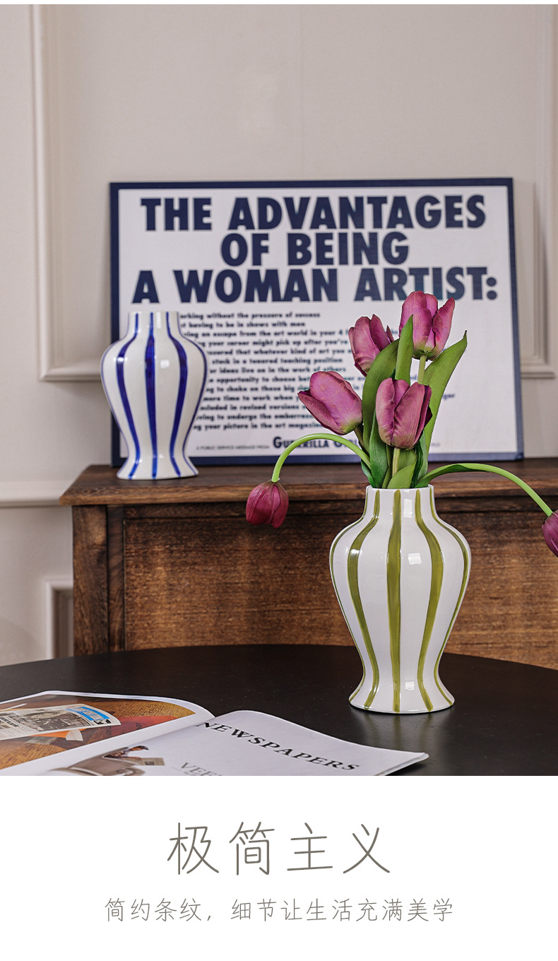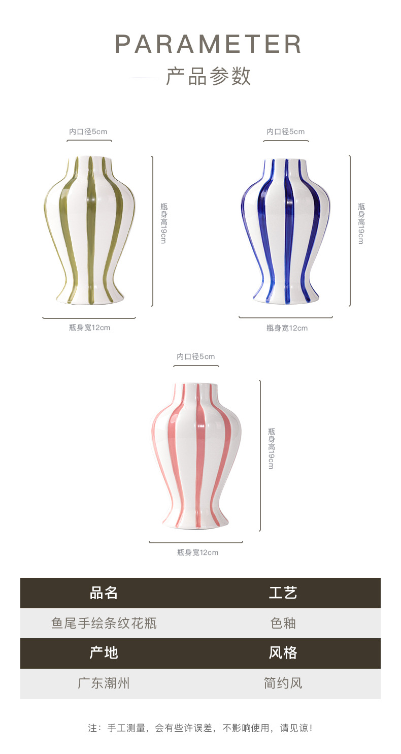 현대 간단한 물고기 꼬리 손으로 그린 줄무늬 세라믹 꽃병 수경 꽃꽂이 거실 데스크탑 크리 에이 티브 장식스토어 가기
