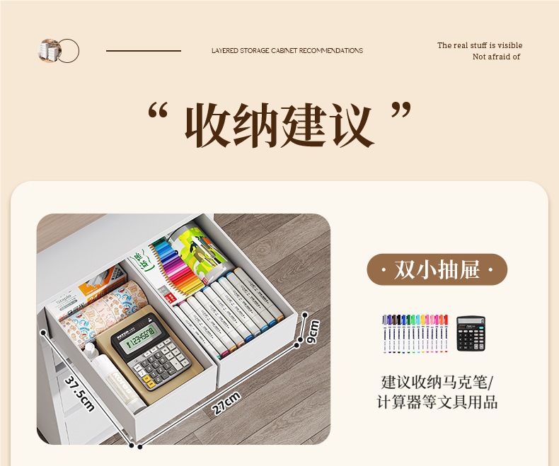• 서랍형 콤비네이션 캐비닛 - 2단 [하단 1개, 소형 2개] ️폭 27*깊이 37.5*높이 22.5cm