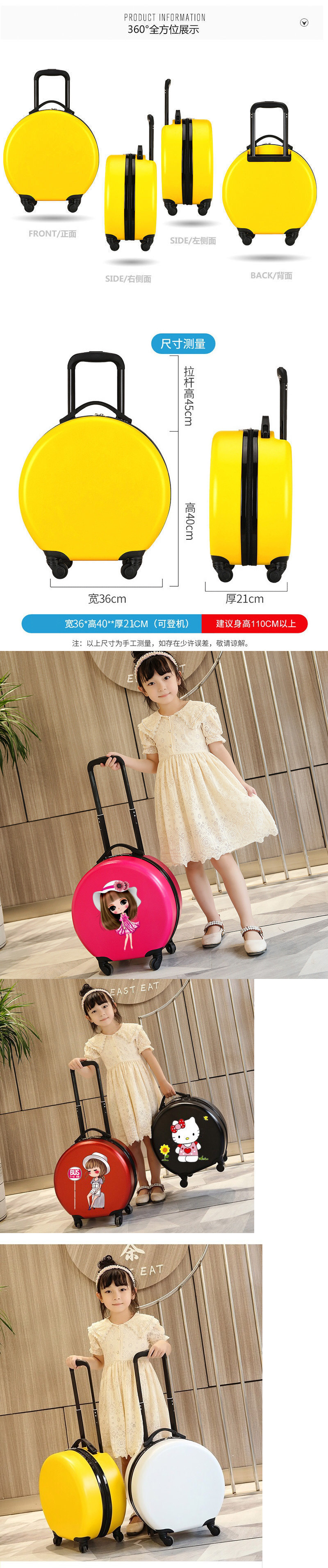 어린이 수하물 소년과 소녀 작은 18inch 만화 트롤리 케이스 범용 바퀴 귀여운 여행 가방 로고 가능