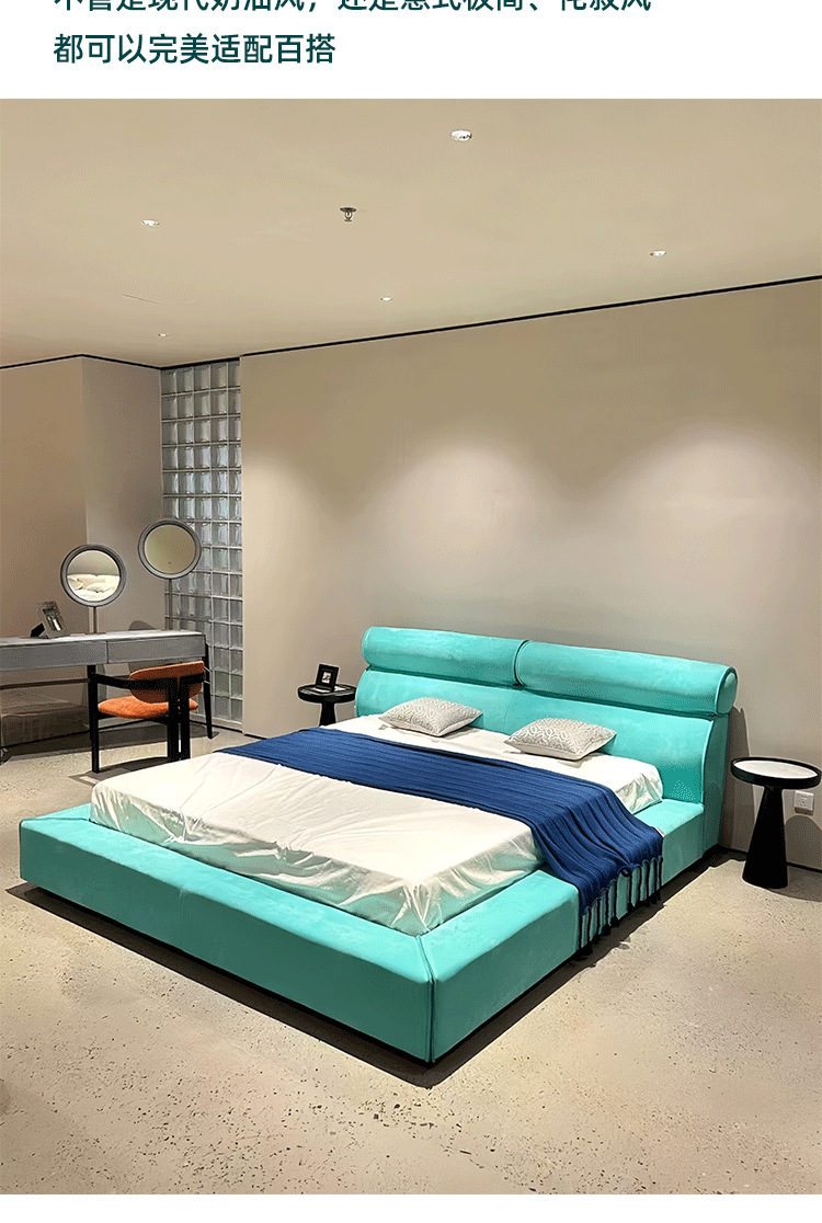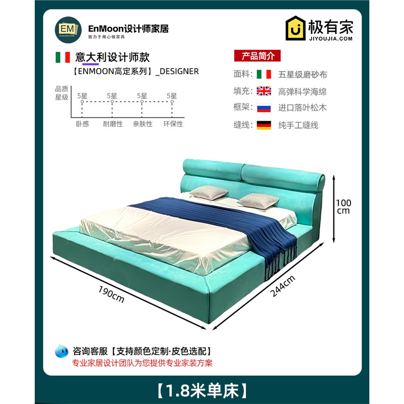 ENMOON 이탈리안 박스터 마이애미 침대 마이애미 디자이너 심플 반투명 천 마스터 침실 더블 침대스토어 가기