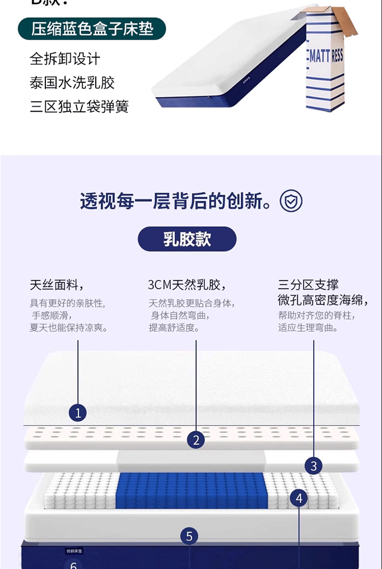 • B타입 매트리스 [블루박스압축/완전분해/천연라텍스/3존 싱글백스프링]