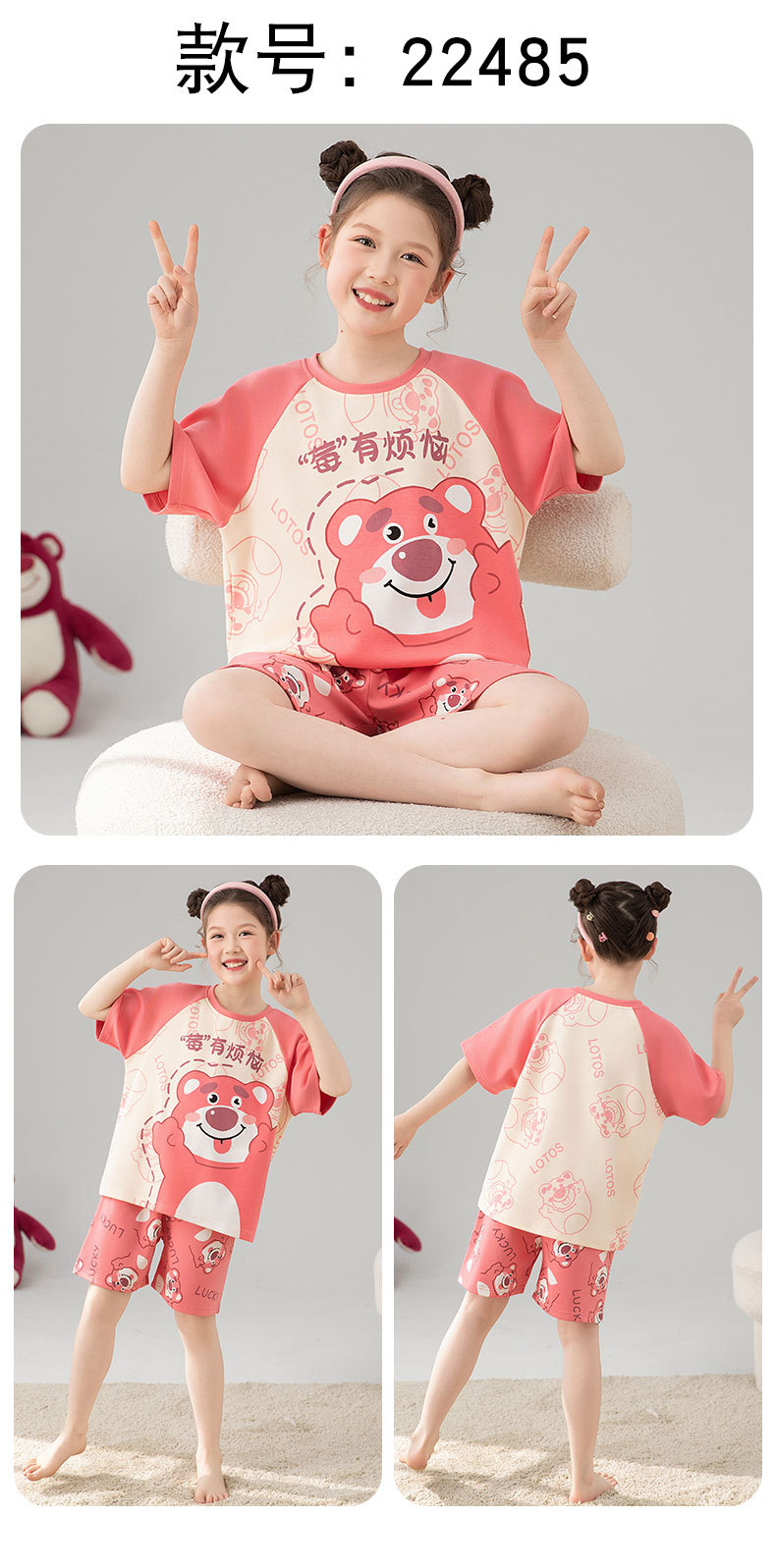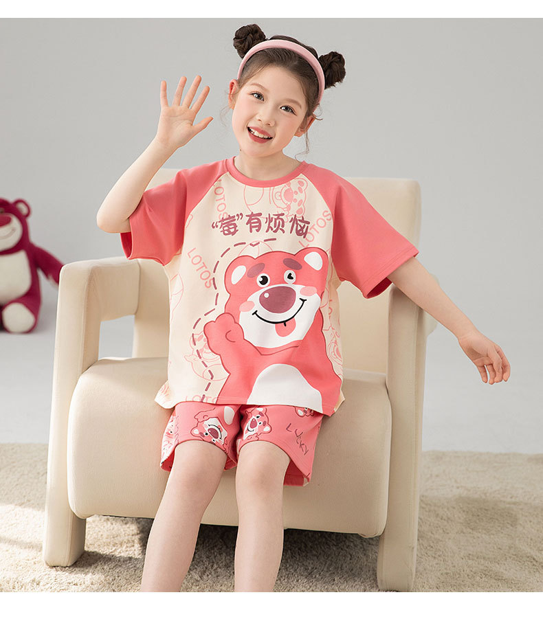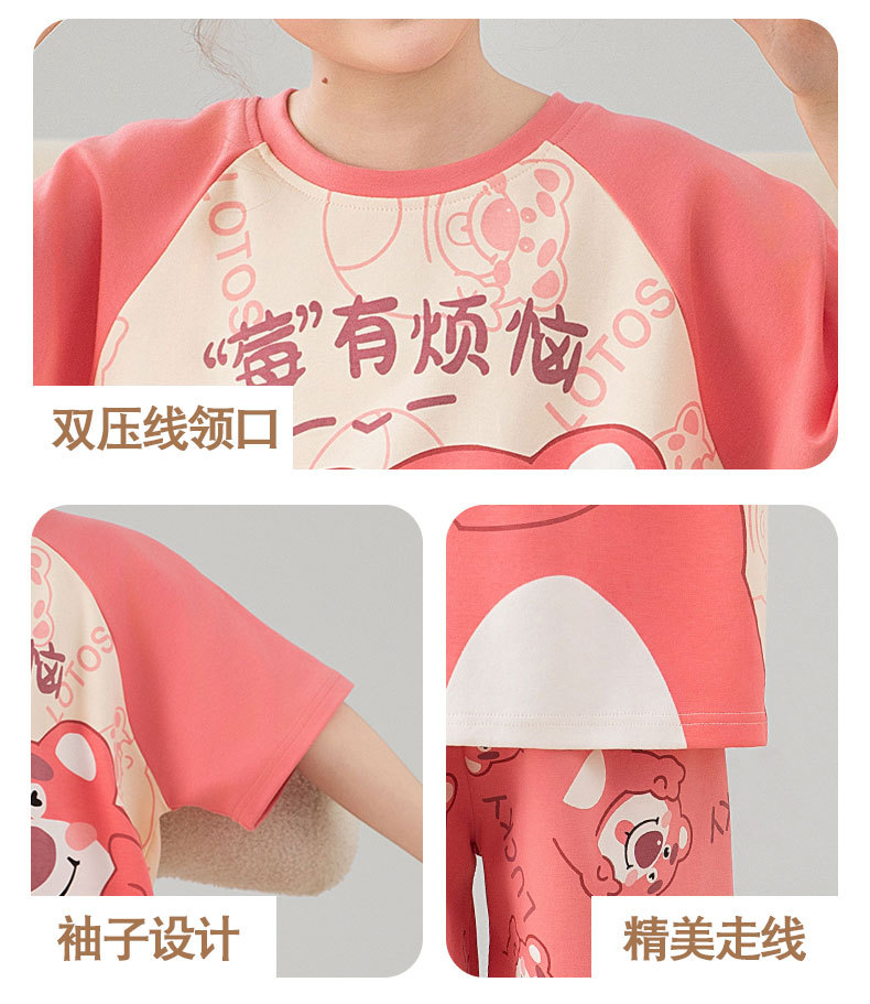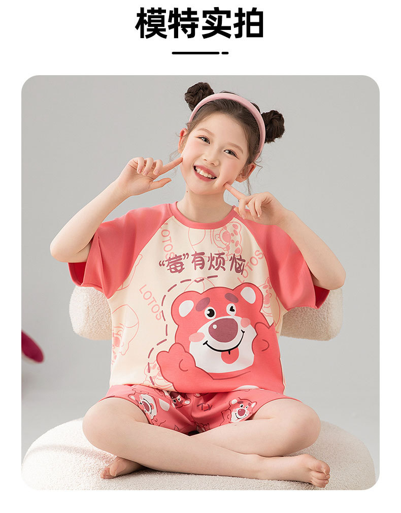 딸기 곰 소녀 잠옷 여름 순수 코튼 반팔 반바지 공주 스타일 귀여운 소녀 여름 에어컨 가정 의류스토어 가기