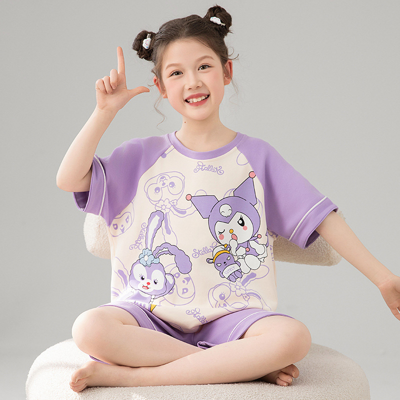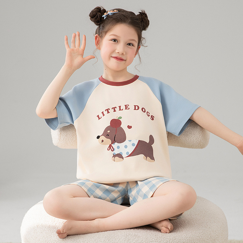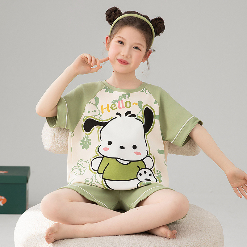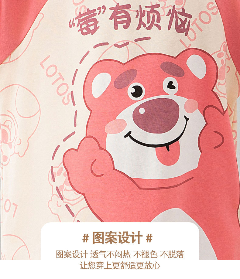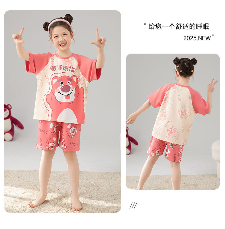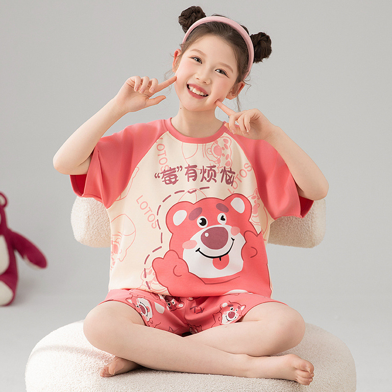 딸기 곰 소녀 잠옷 여름 순수 코튼 반팔 반바지 공주 스타일 귀여운 소녀 여름 에어컨 가정 의류스토어 가기