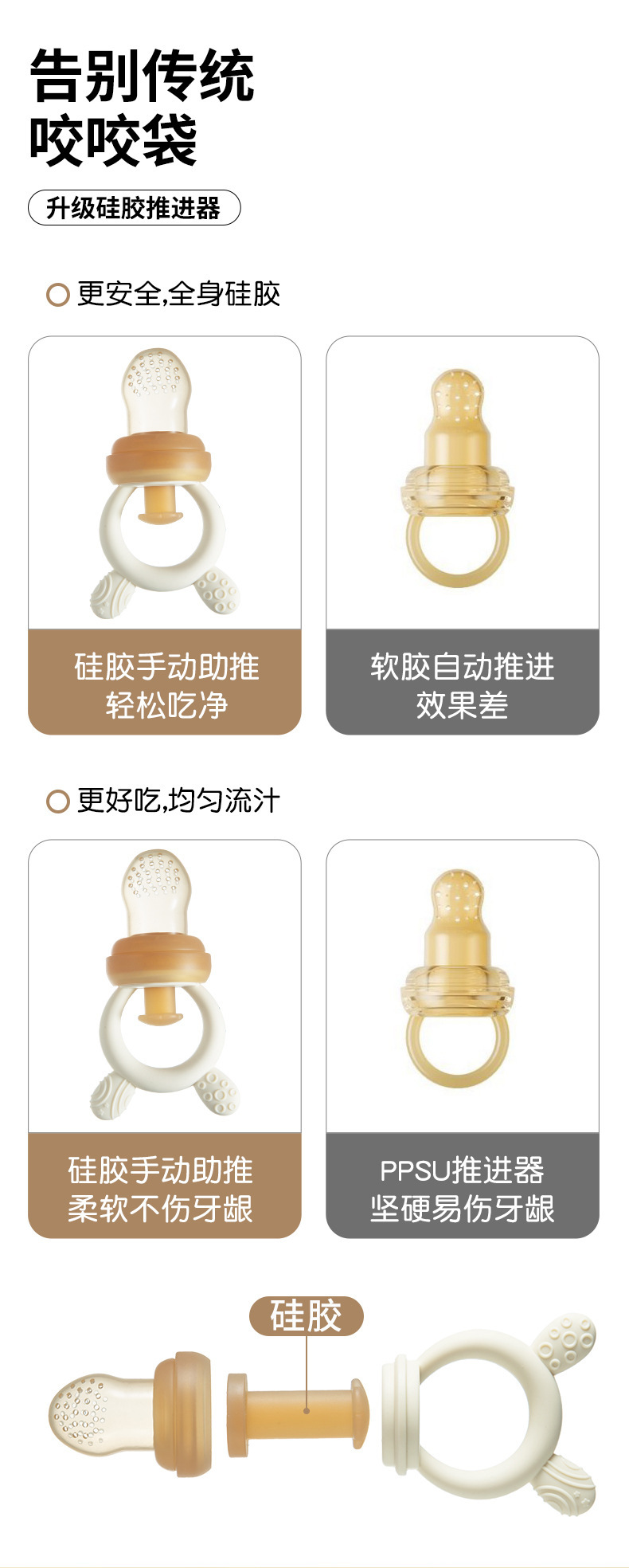 새로운 전체 실리콘 과일 및 야채 바이트 아기 젖꼭지 등급 아기 어금니 젤리 주스 바이트 도매 공급스토어 가기