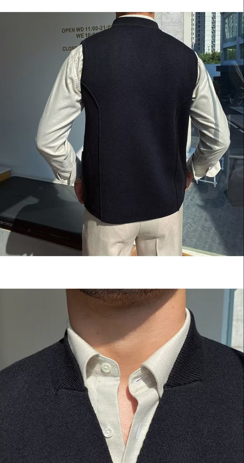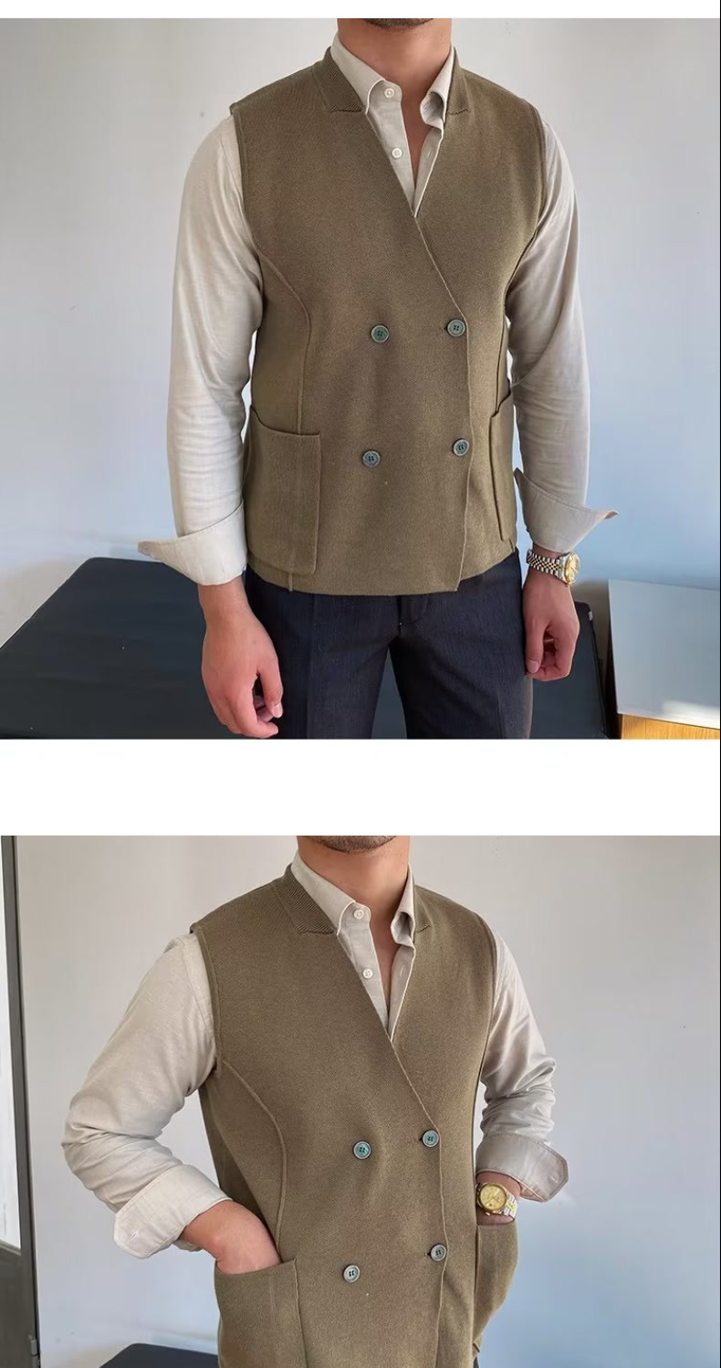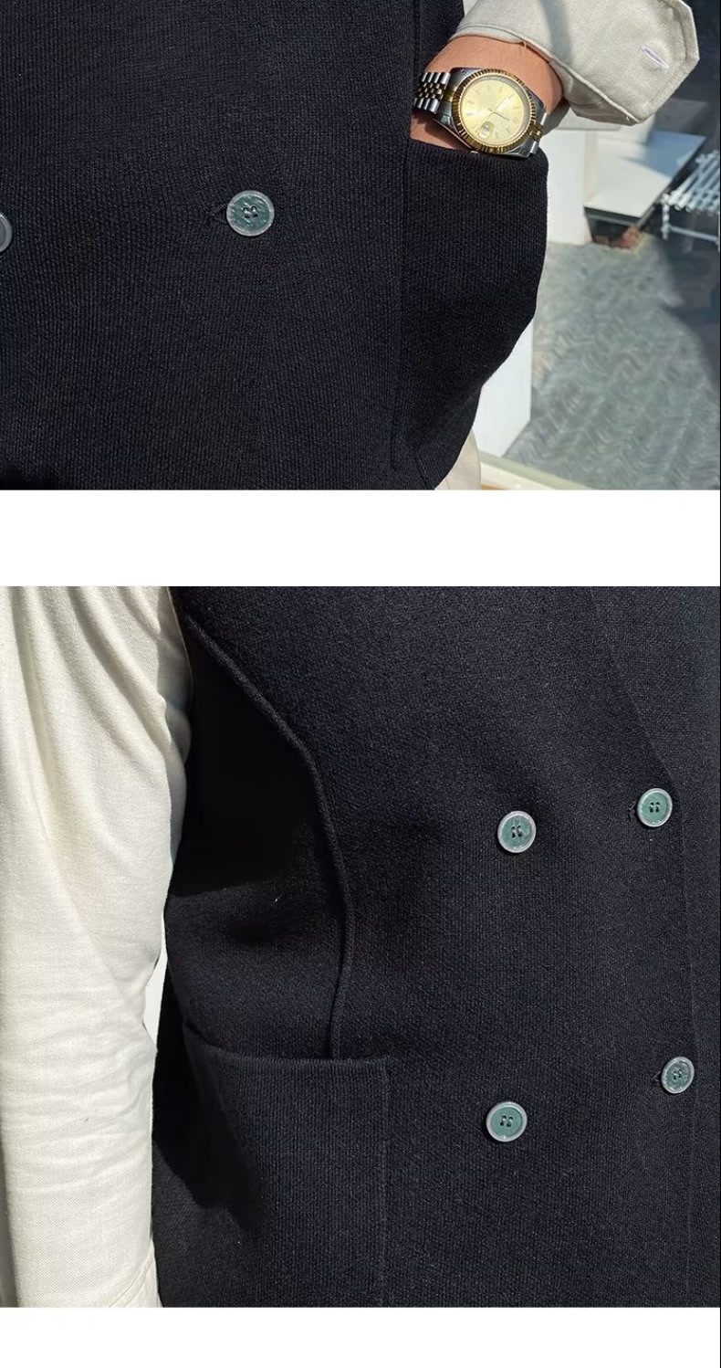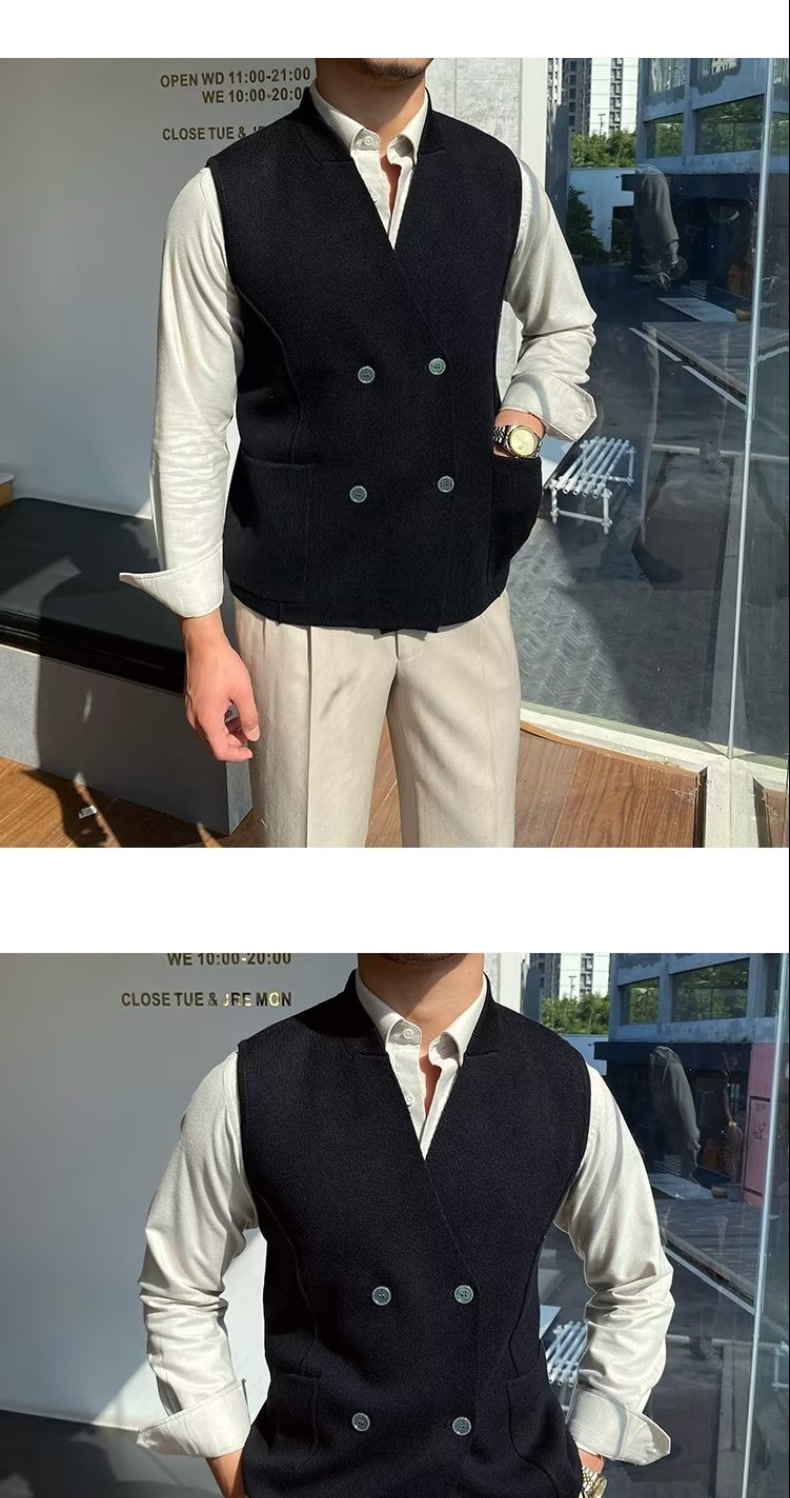 가을 남성 영국 복고풍 스타일 슬림 헤링본 모직 조끼 캐주얼 모직 더블 브레스트 정장 조끼