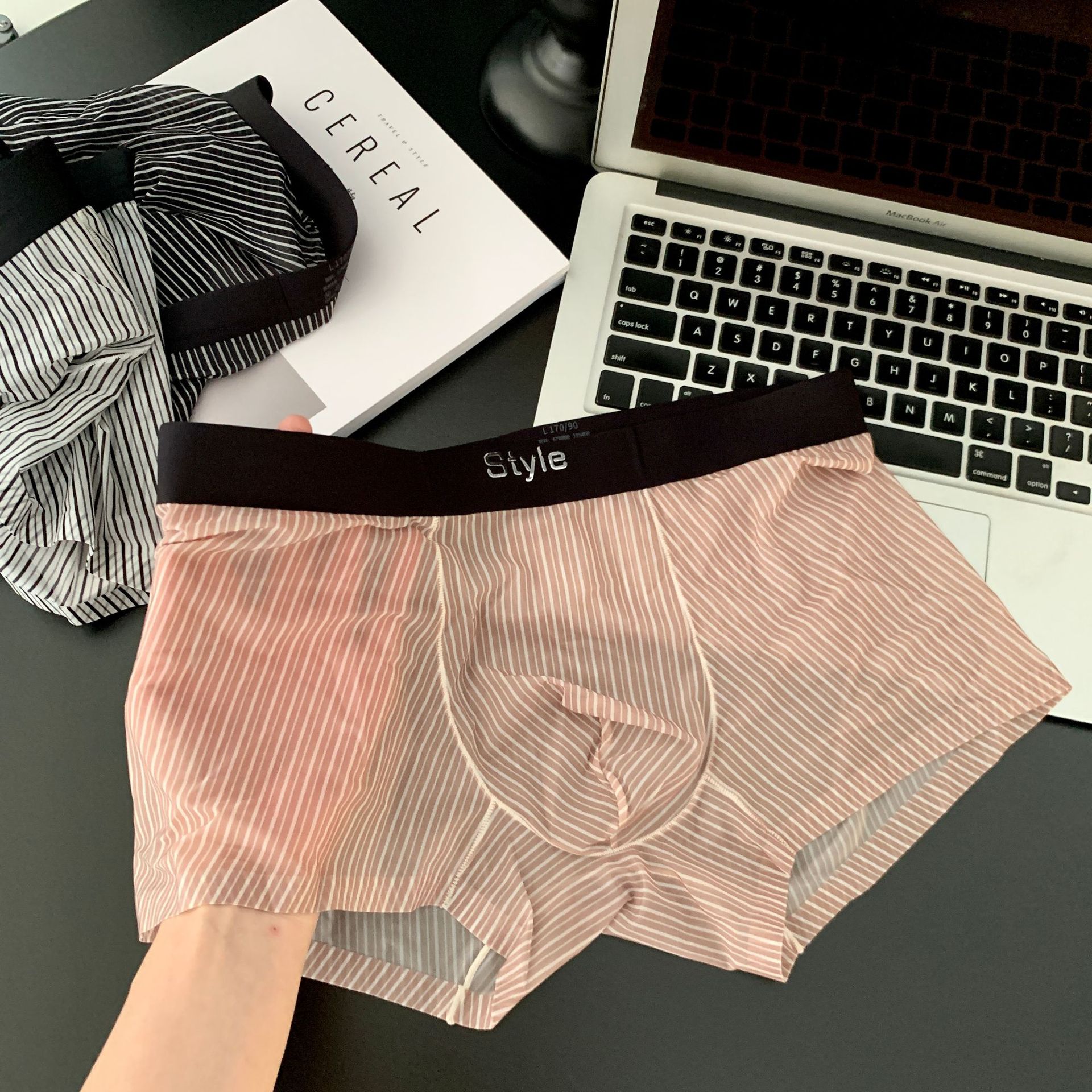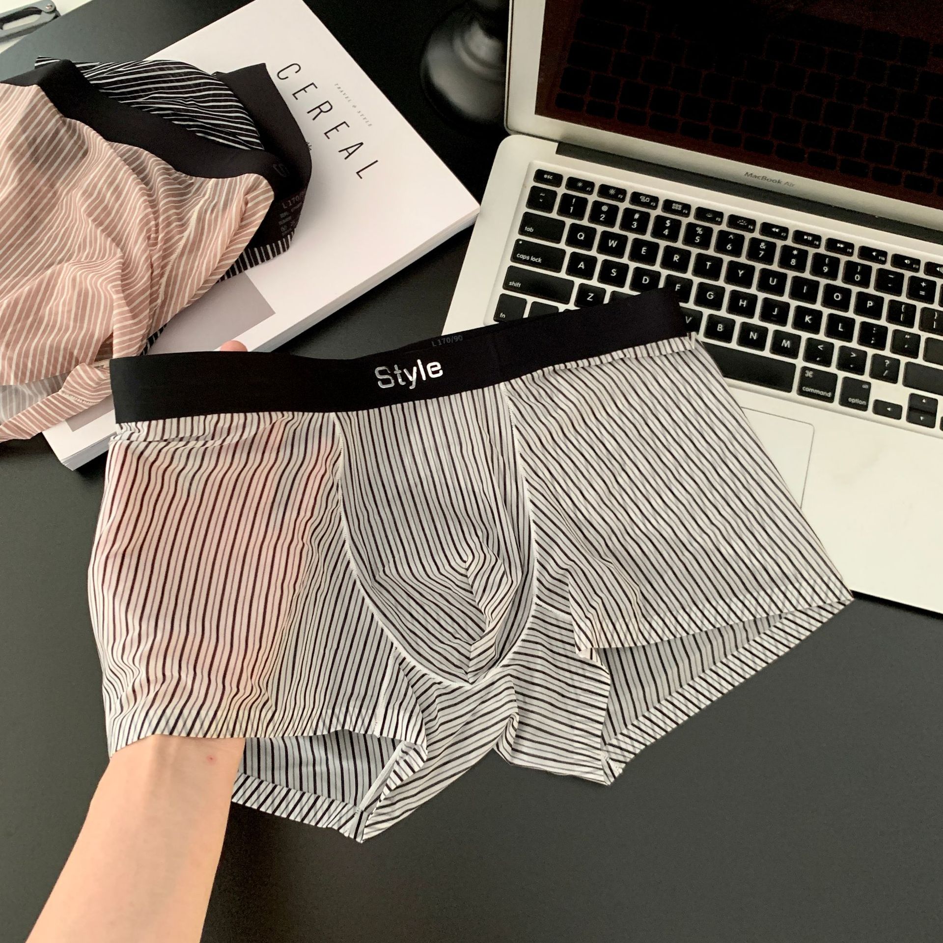 10A 항균 동백 향기 얼음 실크 속옷 남성용 줄무늬 속건성 가랑이없는 투명 중간 허리 남성용 복서 팬티스토어 가기