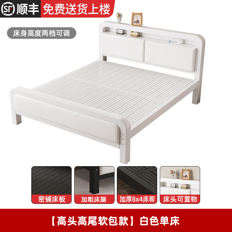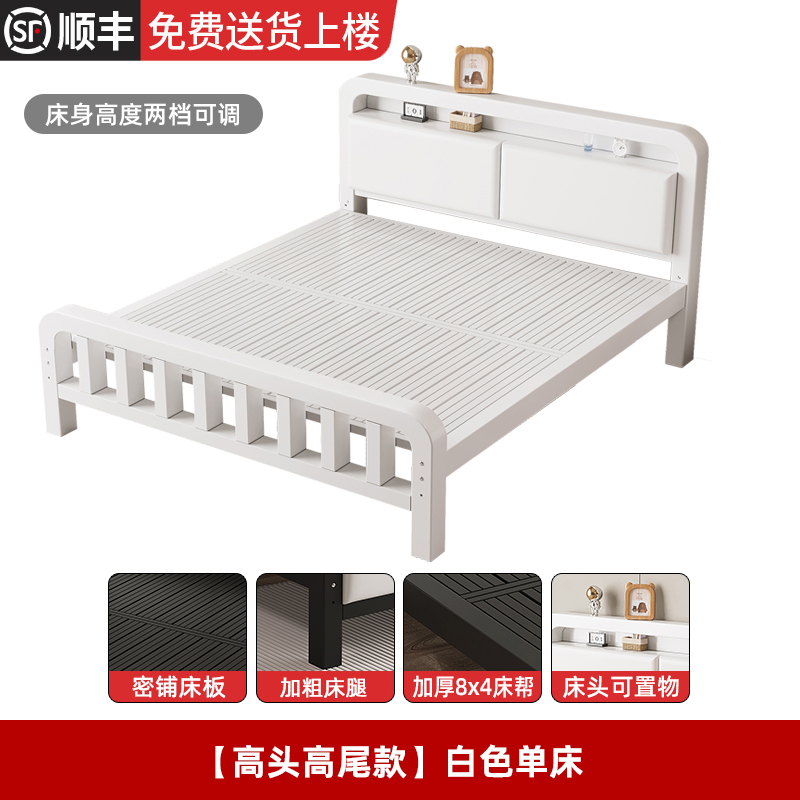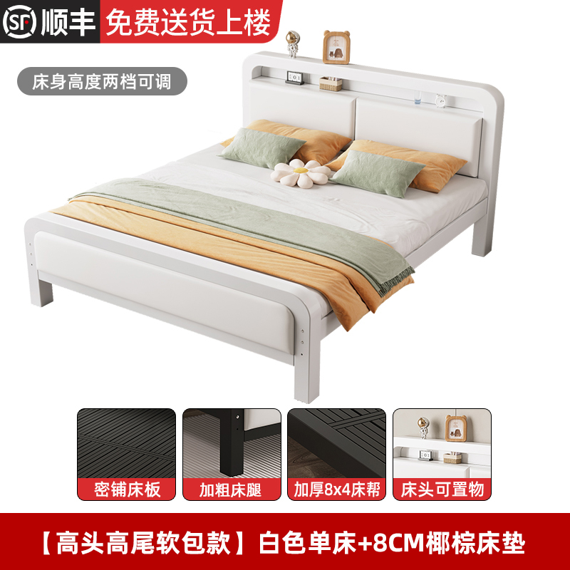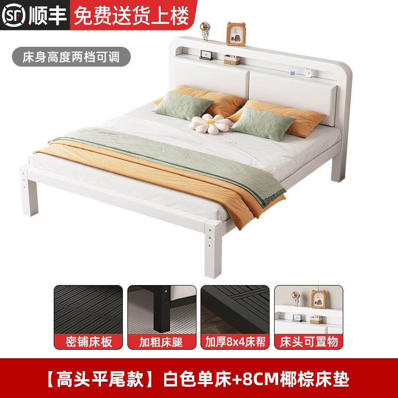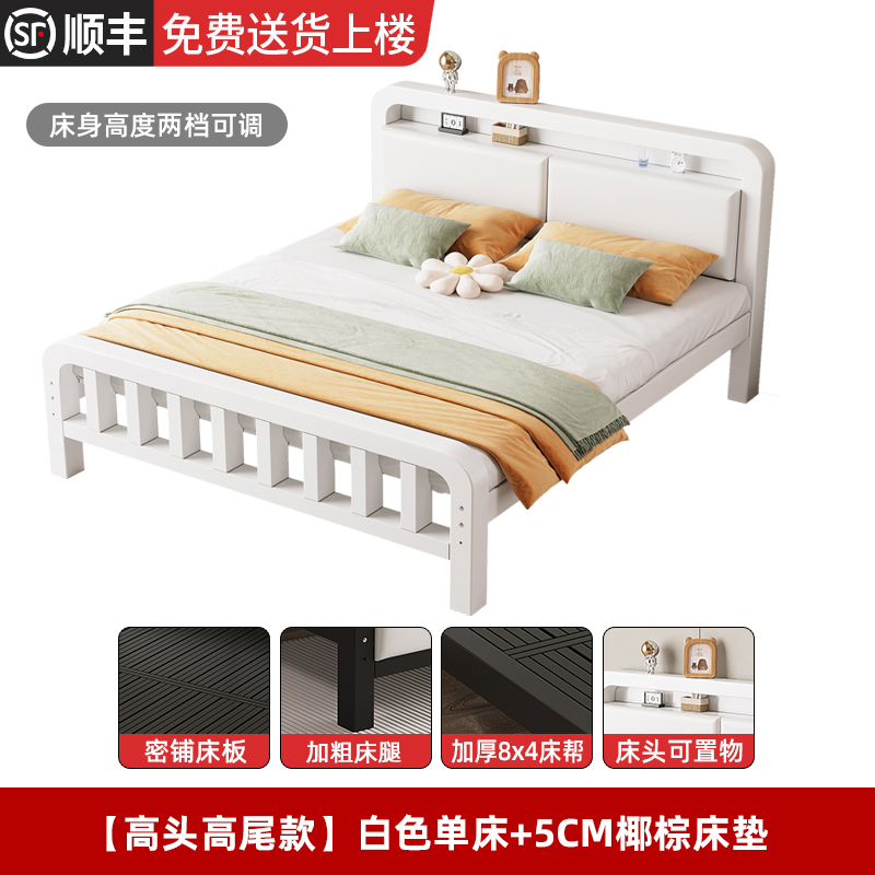 • [하이 헤드 및 플랫 테일 모델] 화이트 싱글 침대 + 8cm 코코넛 야자 매트리스(침대 높이 조절 가능)