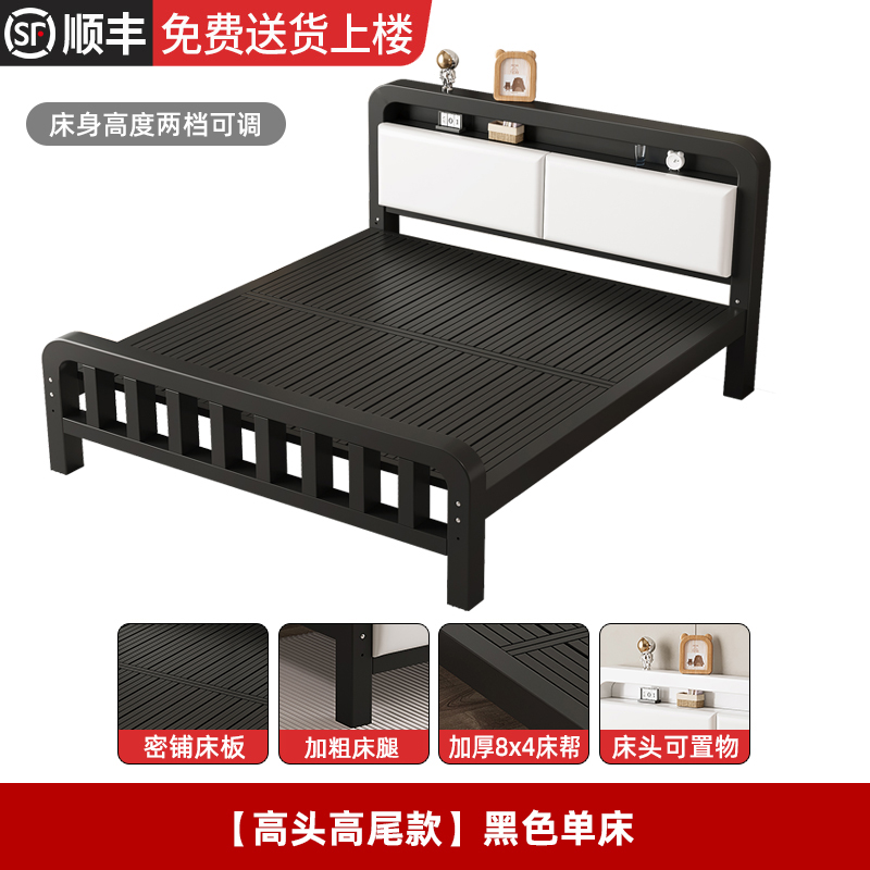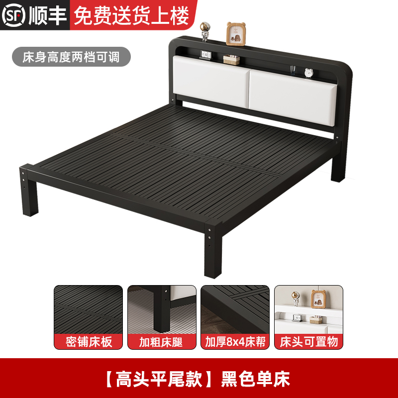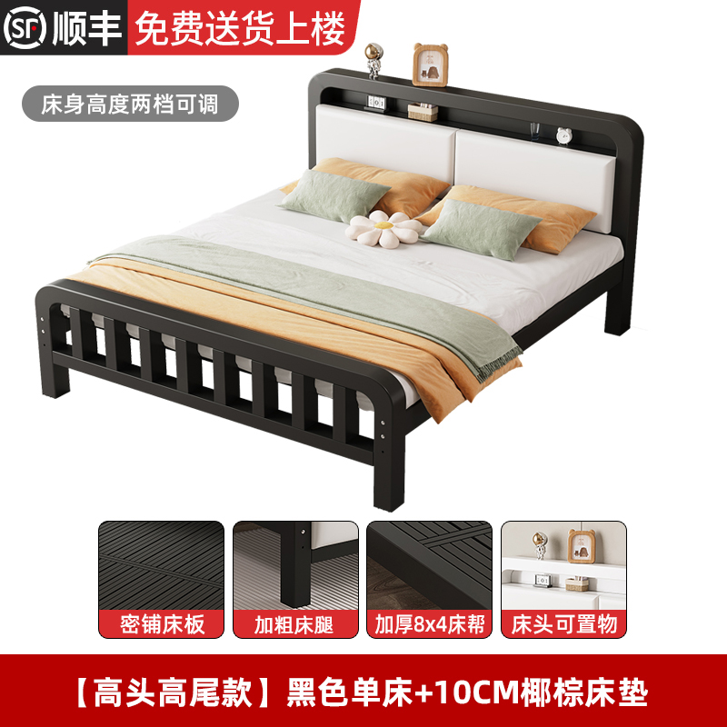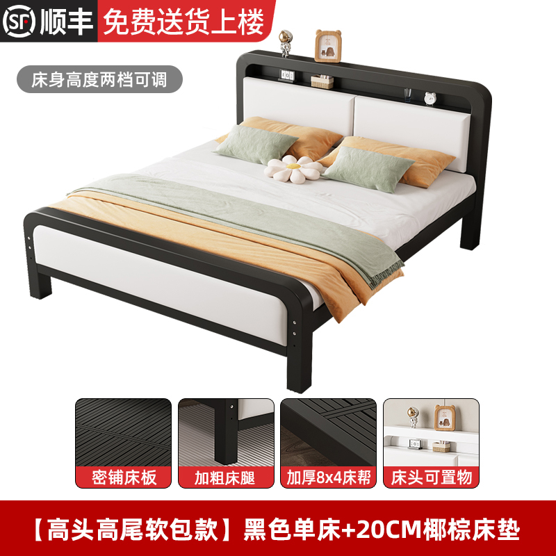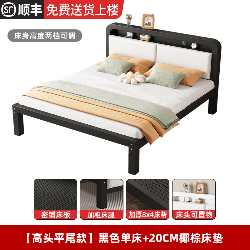 • [하이 헤드 및 플랫 테일 모델] 블랙 싱글 침대 + 20cm 코코넛 야자 매트리스(침대 높이 조절 가능)