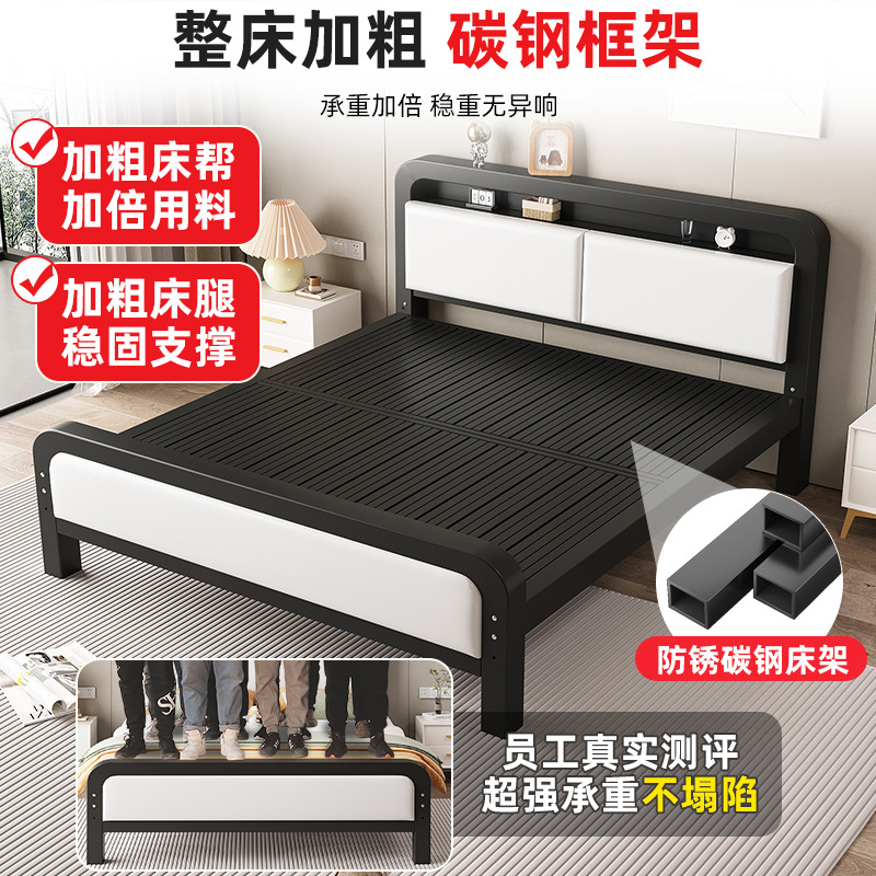 연철 침대 더블 침대 1.8m 두꺼운 가정용 철제 침대 스테인레스 스틸 싱글 침대 프레임 임대실용 철제 프레임 침대