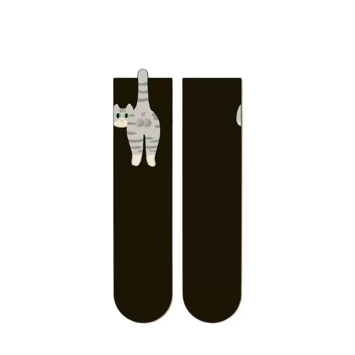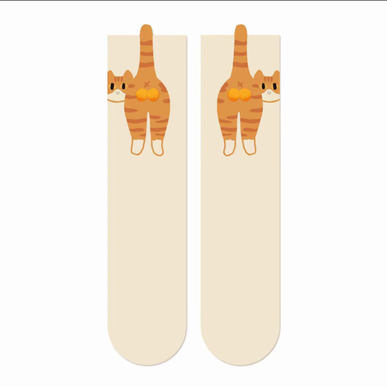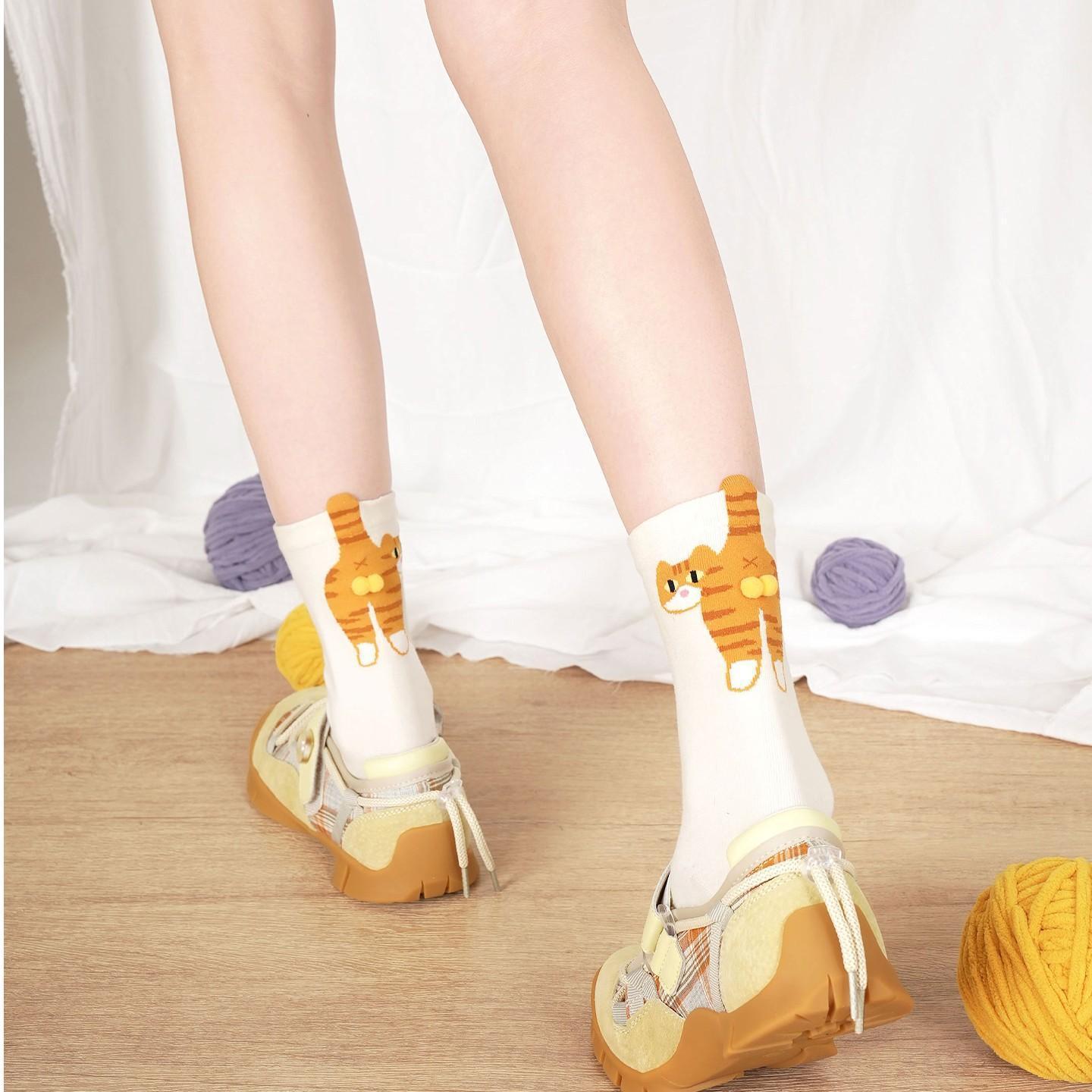 [재고 있음, 빠른 배송] 여름 여성을 위한 흰색 만화 고양이 징글 달걀 양말 귀엽고 재미있는 중간 길이 양말스토어 가기
