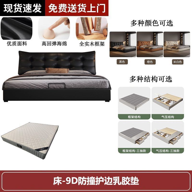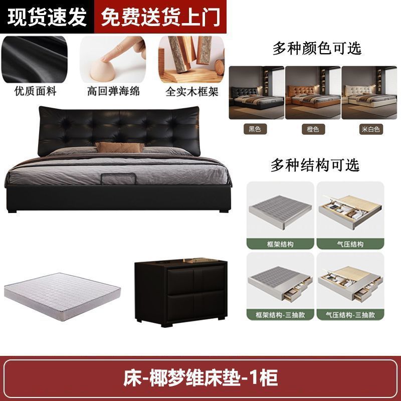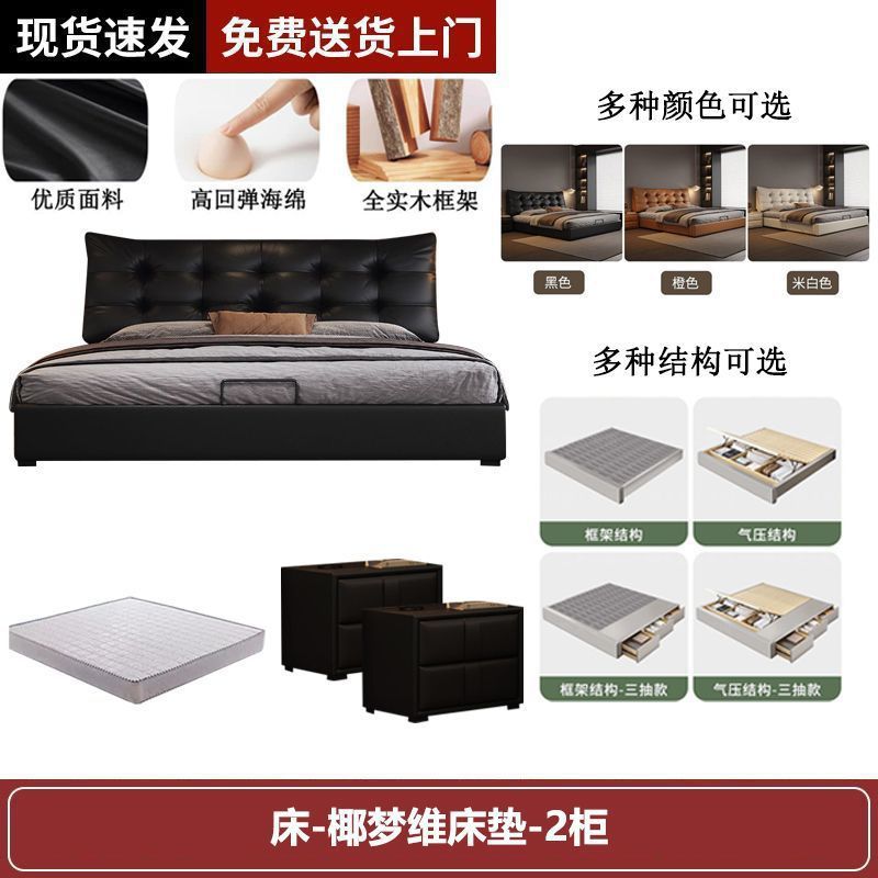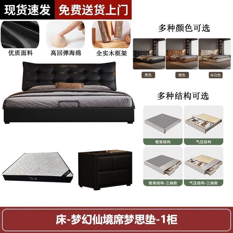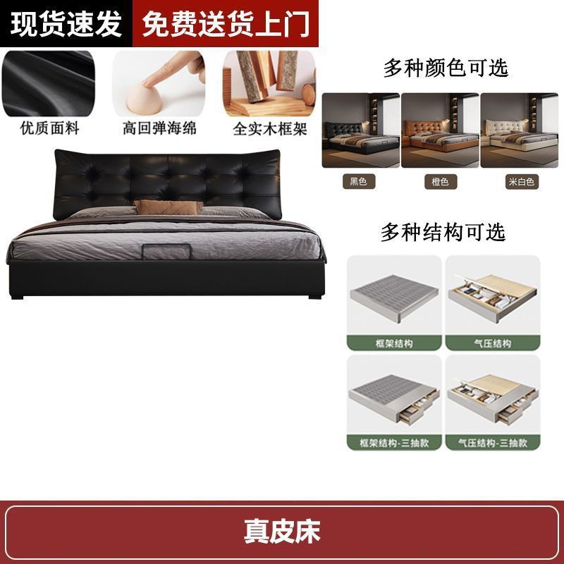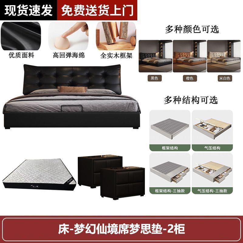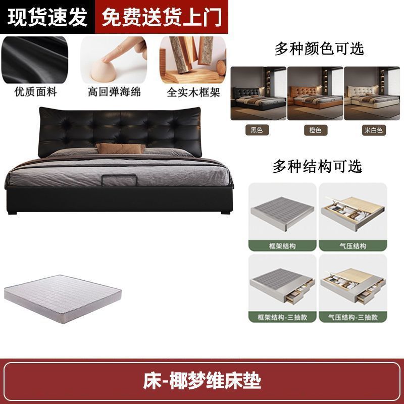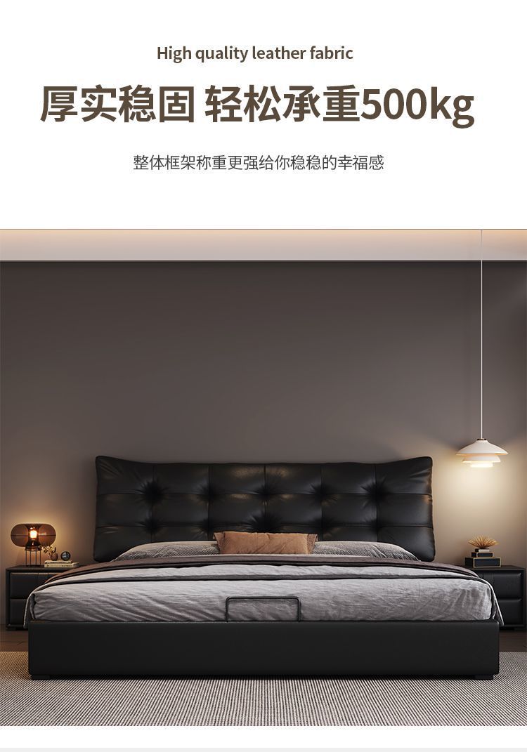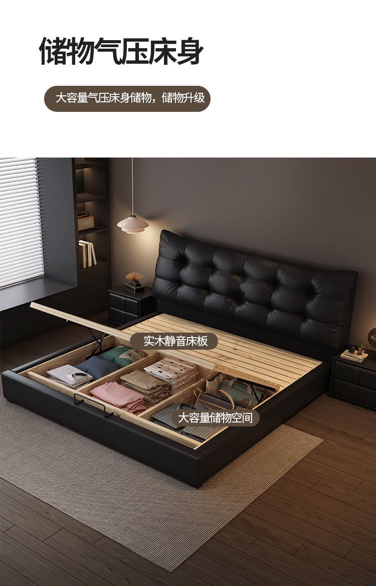 새로운 로렌스 가죽 침대 더블. 미터 이탈리안 마스터 침실 대형 침대. 미터 공기압 수납 가죽 침대스토어 가기