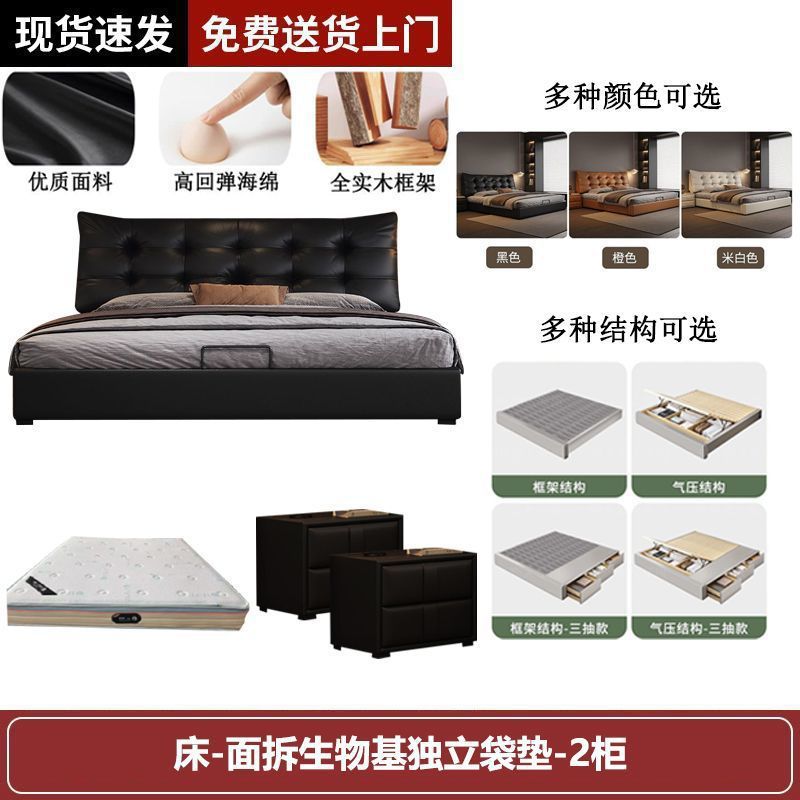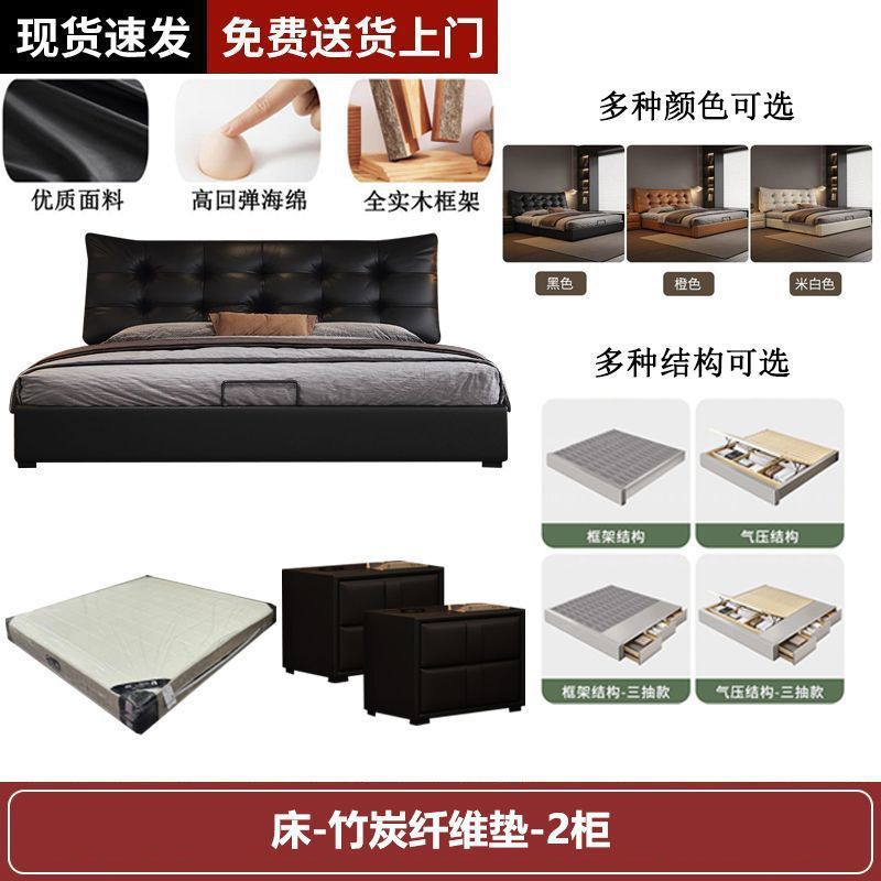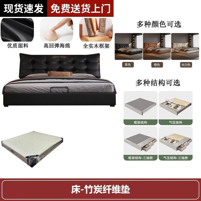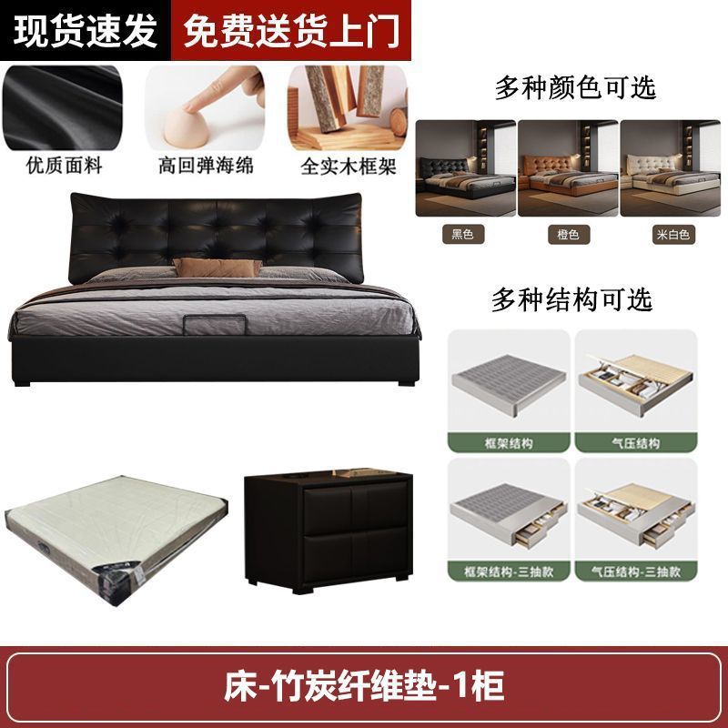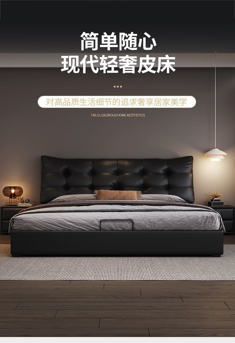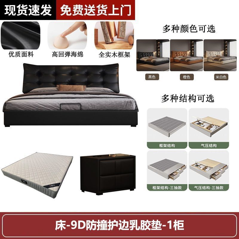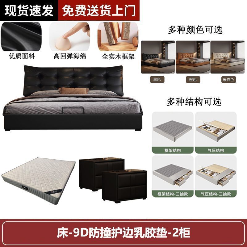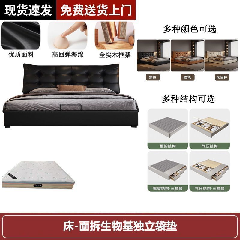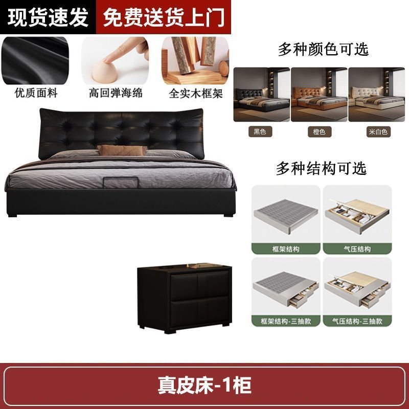 새로운 로렌스 가죽 침대 더블. 미터 이탈리안 마스터 침실 대형 침대. 미터 공기압 수납 가죽 침대스토어 가기