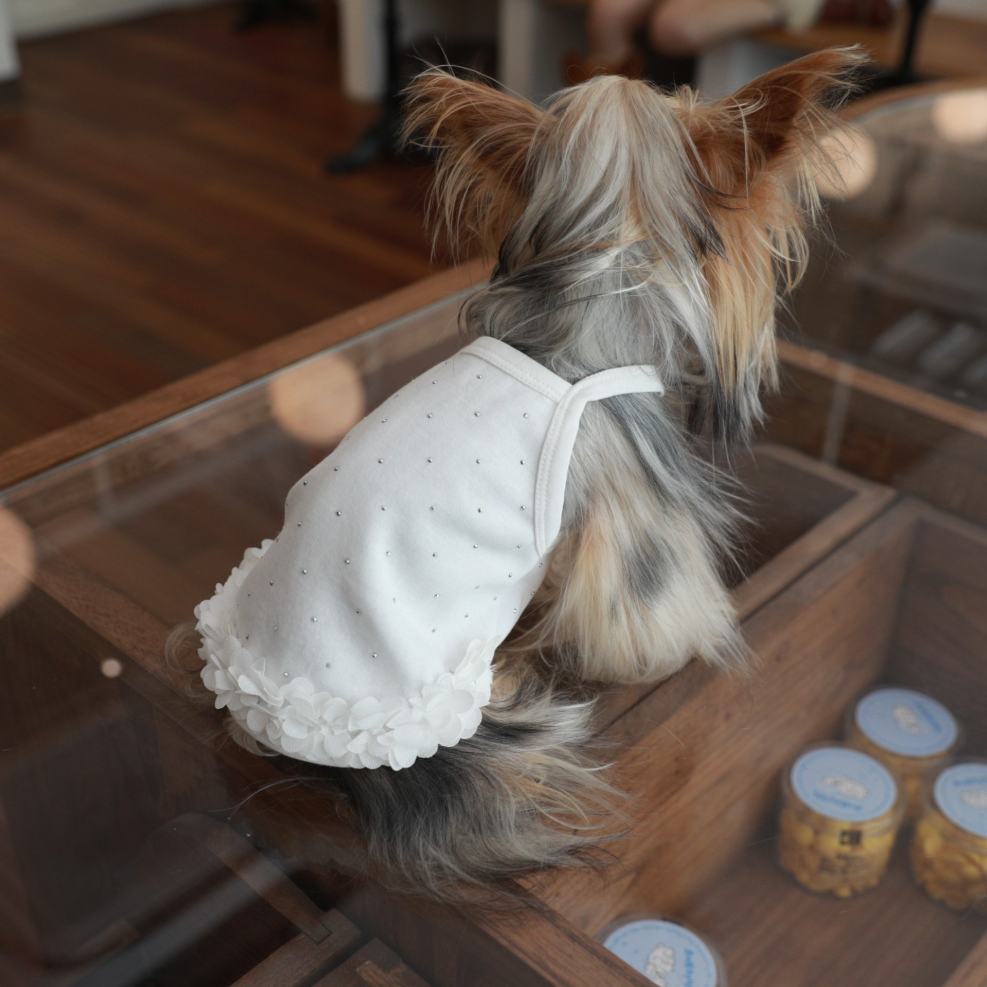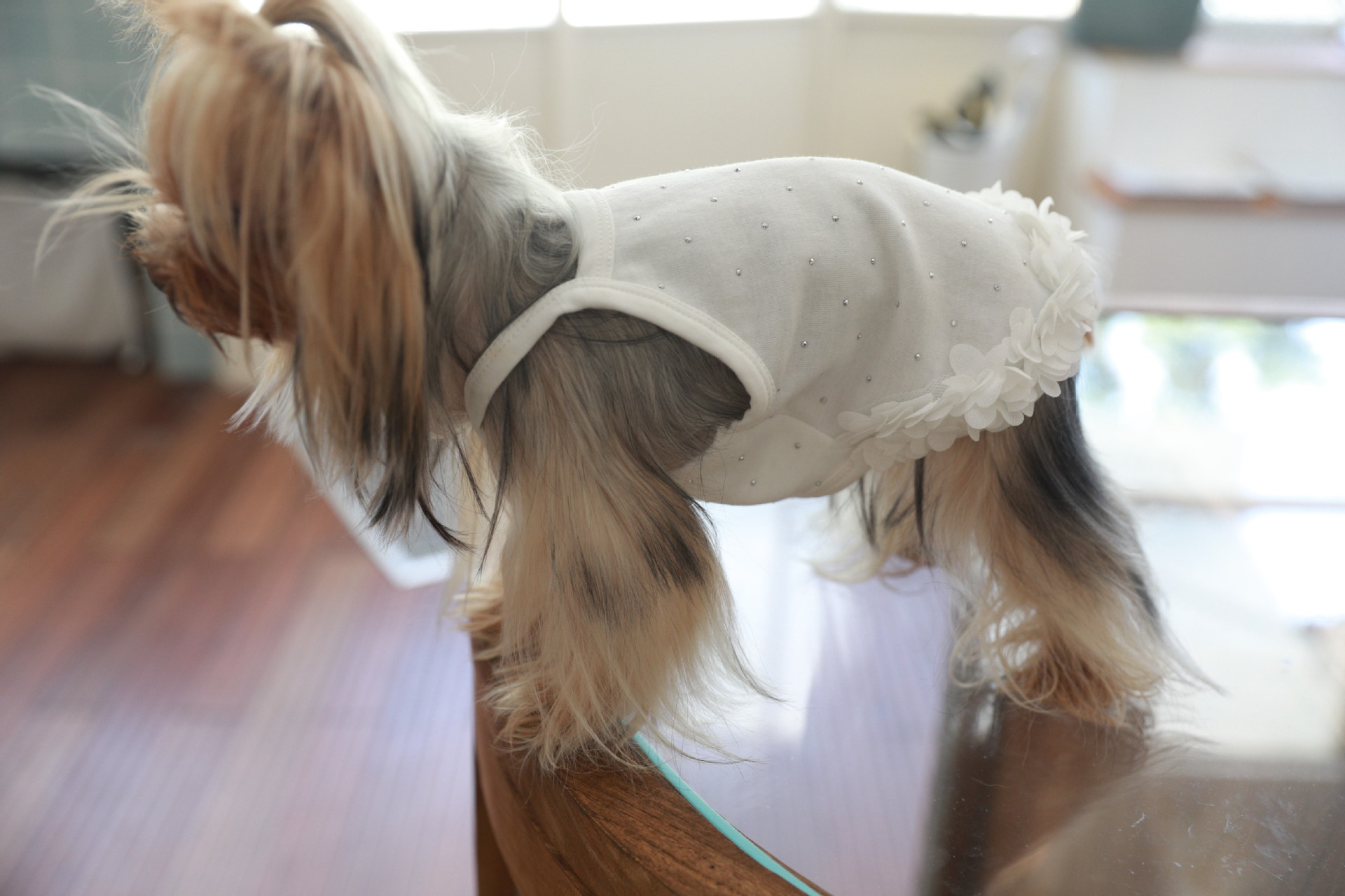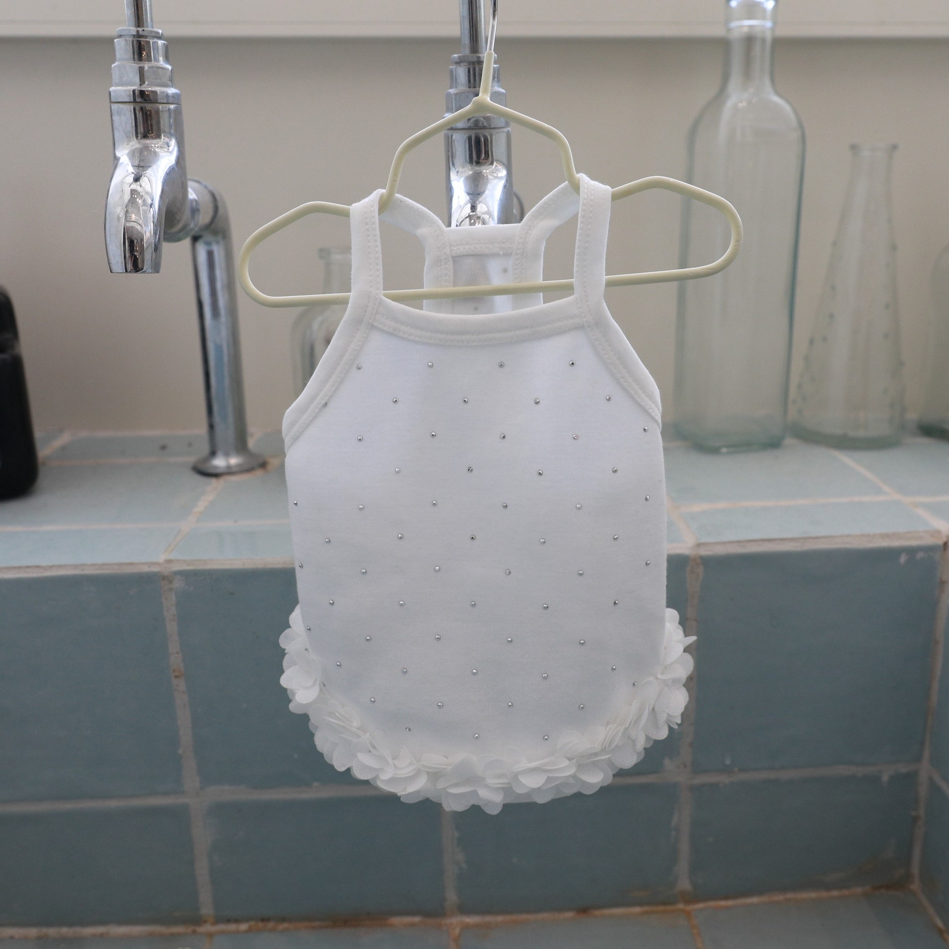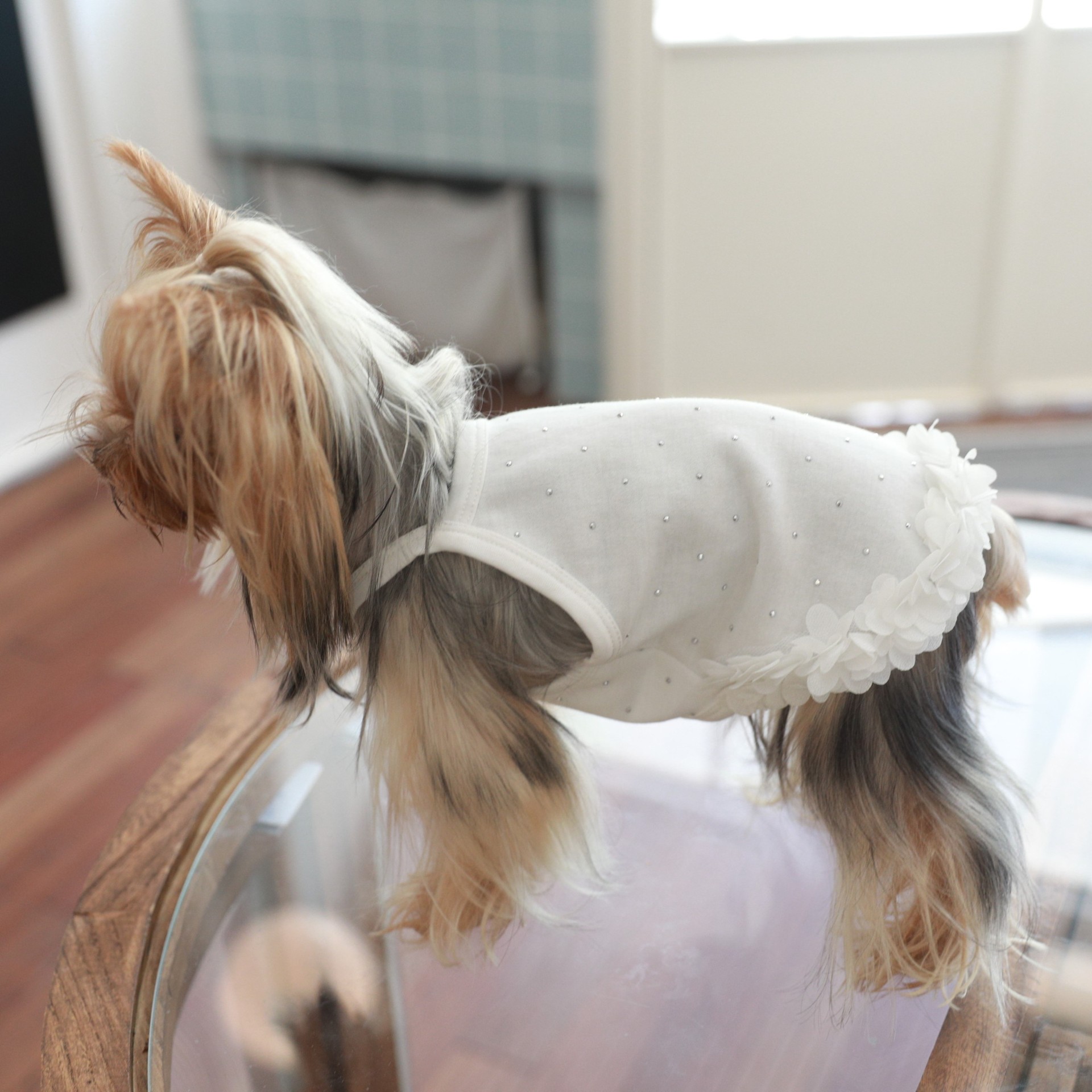 면 부드러운 여름 단색 애완 동물 핫 다이아몬드 서스펜더 스커트 밑단 꽃 고양이 비숑 프리제 요크셔 개 애완 동물 옷