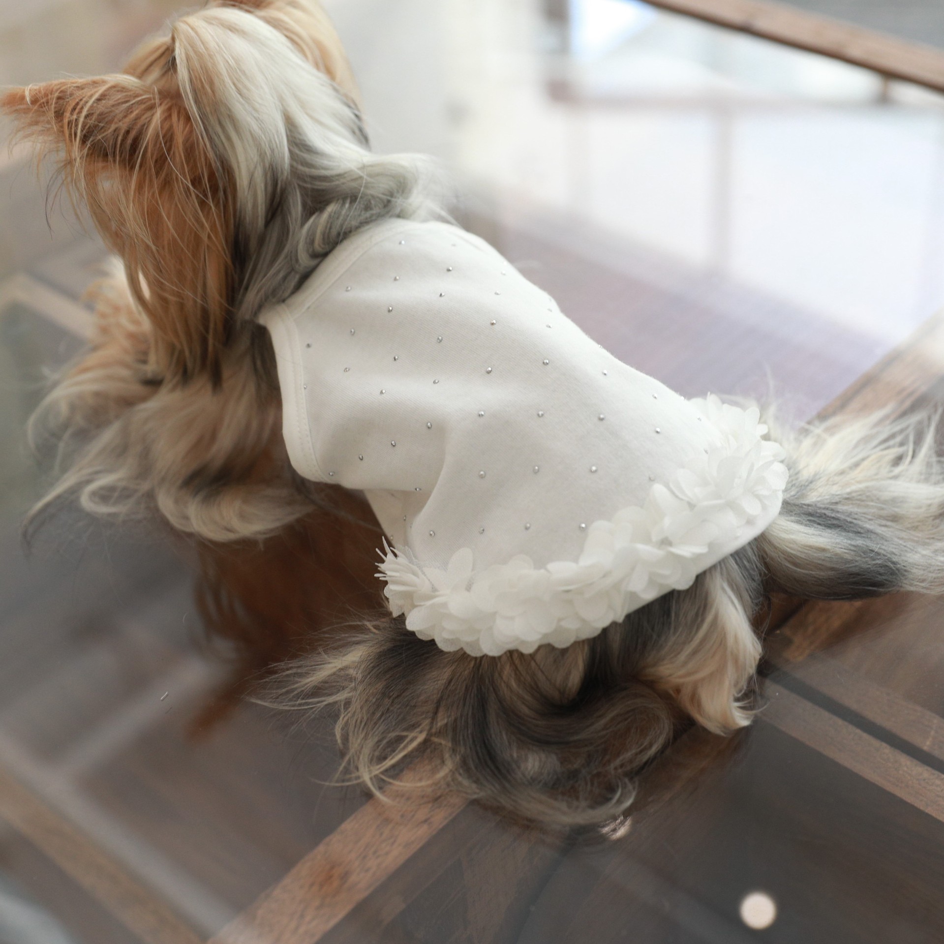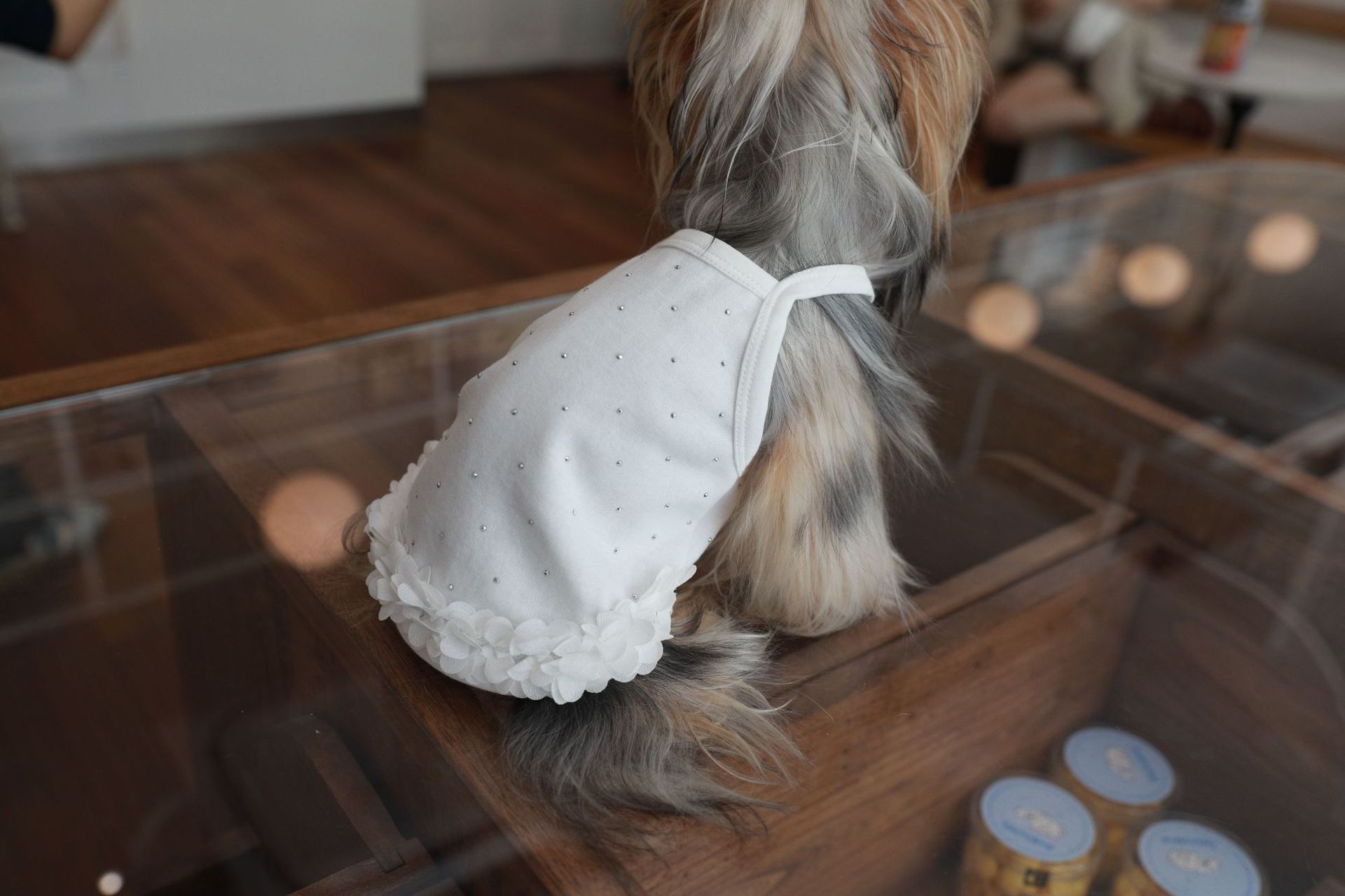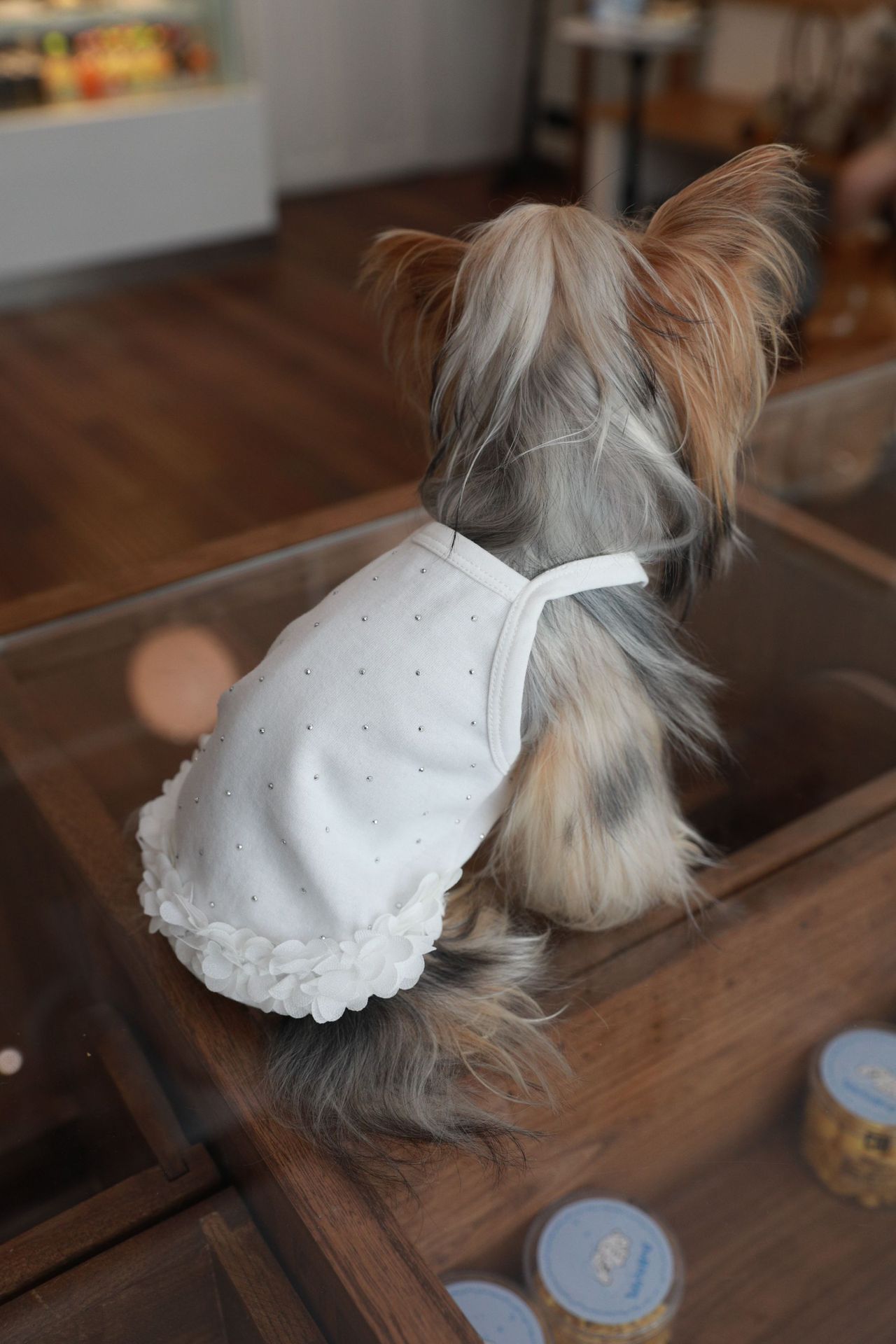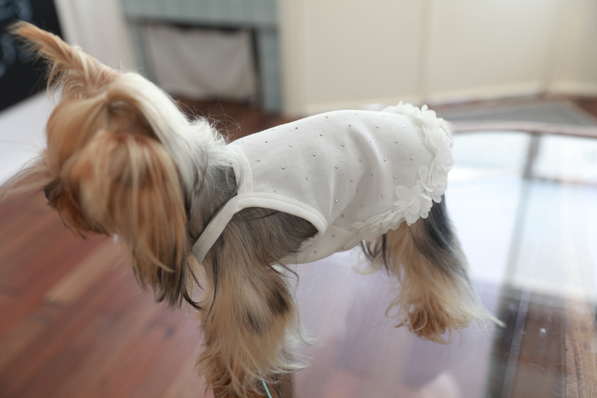 면 부드러운 여름 단색 애완 동물 핫 다이아몬드 서스펜더 스커트 밑단 꽃 고양이 비숑 프리제 요크셔 개 애완 동물 옷