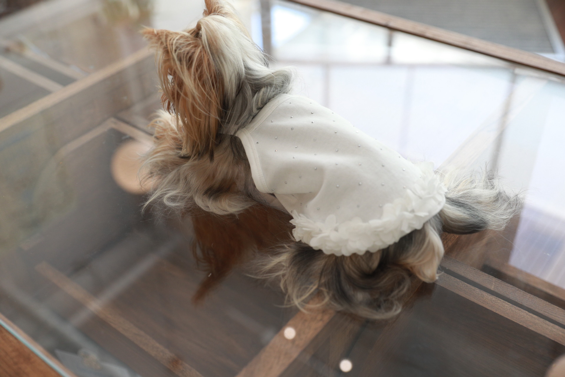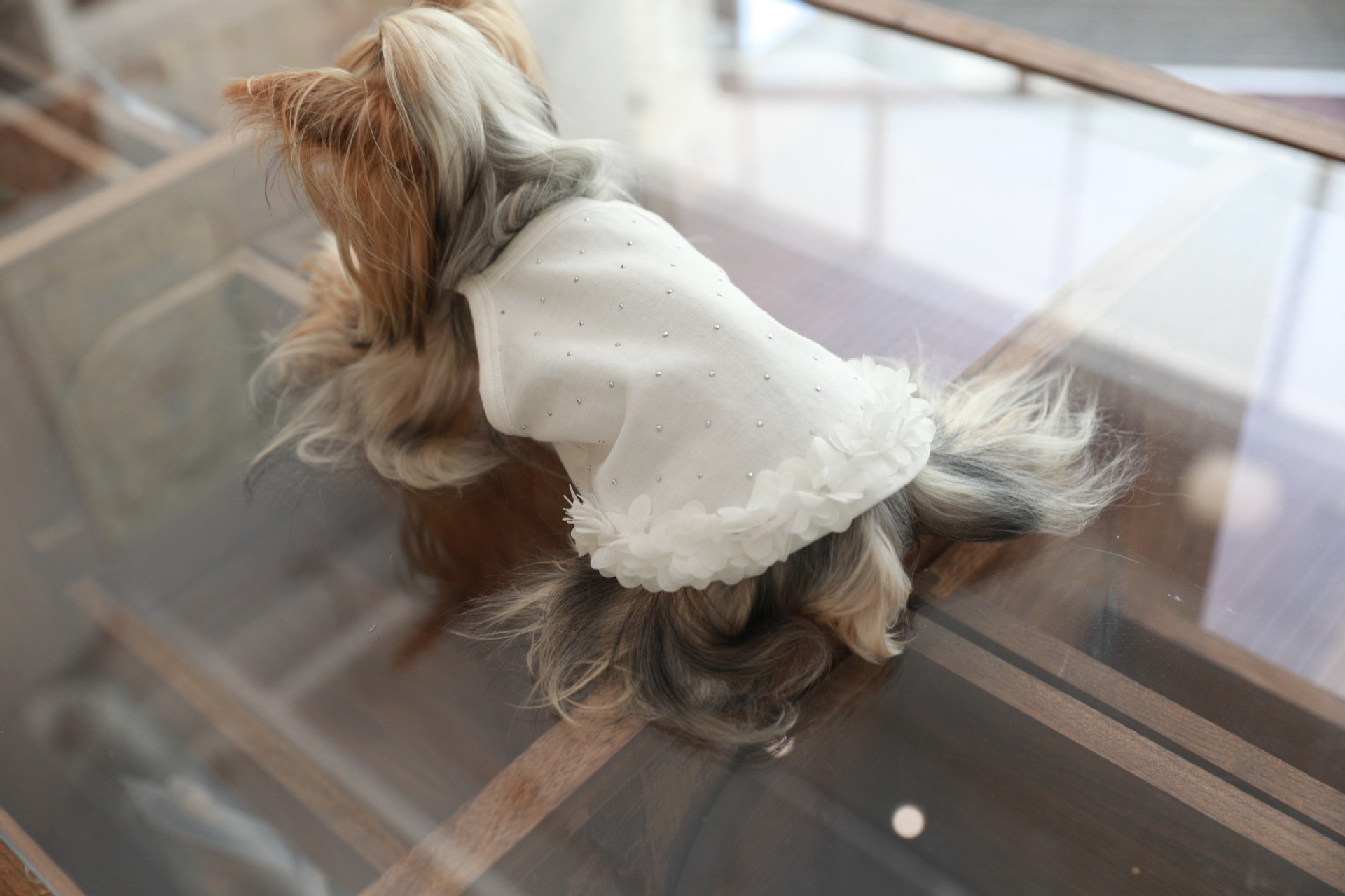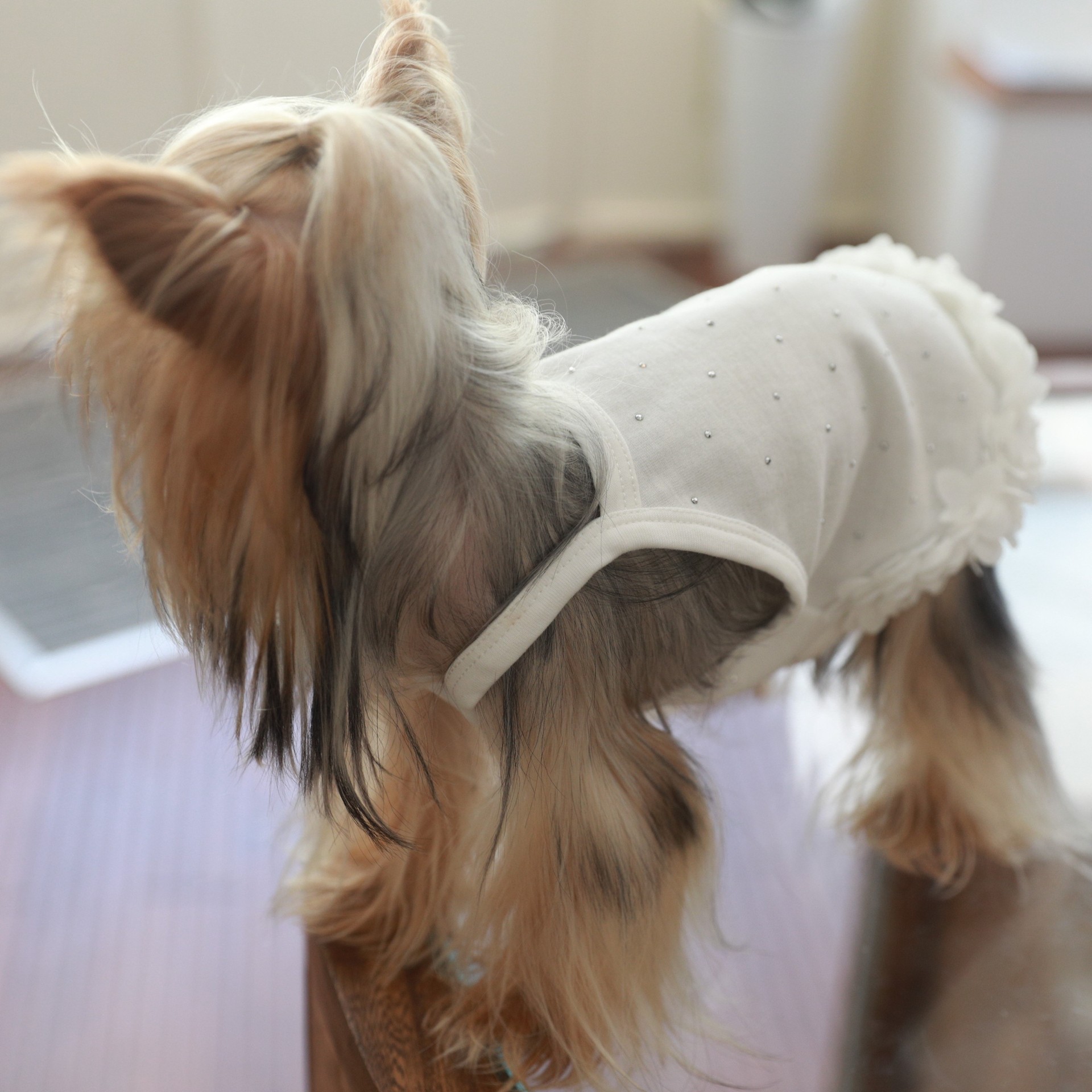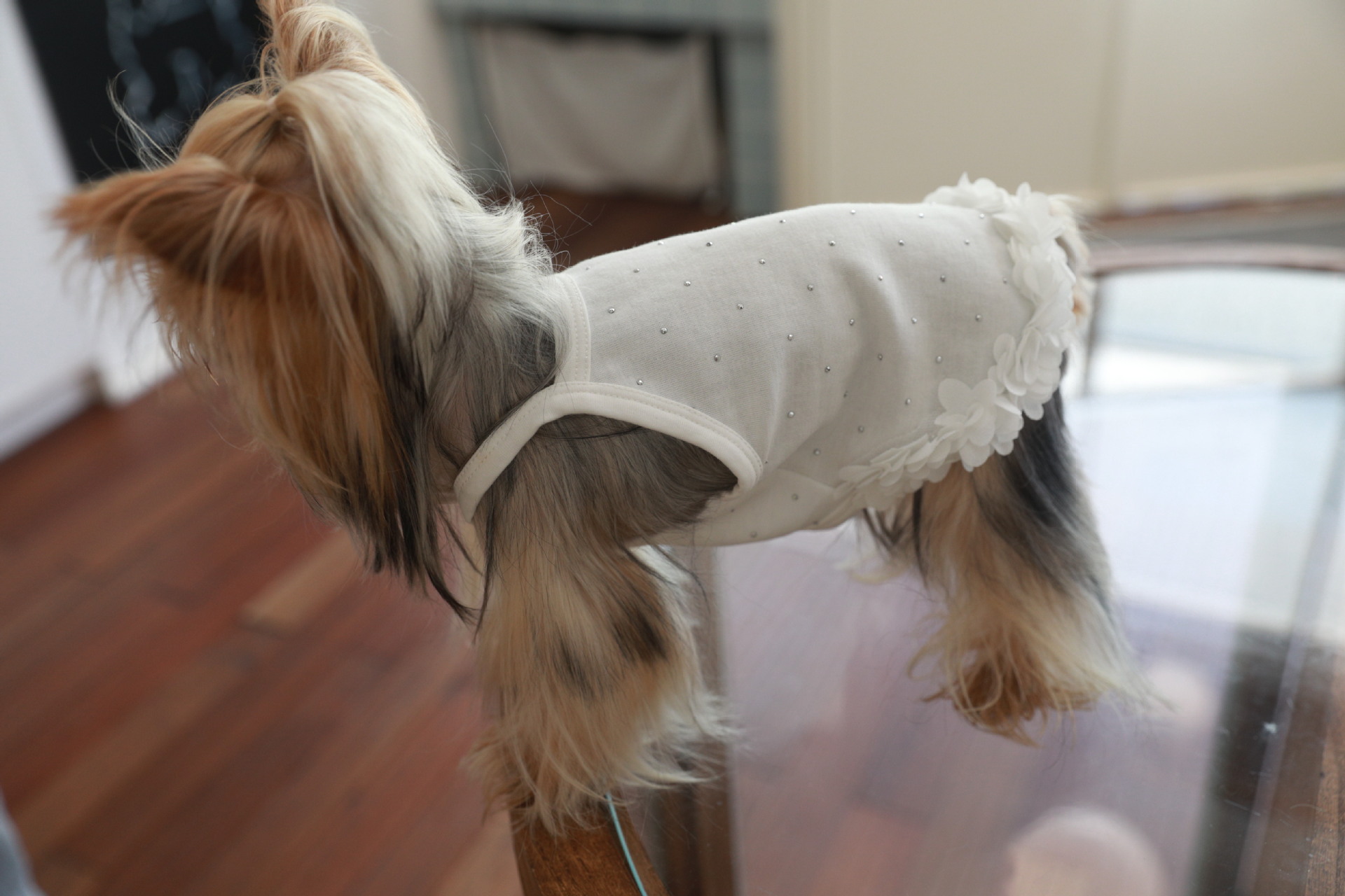 면 부드러운 여름 단색 애완 동물 핫 다이아몬드 서스펜더 스커트 밑단 꽃 고양이 비숑 프리제 요크셔 개 애완 동물 옷