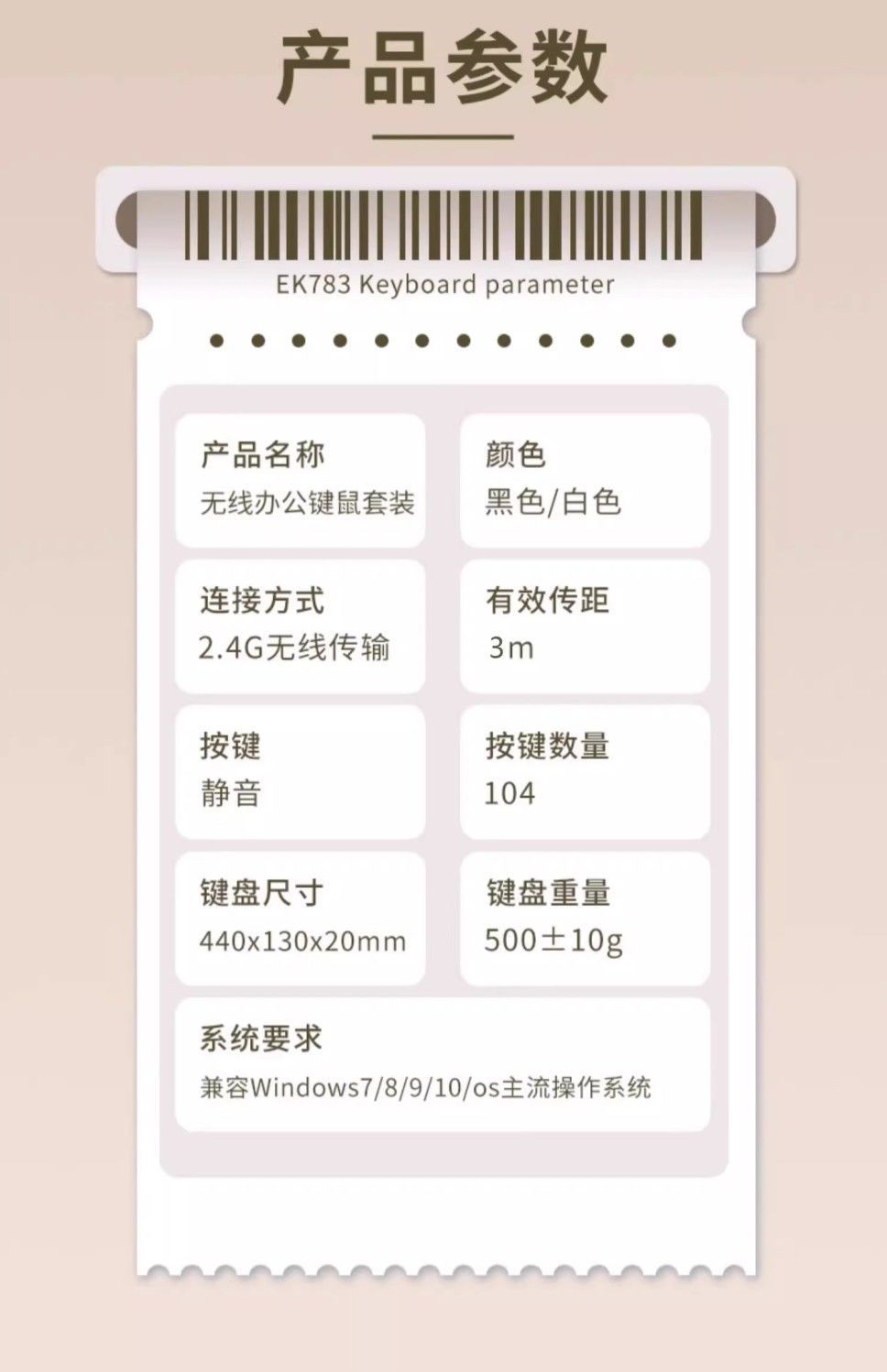프리런서 K783 무선 키보드 마우스 세트, 저소음 초슬림 컴퓨터 데스크탑 노트북 키보드, 무선 2.4G
