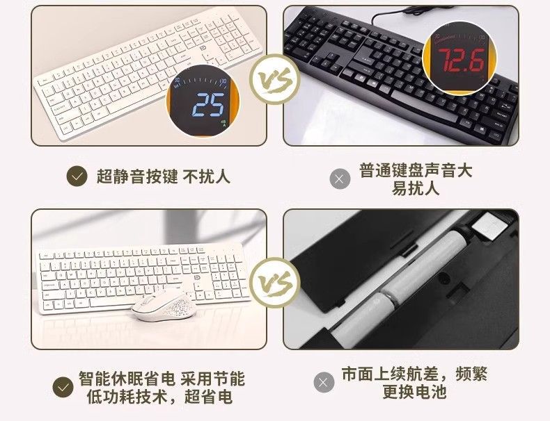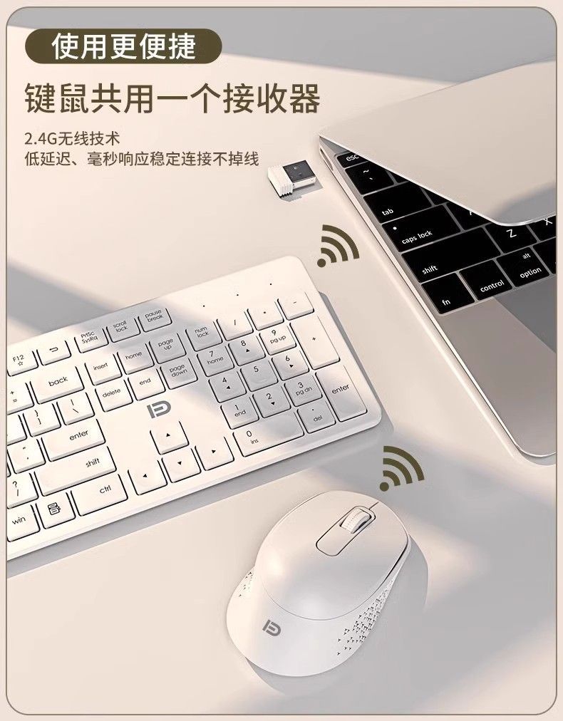 • 흰색 - 키보드 및 마우스 세트 - 무음 버튼 - 공유 USB 커넥터