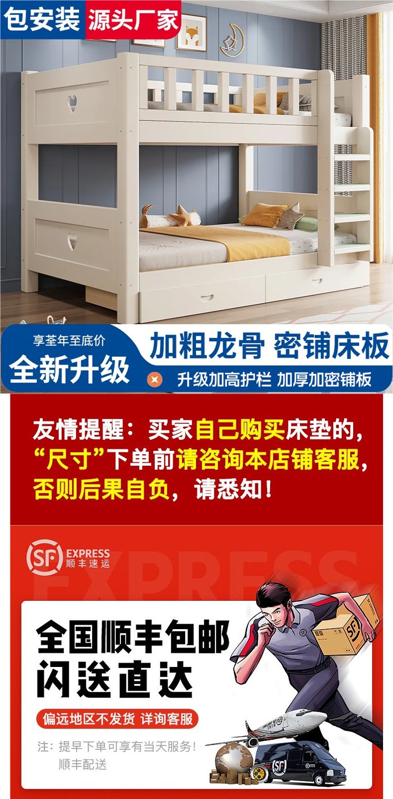 원목 어린이 침대, 성인용 이층 침대, 성인용 이층 침대, 높낮이 다기능 소형 2층 침대스토어 가기