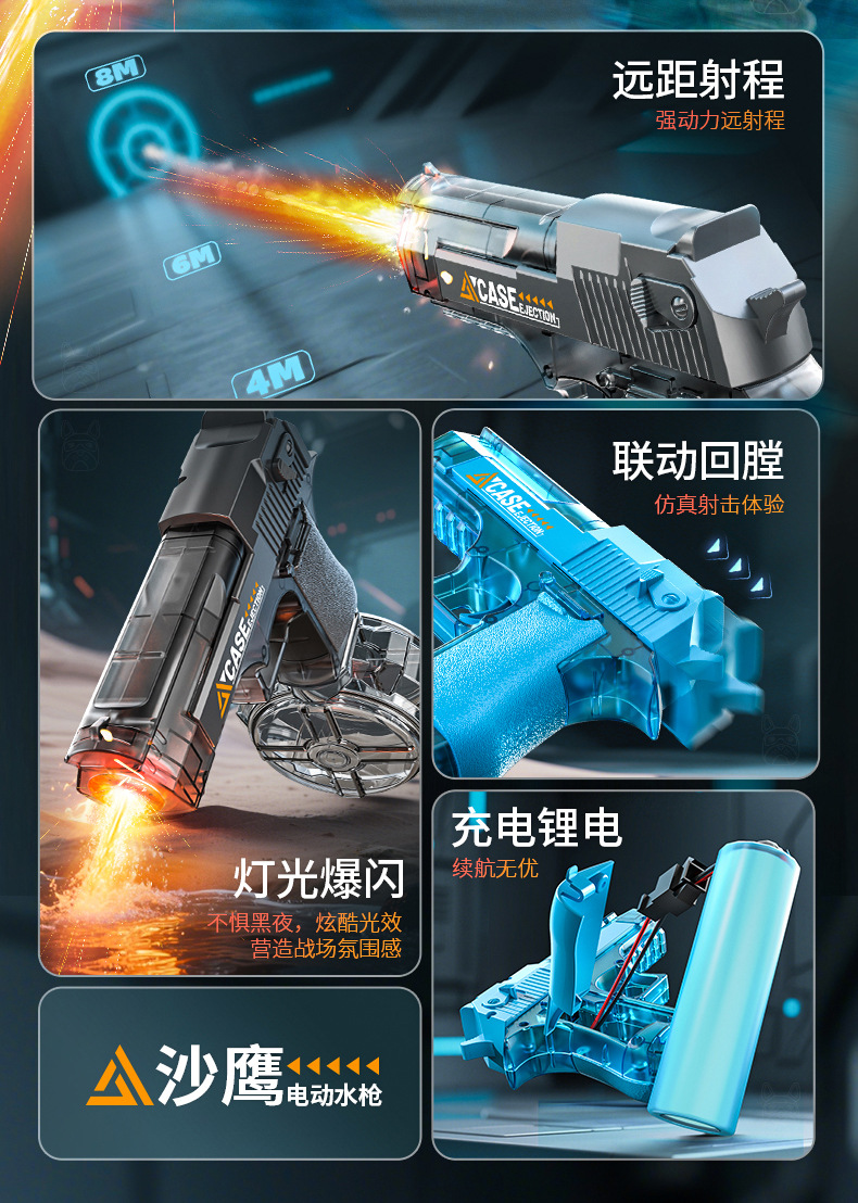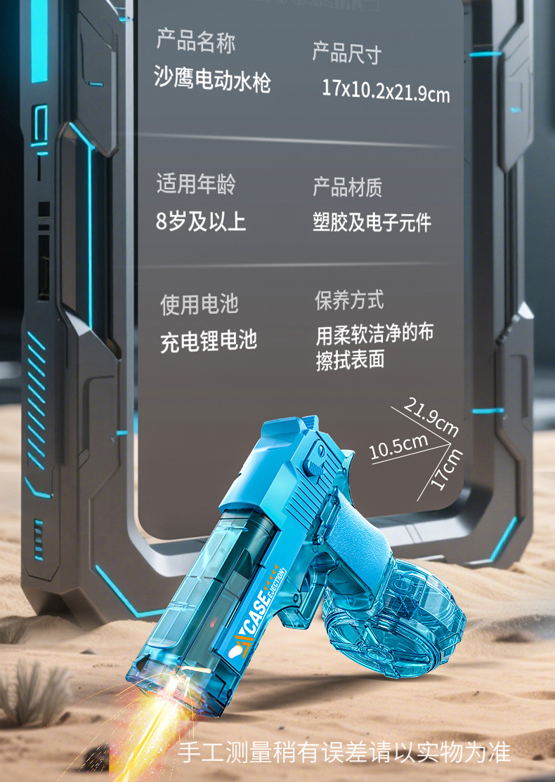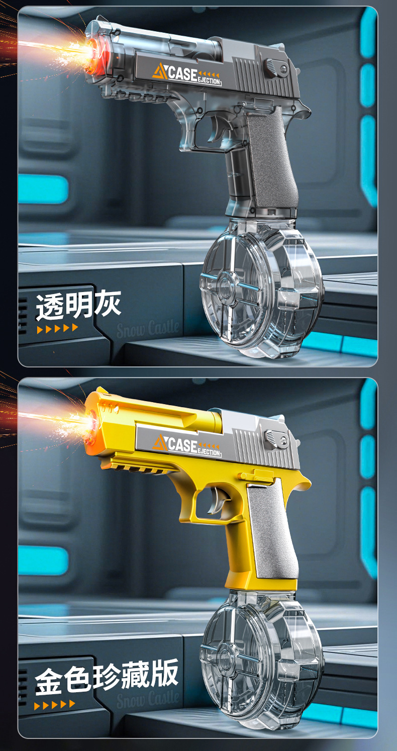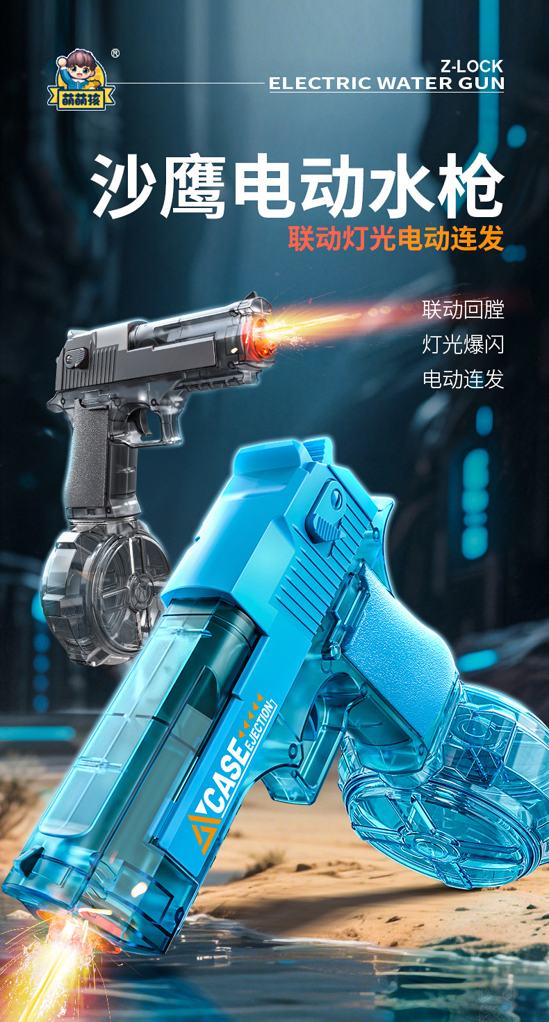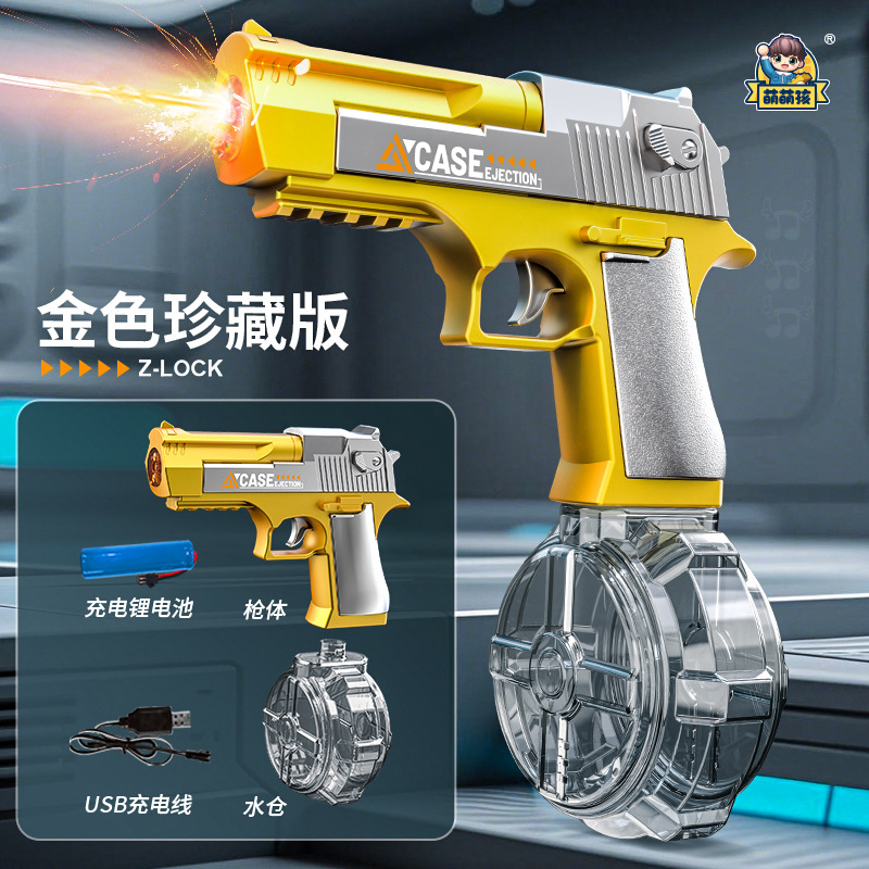여름 완전 자동 전기 황금 사막 물총 독수리 빛으로 재장전 연속 발사 물 뿌리기 축제 물 장난감스토어 가기