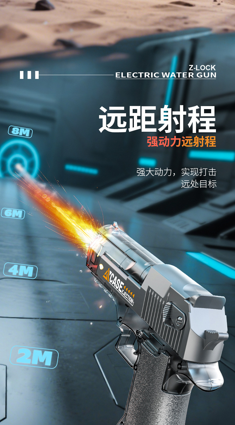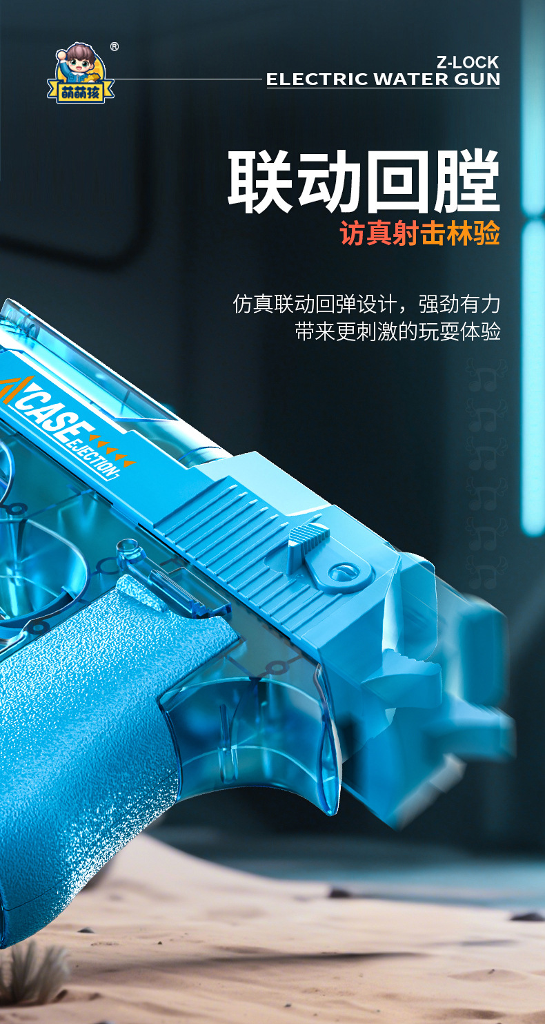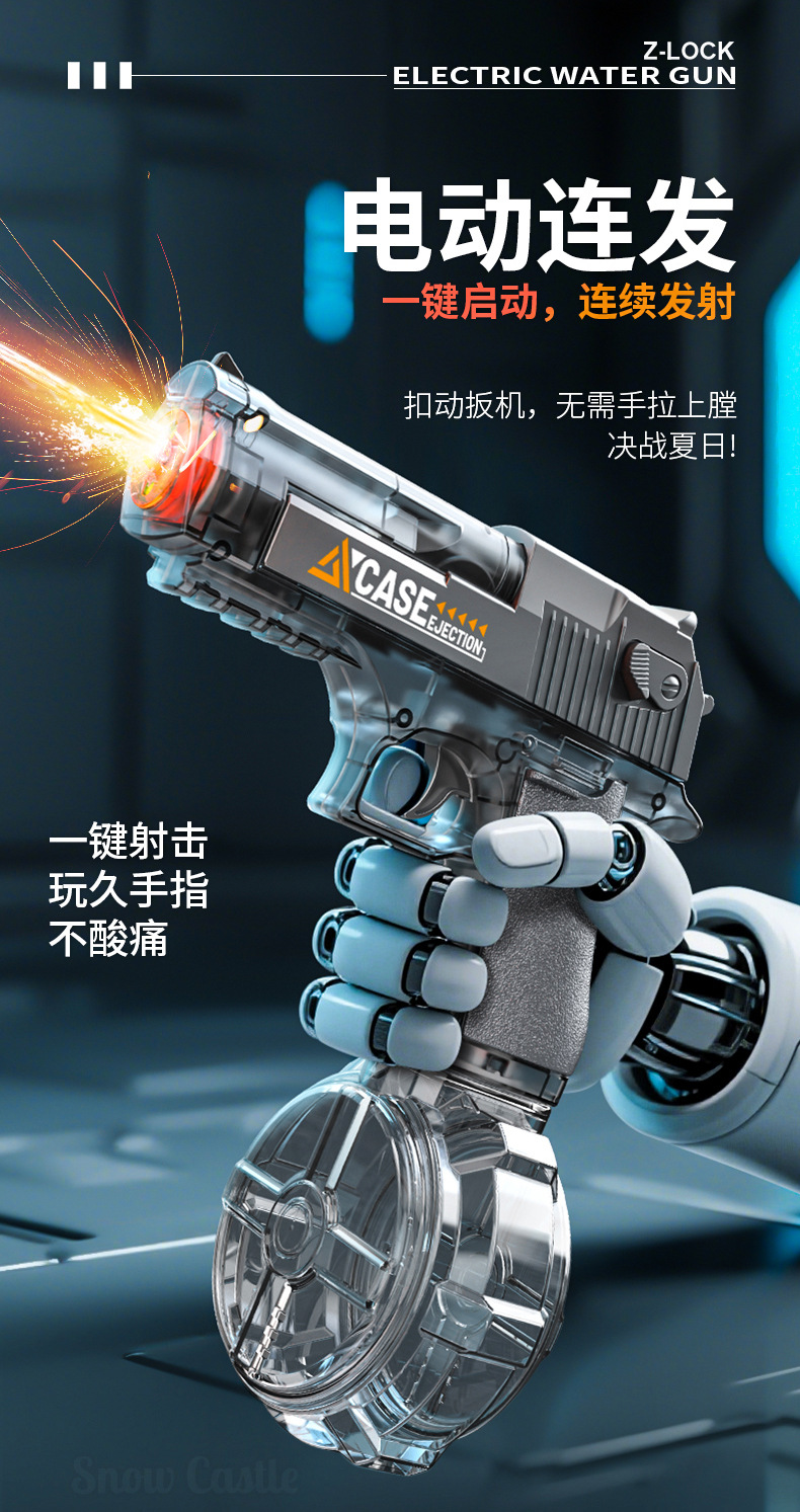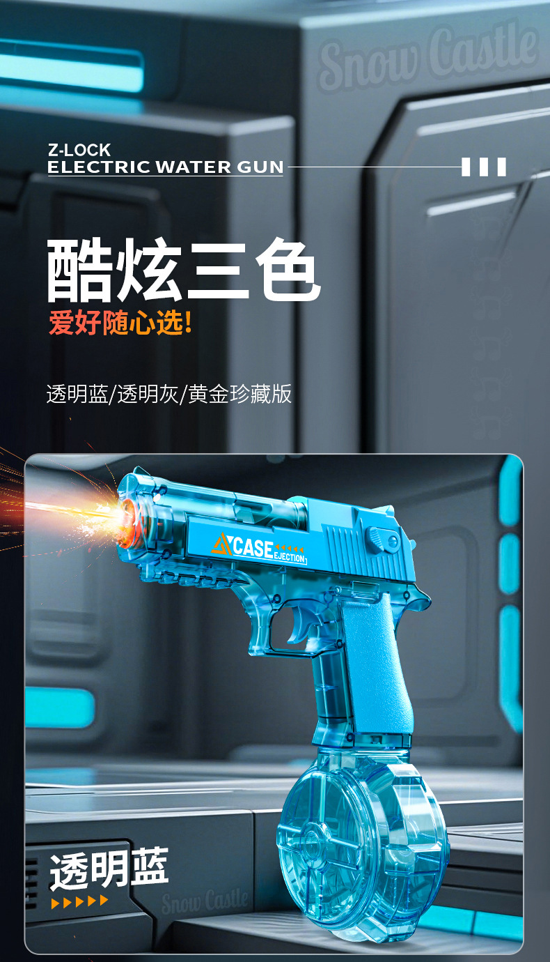 여름 완전 자동 전기 황금 사막 물총 독수리 빛으로 재장전 연속 발사 물 뿌리기 축제 물 장난감스토어 가기