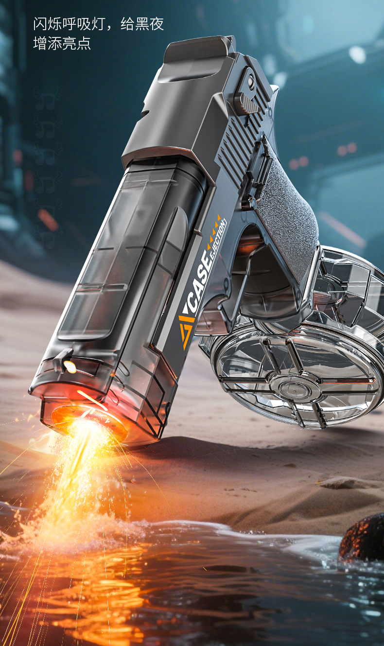 여름 완전 자동 전기 황금 사막 물총 독수리 빛으로 재장전 연속 발사 물 뿌리기 축제 물 장난감