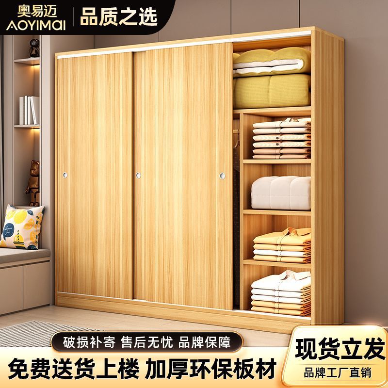 Aoyimai 슬라이딩 도어 옷장 홈 침실 나무 회색 스토리지 캐비닛 작은 아파트 임대 간단한 옷장스토어 가기
