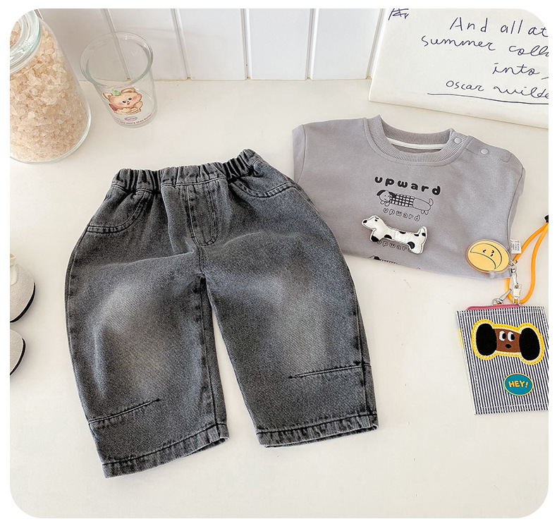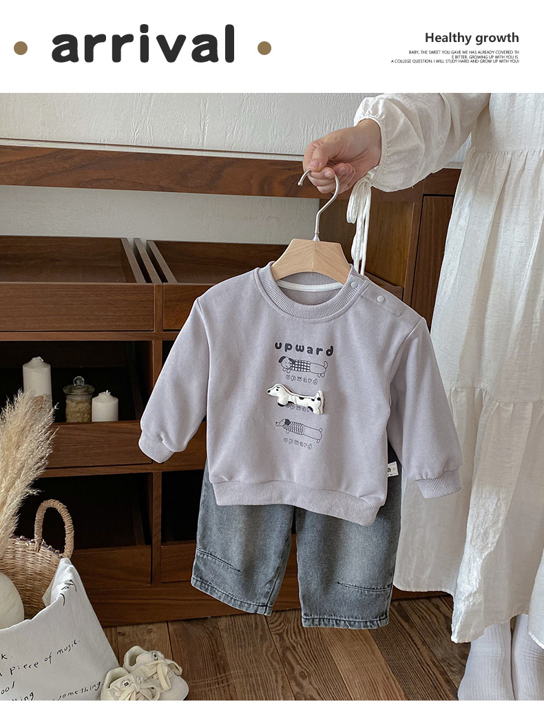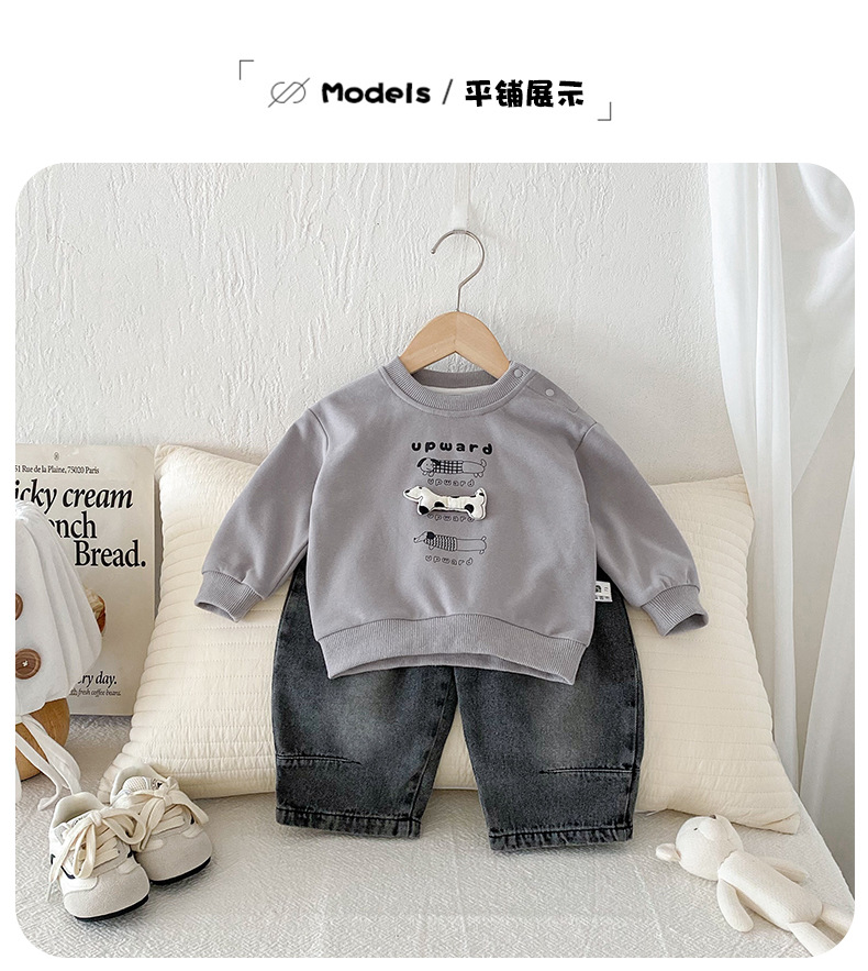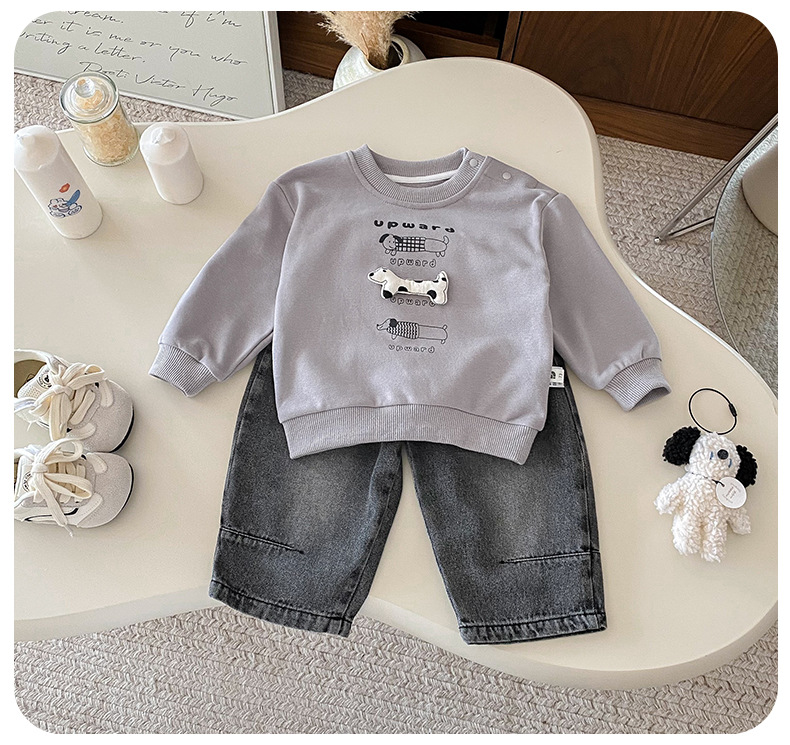 Dianxi 2025 새로운 가을 유아 입체 스웨트 슈트 소년 한국 스타일 탑과 청바지 투피스 세트스토어 가기