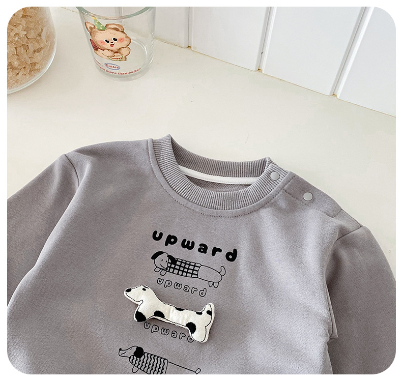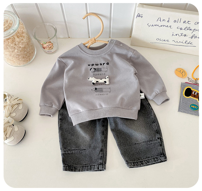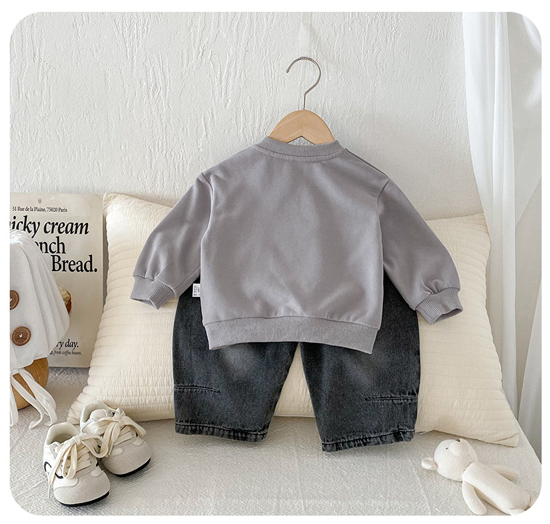 Dianxi 2025 새로운 가을 유아 입체 스웨트 슈트 소년 한국 스타일 탑과 청바지 투피스 세트
