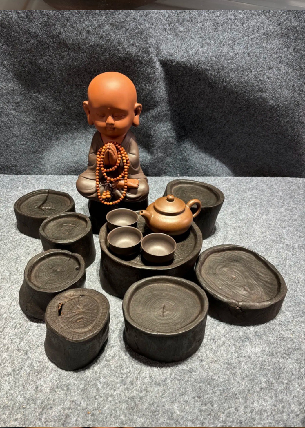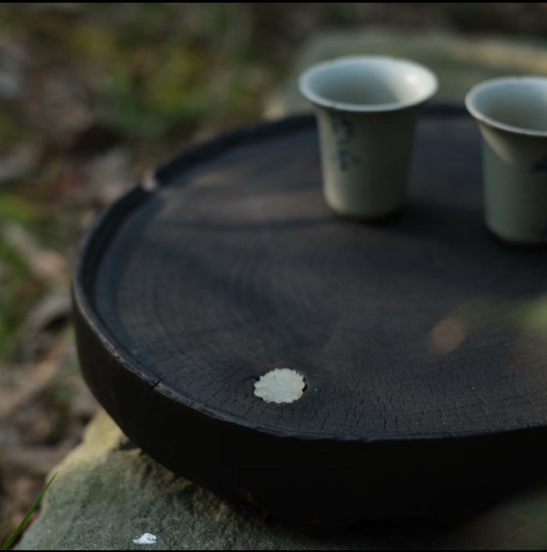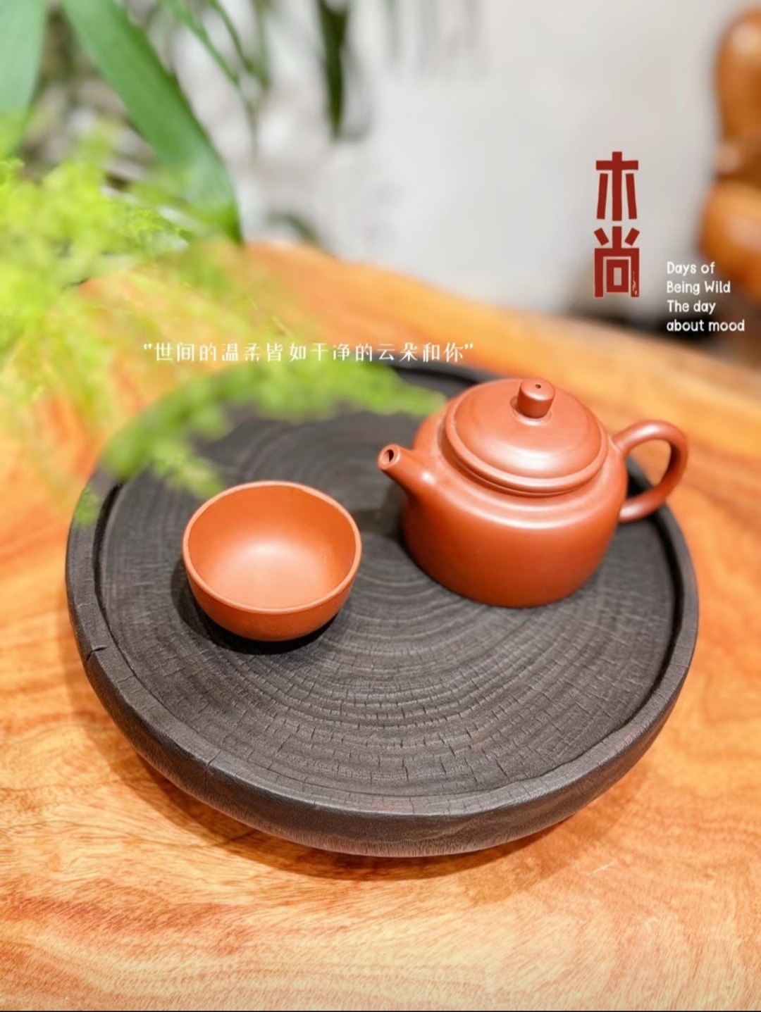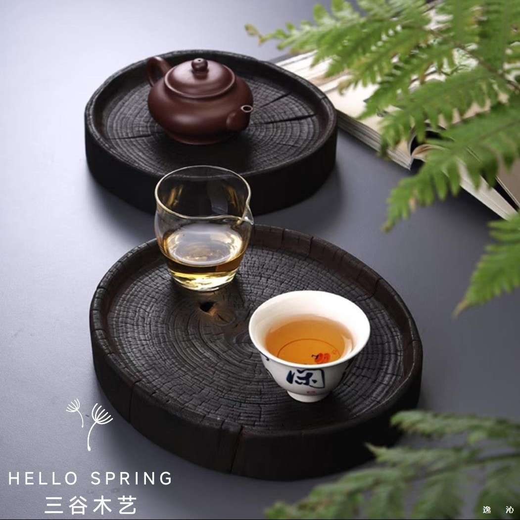 탄화참나무 주전자 건조 차 트레이 트레이 베이스 매트 촬영 소품 복고풍 일본식 와비사비 스타일
