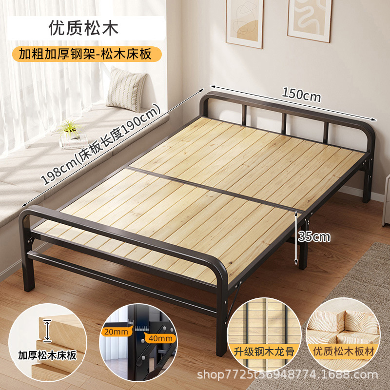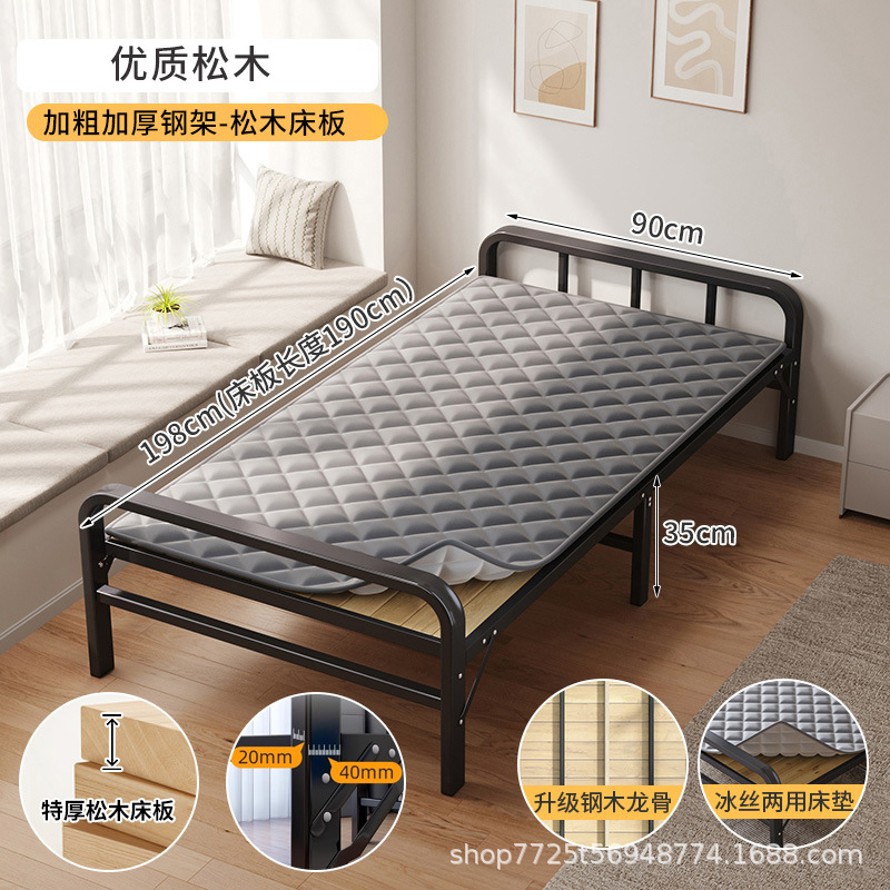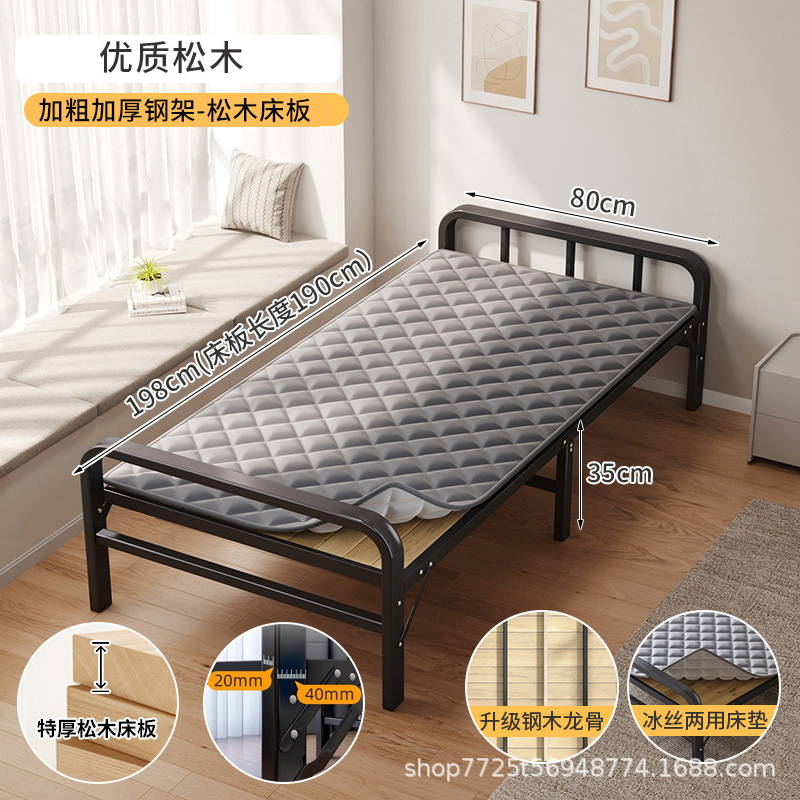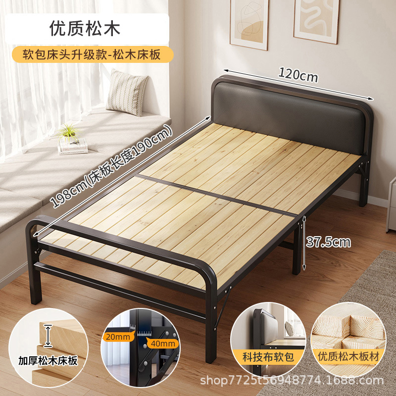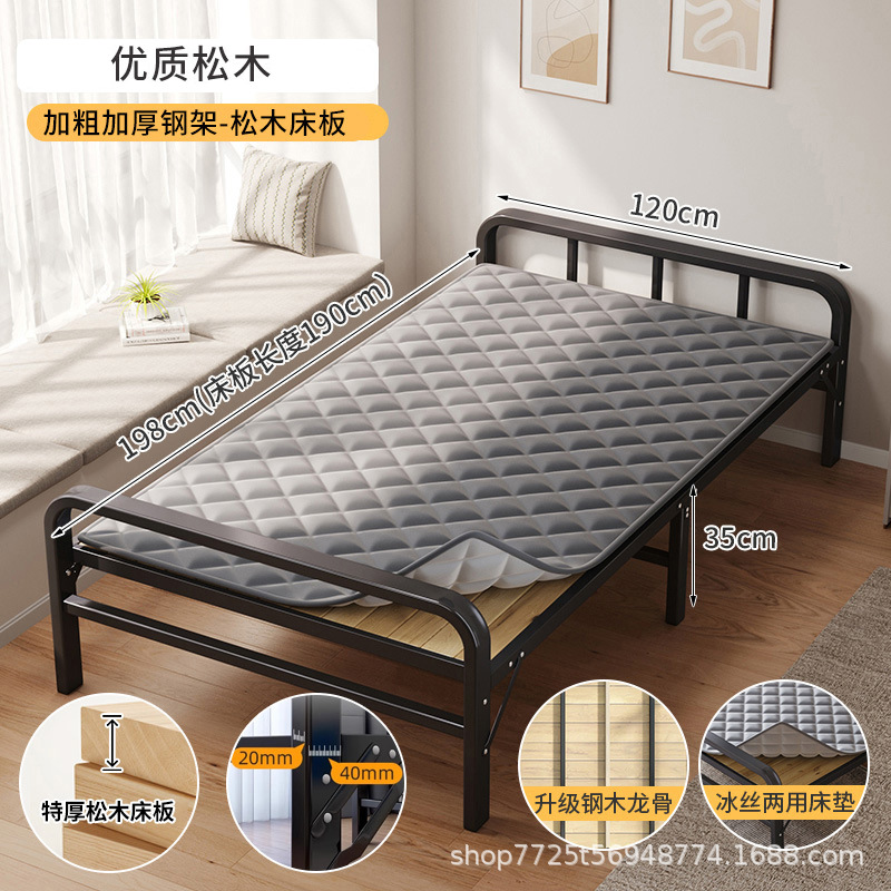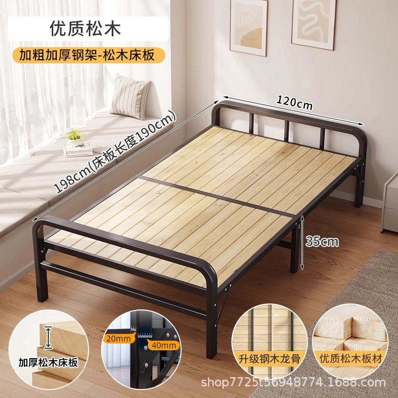 접이식 침대 싱글 침대 단단한 나무 간단한 침대 가정용 점심 시간 성인 낮잠 강화 철 프레임 더블 1.2m 트윈 침대