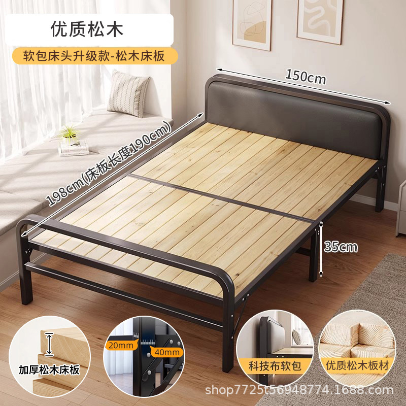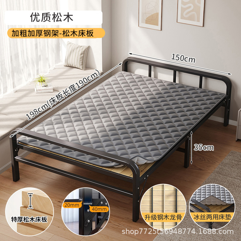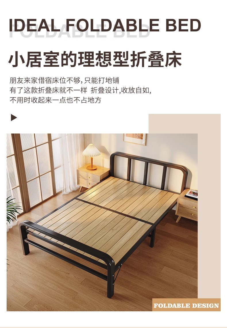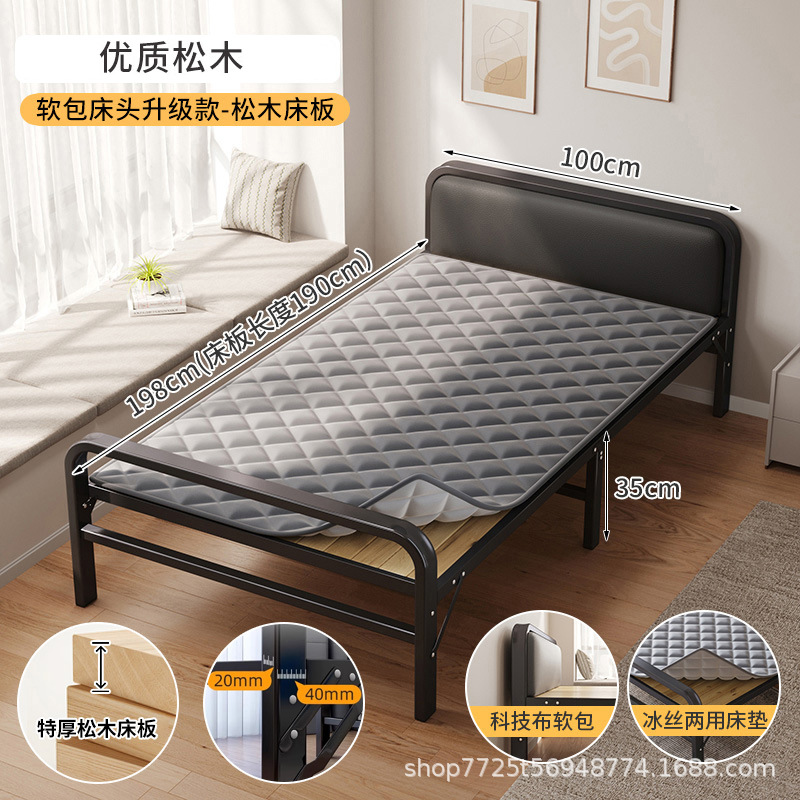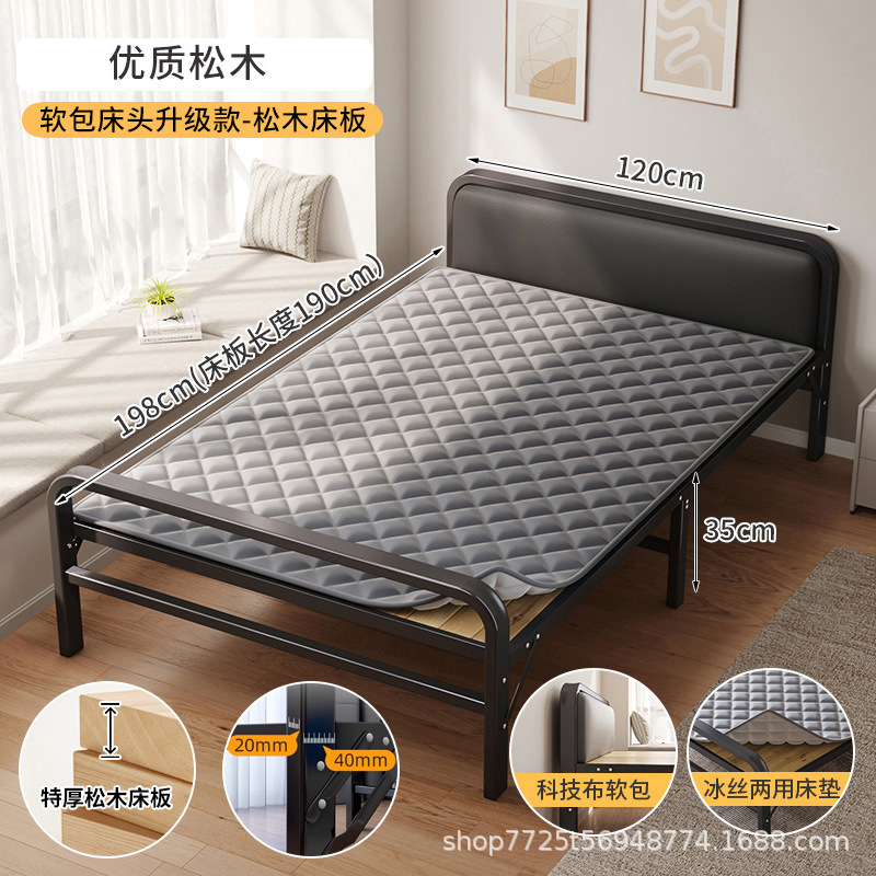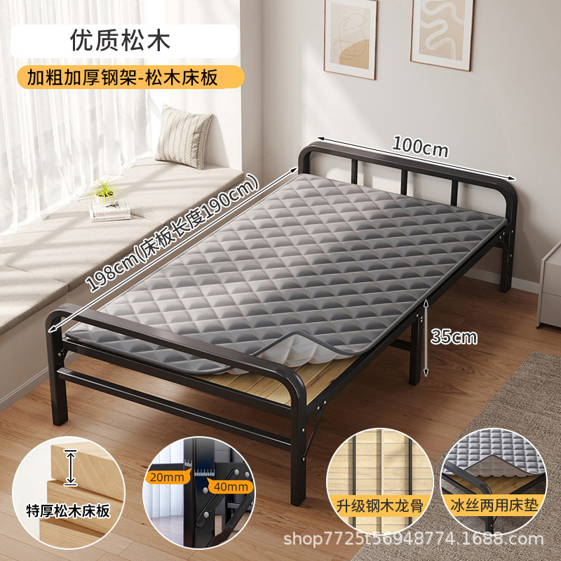 접이식 침대 싱글 침대 단단한 나무 간단한 침대 가정용 점심 시간 성인 낮잠 강화 철 프레임 더블 1.2m 트윈 침대