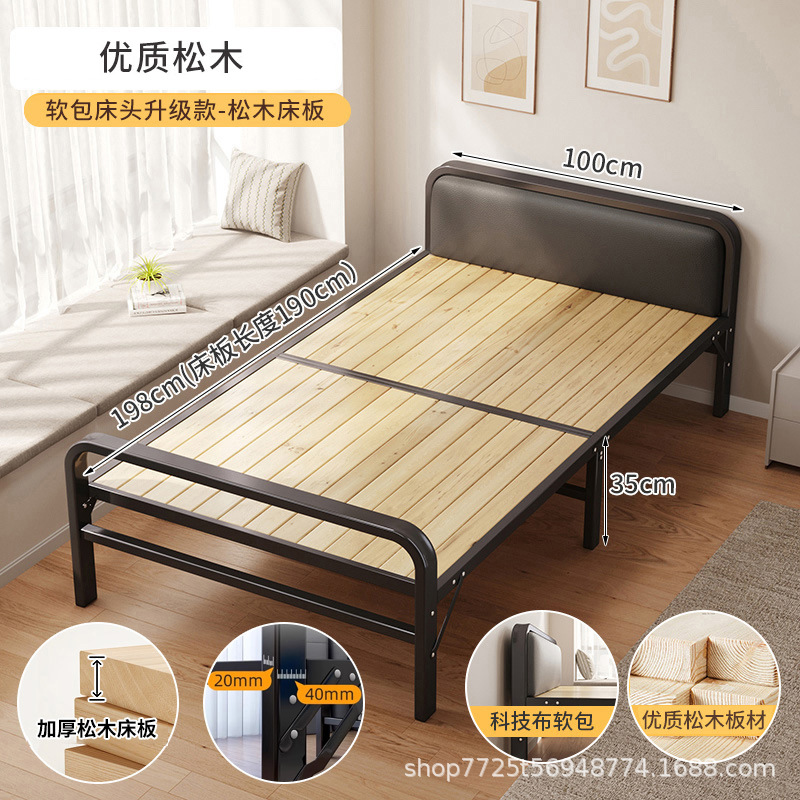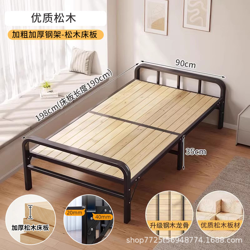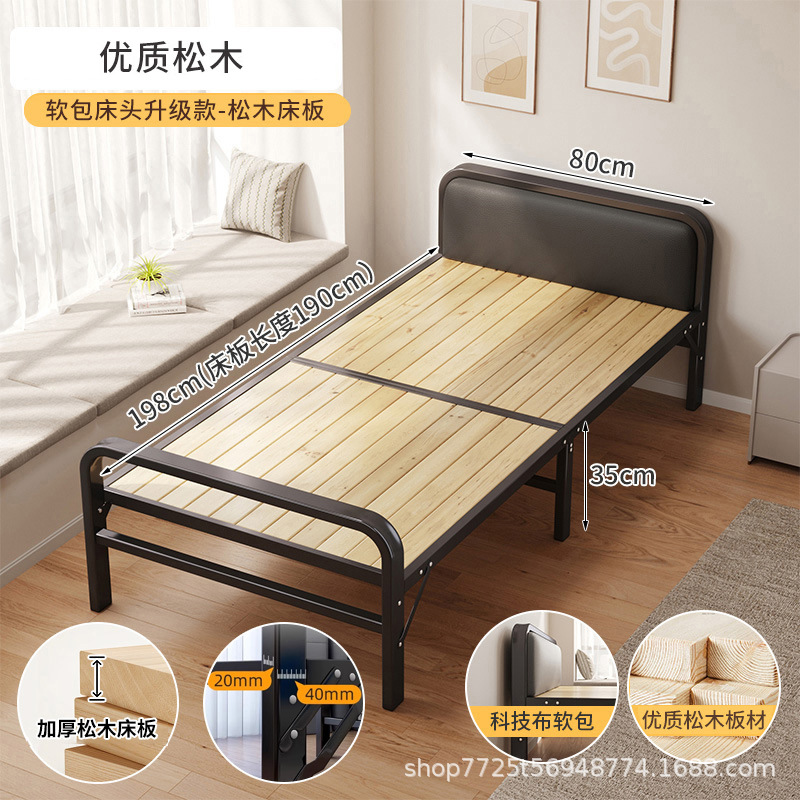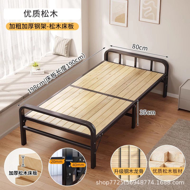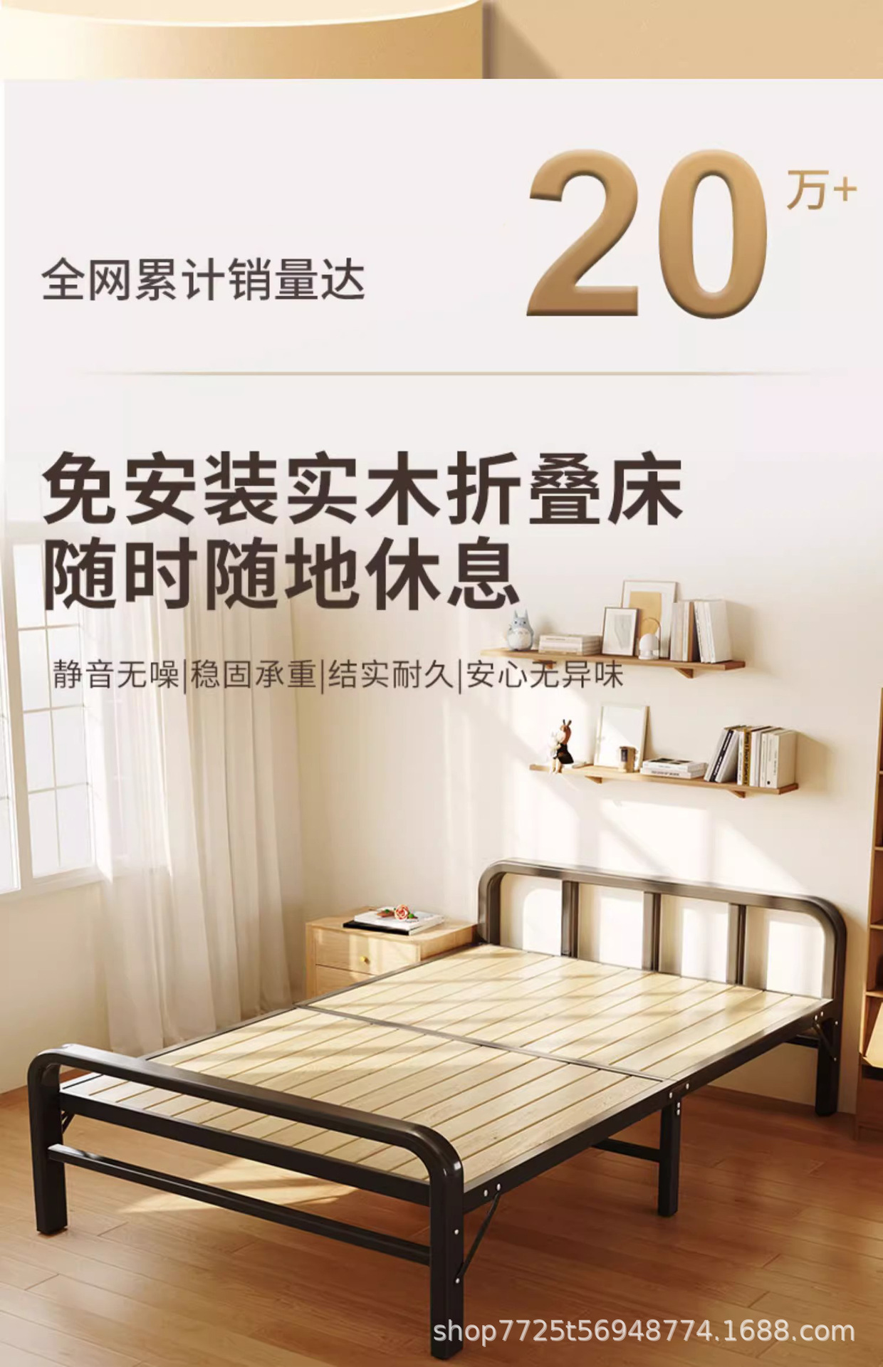 접이식 침대 싱글 침대 단단한 나무 간단한 침대 가정용 점심 시간 성인 낮잠 강화 철 프레임 더블 1.2m 트윈 침대스토어 가기