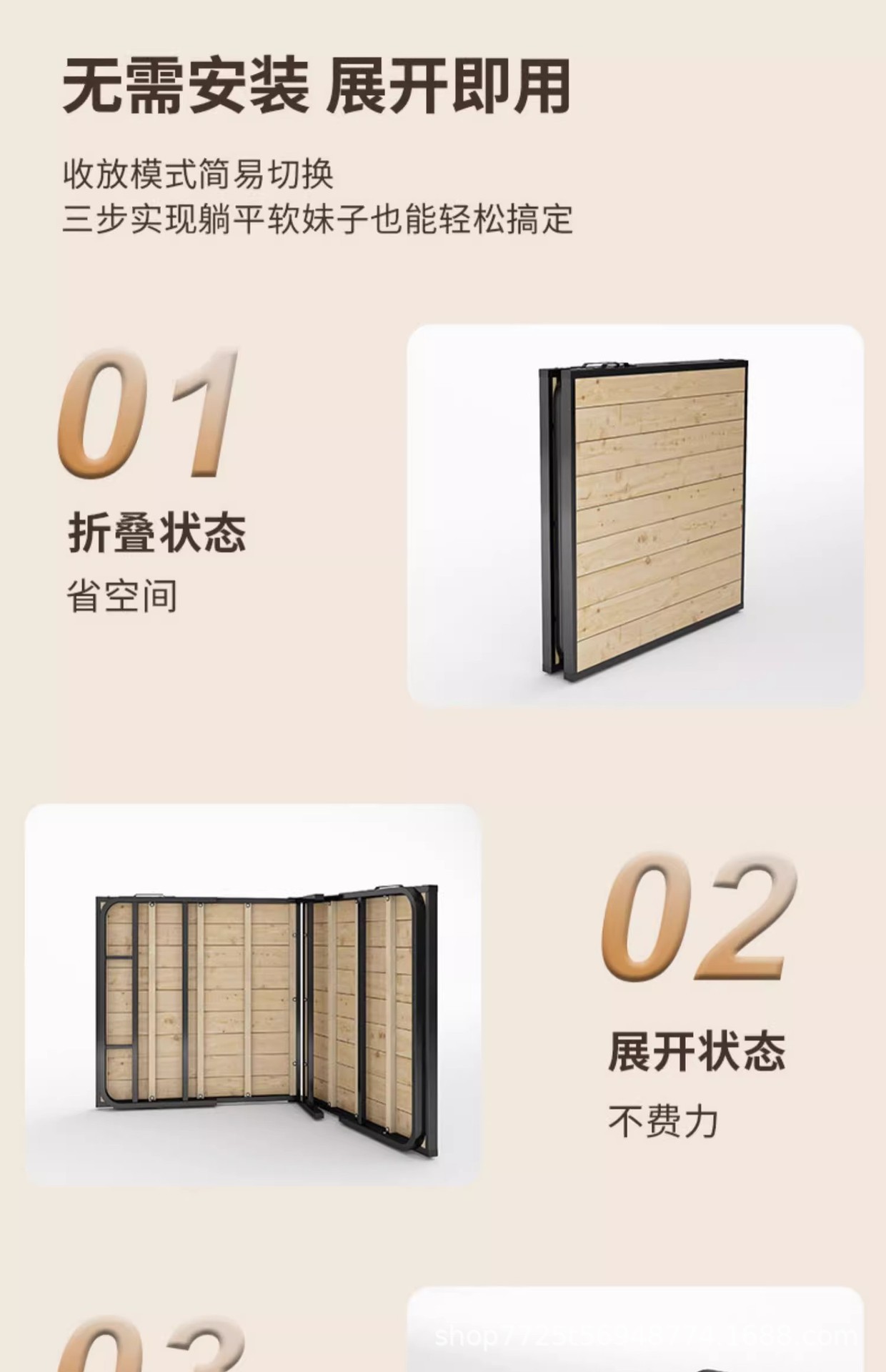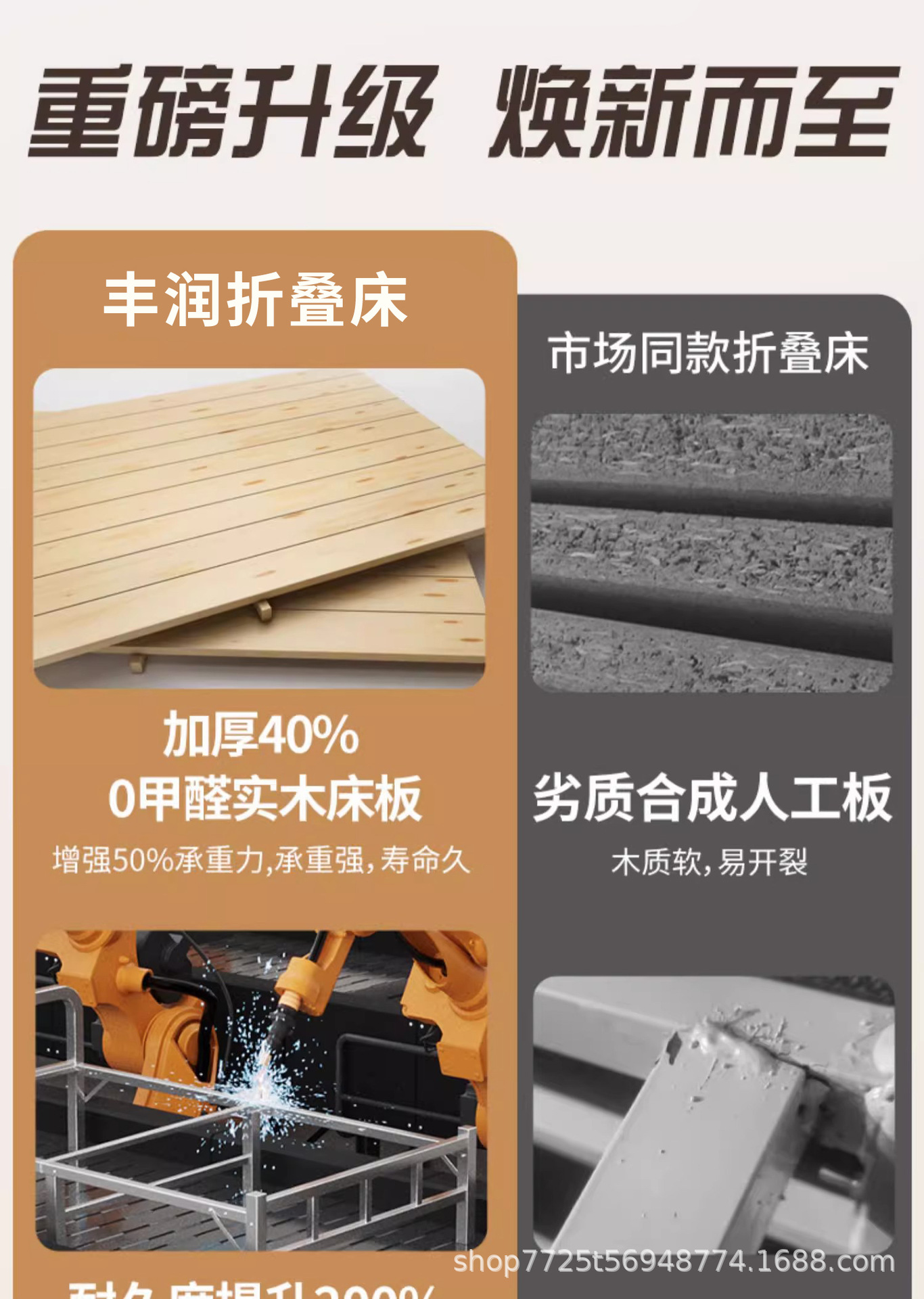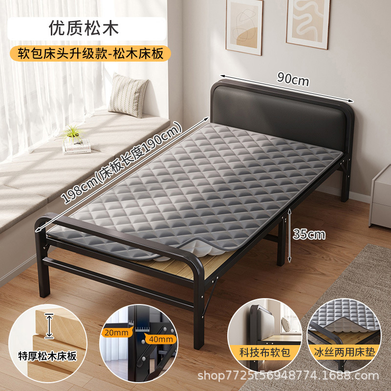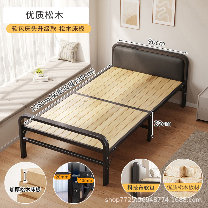 접이식 침대 싱글 침대 단단한 나무 간단한 침대 가정용 점심 시간 성인 낮잠 강화 철 프레임 더블 1.2m 트윈 침대스토어 가기